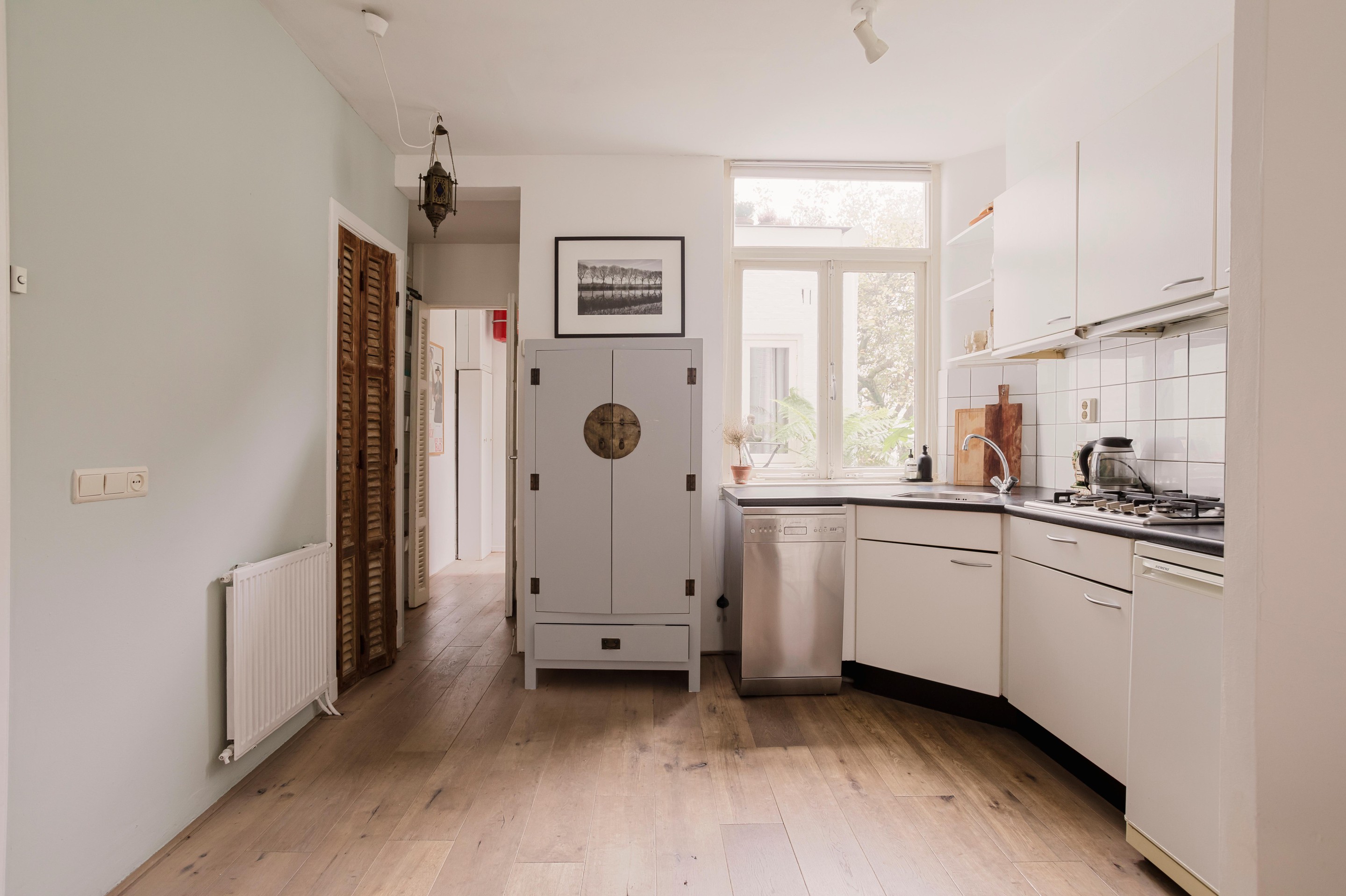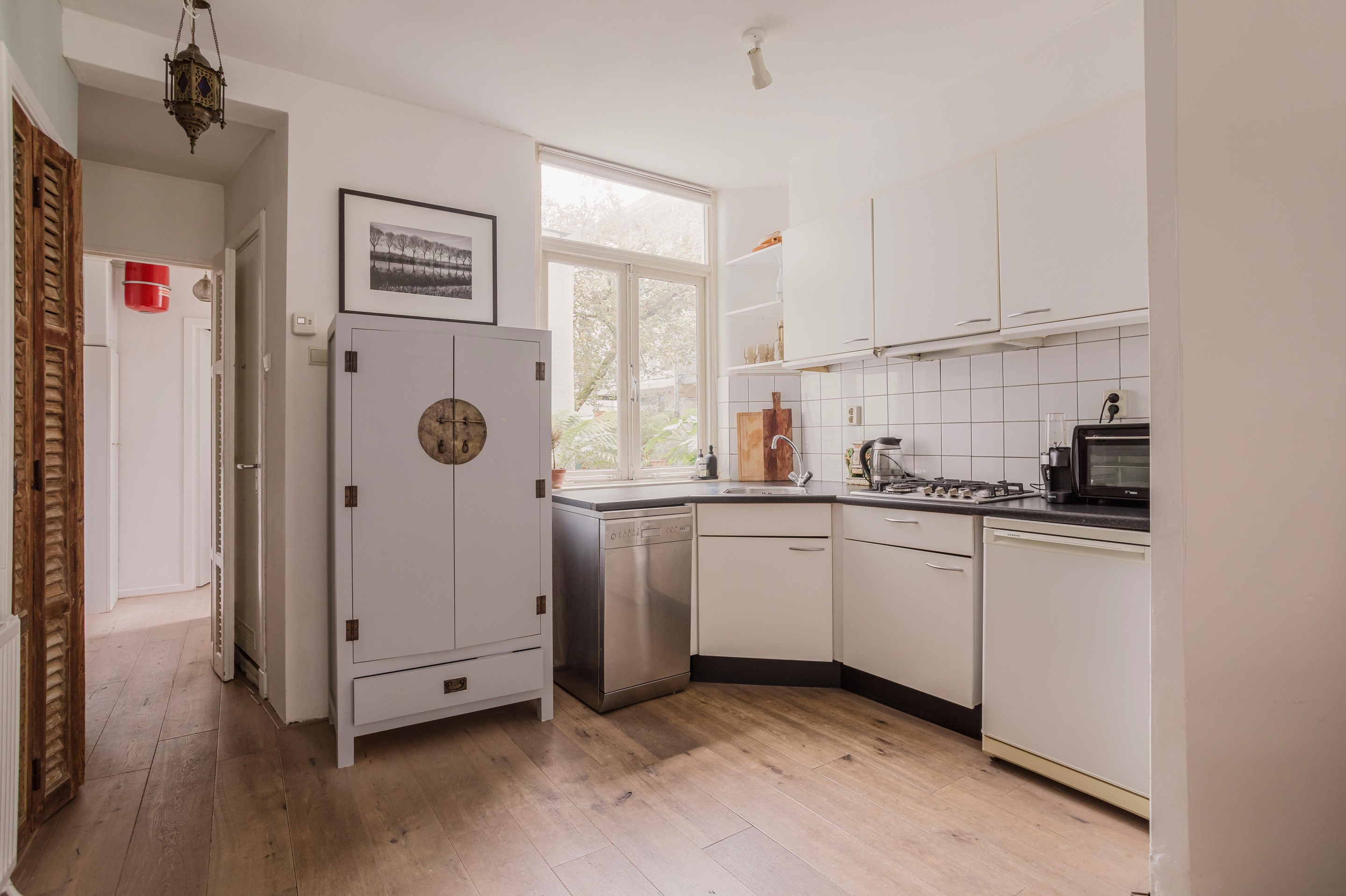 Vanuit de gang richting de slaapkamer aan de achterzijde is er toegang tot het lekker