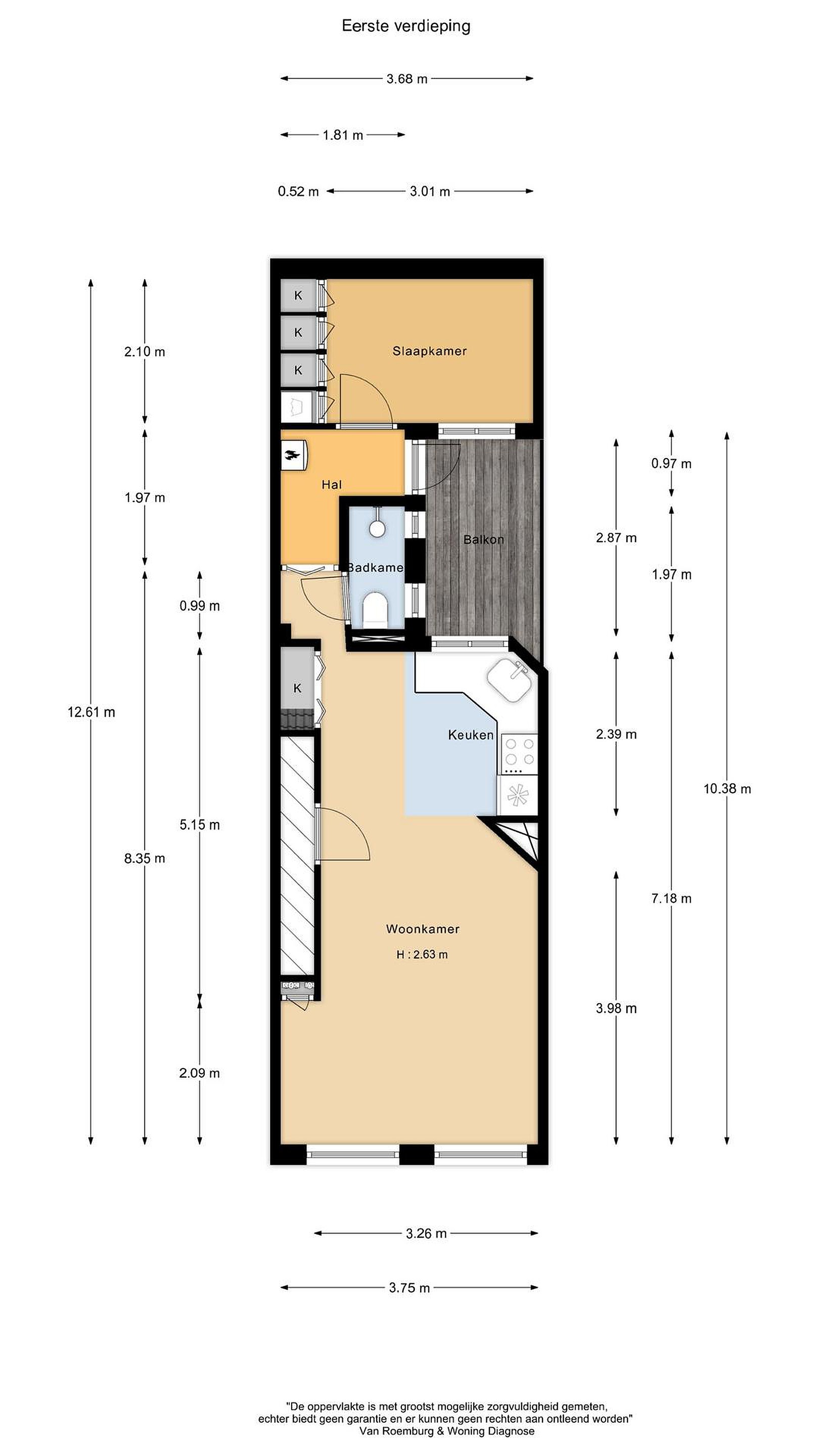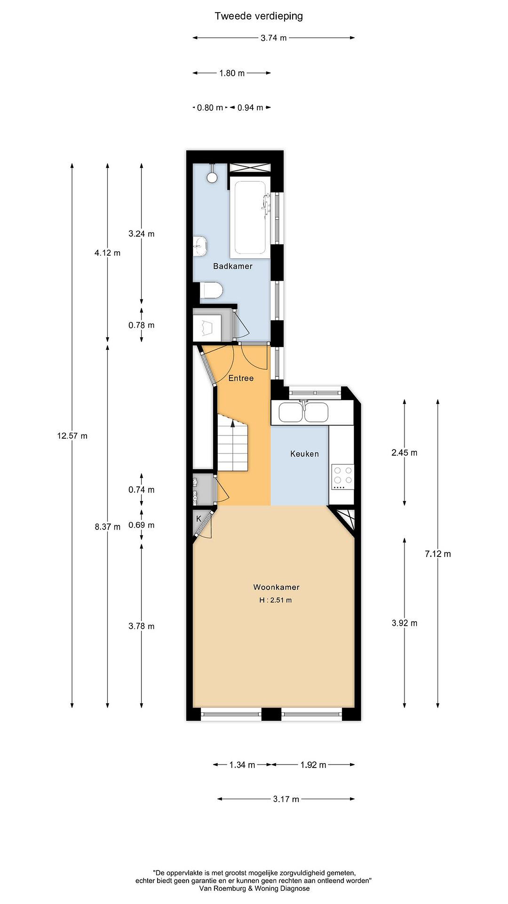 Clausule: De vierkante meters van de zolder zijn meegeteld in het woonoppervlak van de woning op de 2e verdieping. Volgens de NEN norm valt de oppervlakte van de zolder net buiten deze norm.