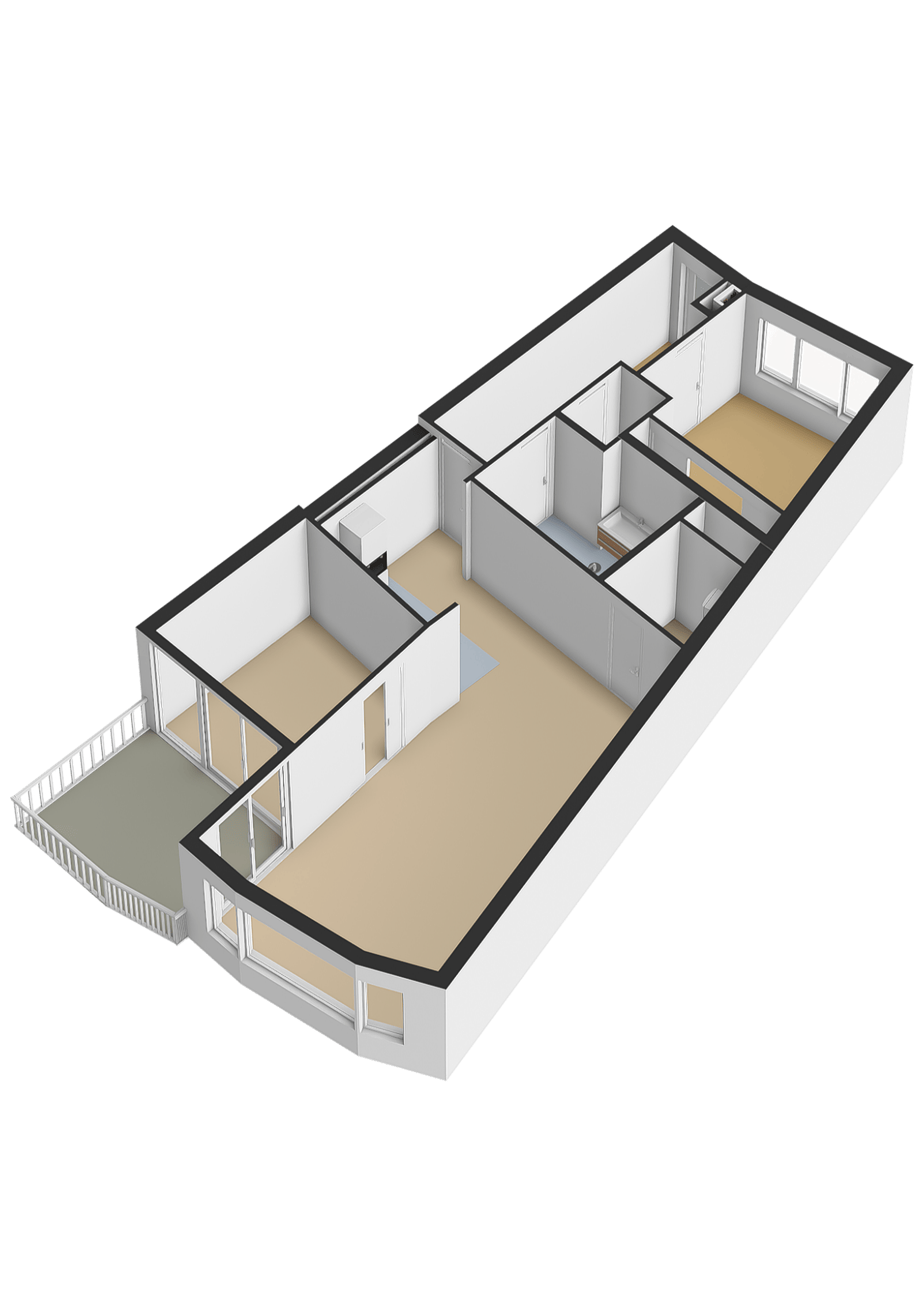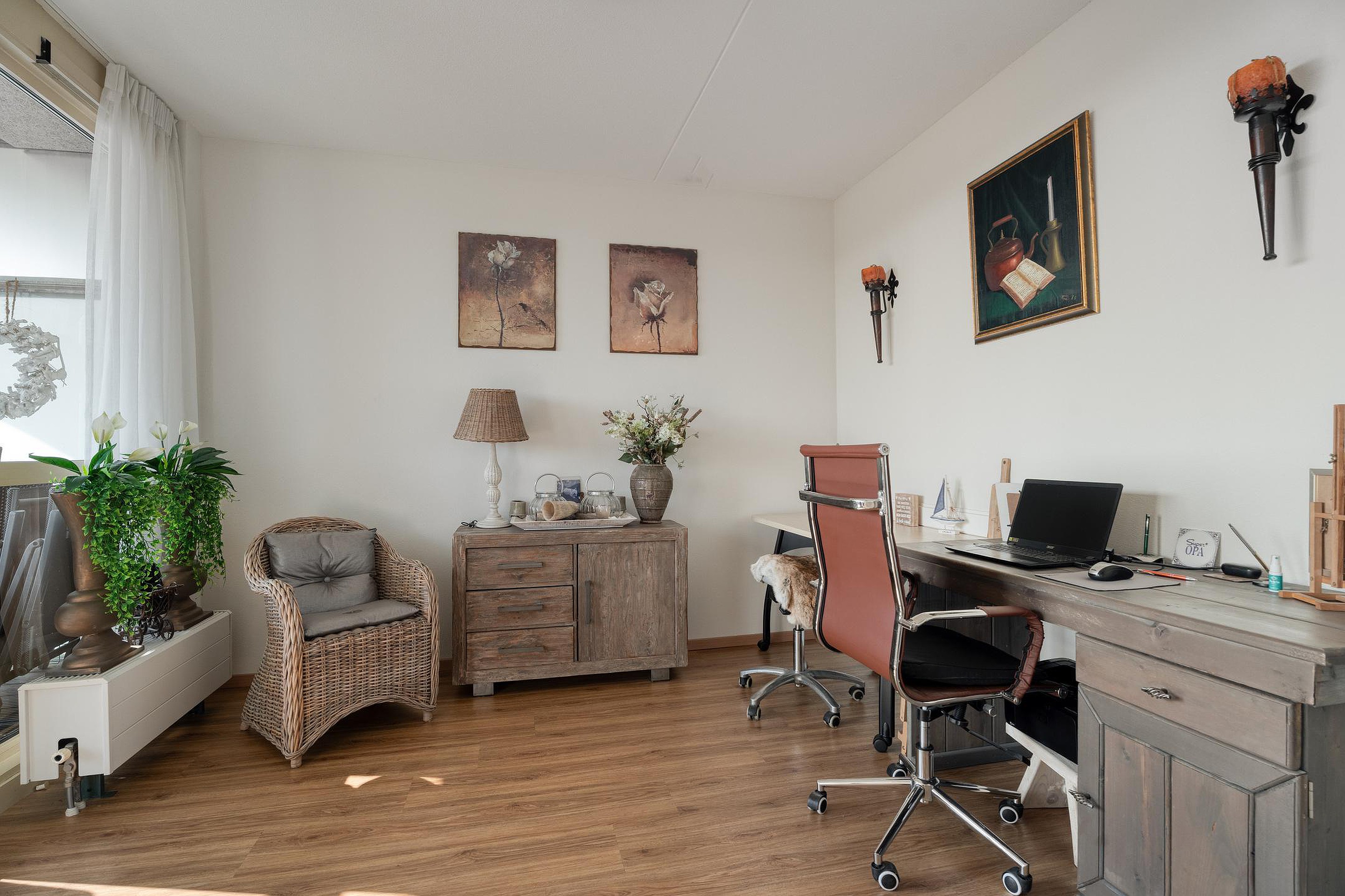 Daarnaast is er een multifunctionele ruimte die bijvoorbeeld gebruikt kan worden als werk-, hobby- of logeerkamer. Het balkon is zowel vanuit deze ruimte als vanuit de woonkamer bereikbaar, wat zorgt voor een fijne verbinding tussen binnen en buiten. Hierdoor is het balkon een prettige plek om op ieder moment van de dag even buiten te zitten.