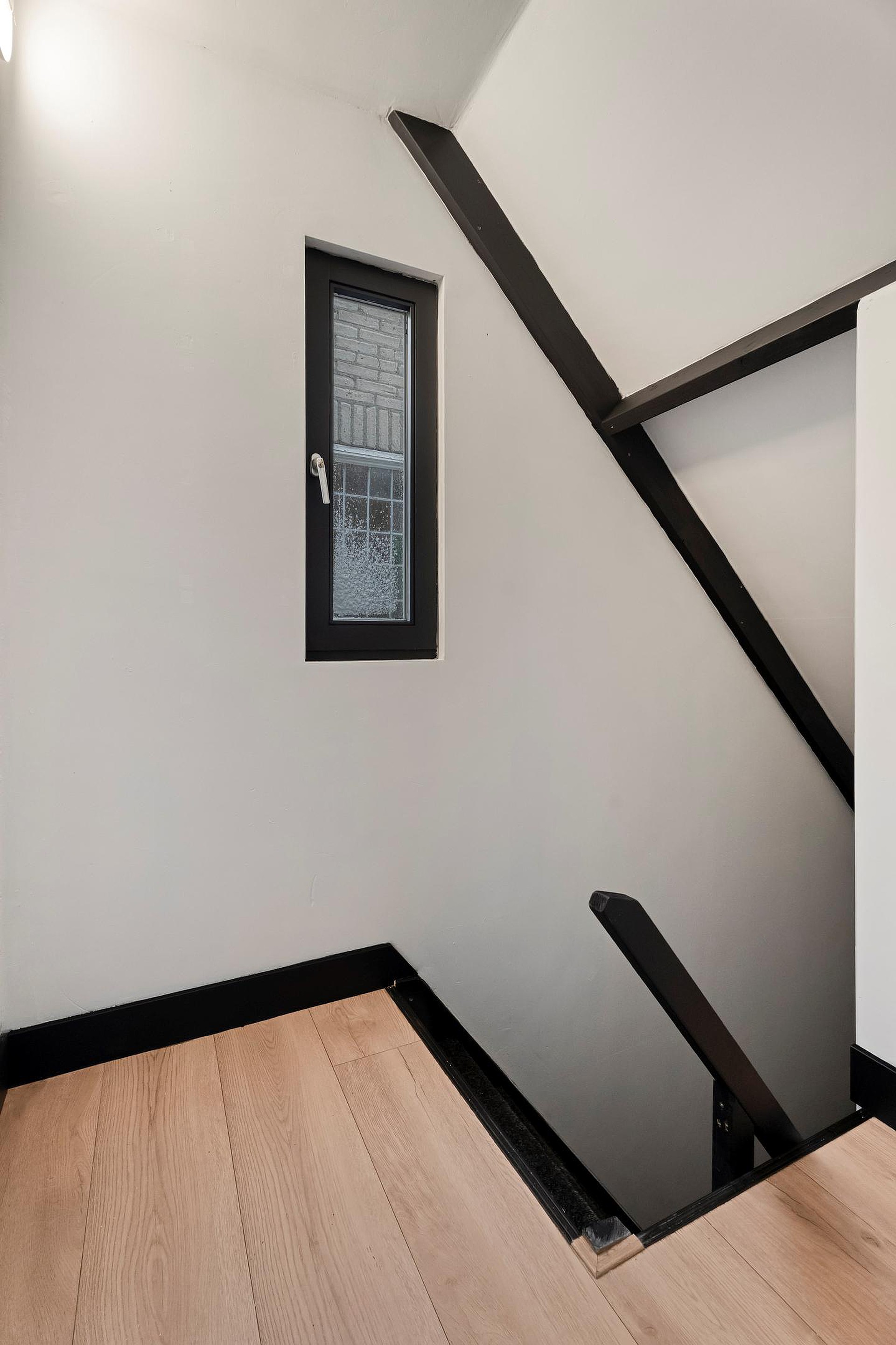 De trap leidt naar de bovenliggende woonverdieping(en), waardoor het appartement volledig gescheiden is van de begane grond. Deze opzet zorgt voor privacy en een duidelijke scheiding tussen entree en woonruimte.