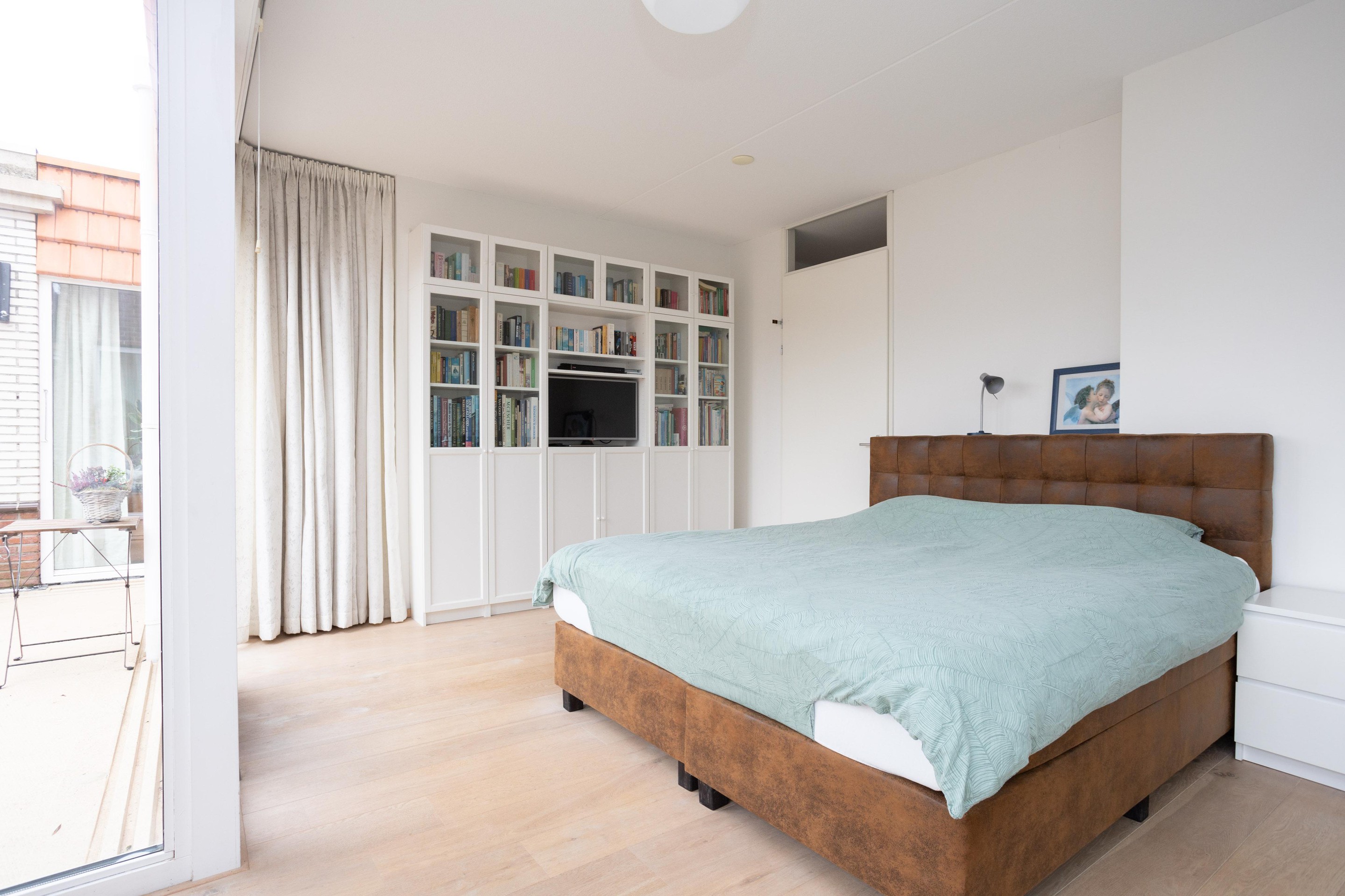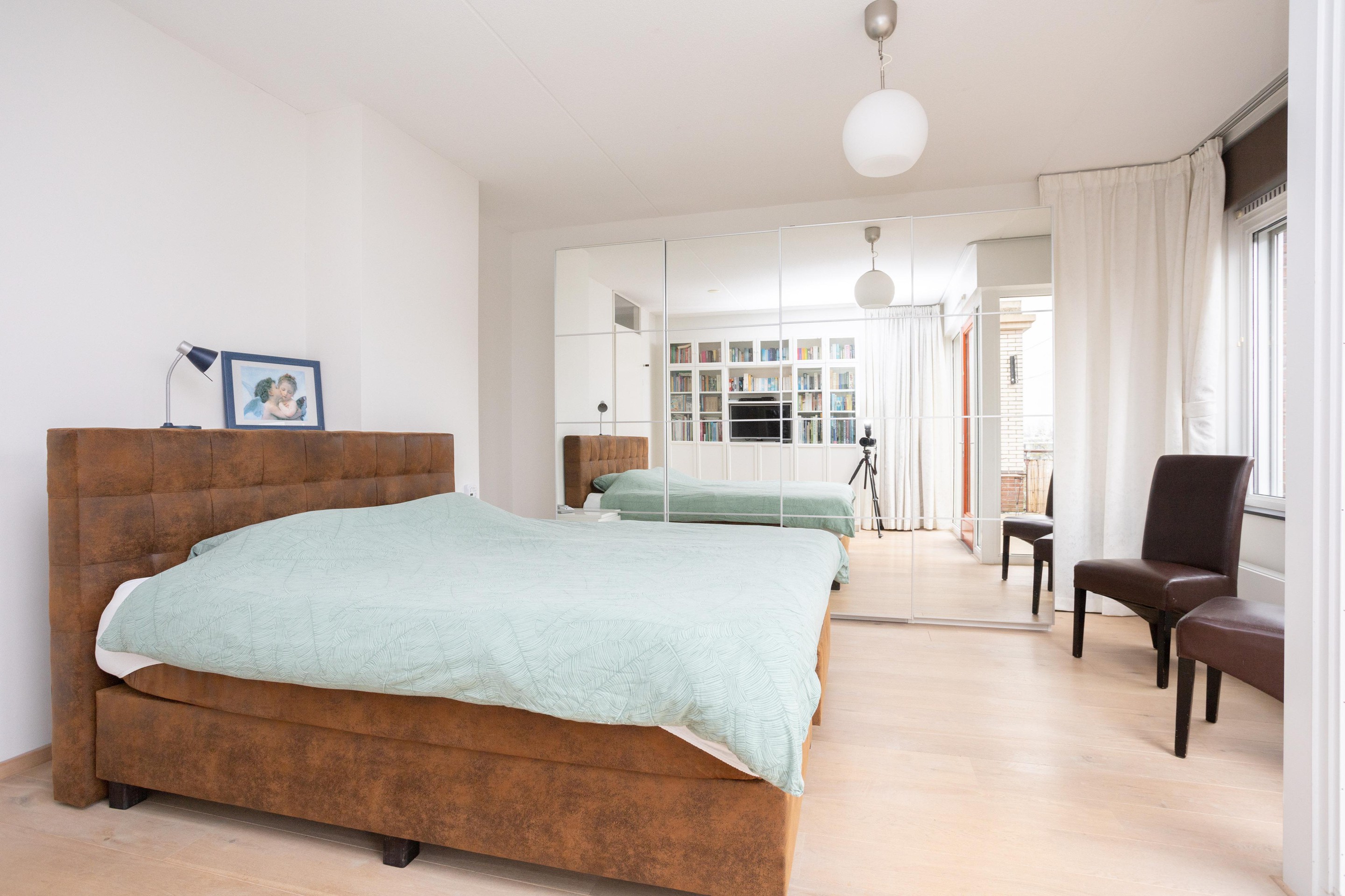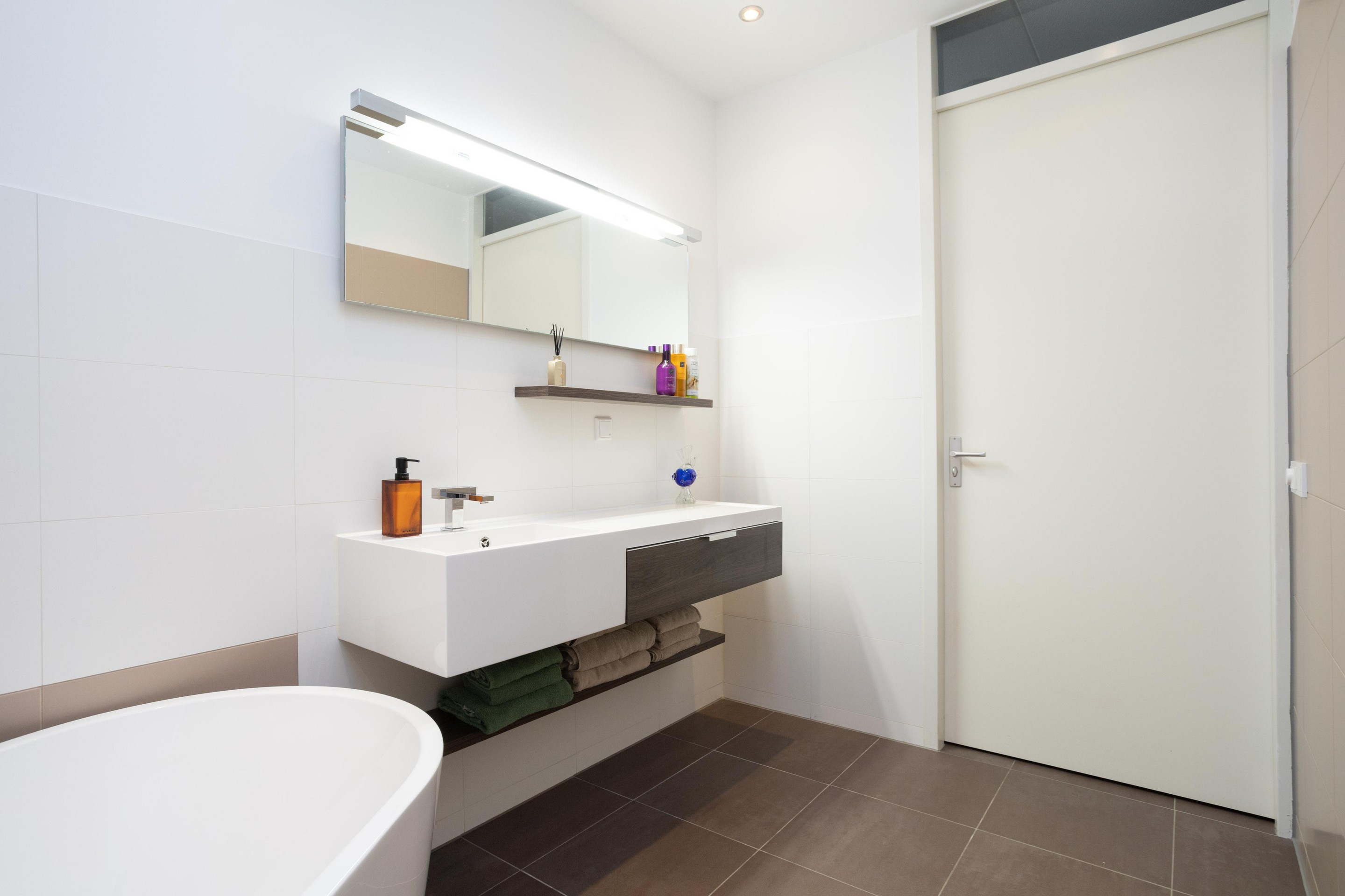 Vanuit de woonkamer heeft u toegang tot een gang met daaraan gelegen 2 slaapkamers, luxe badkamer en het toilet. De slaapkamer aan de achterzijde is bijzonder ruim van opzet en beschikt ook over een deur naar het eerder genoemde terras. De vloer is keurig afgewerkt met eikenhout. De slaapkamer aan de voorzijde beschikt ook over de eiken vloer. De luxe badkamer is gerenoveerd en voorzien van een design ligbad, royale inloopdouche en vloerverwarming. Kijk ook naar het plafond, deze is verlaagd en voorzien van spots. Tot slot is er een apart toilet met fonteintje.