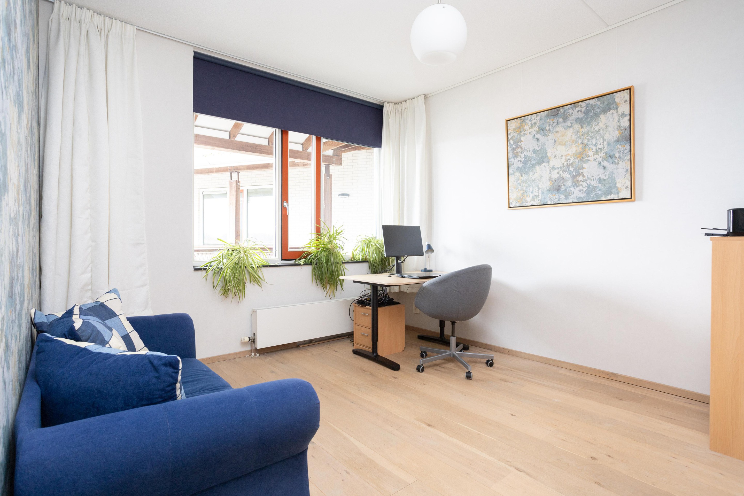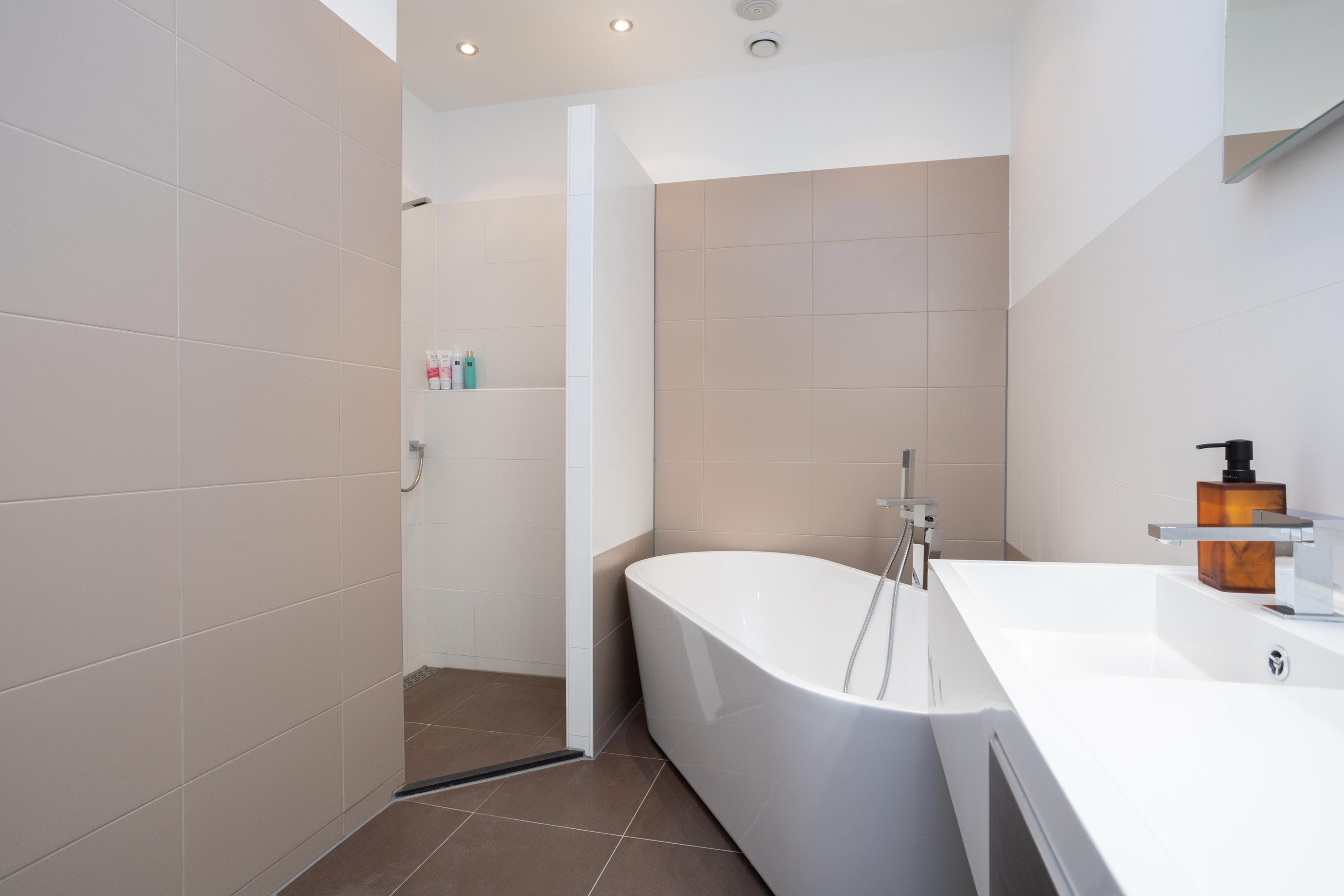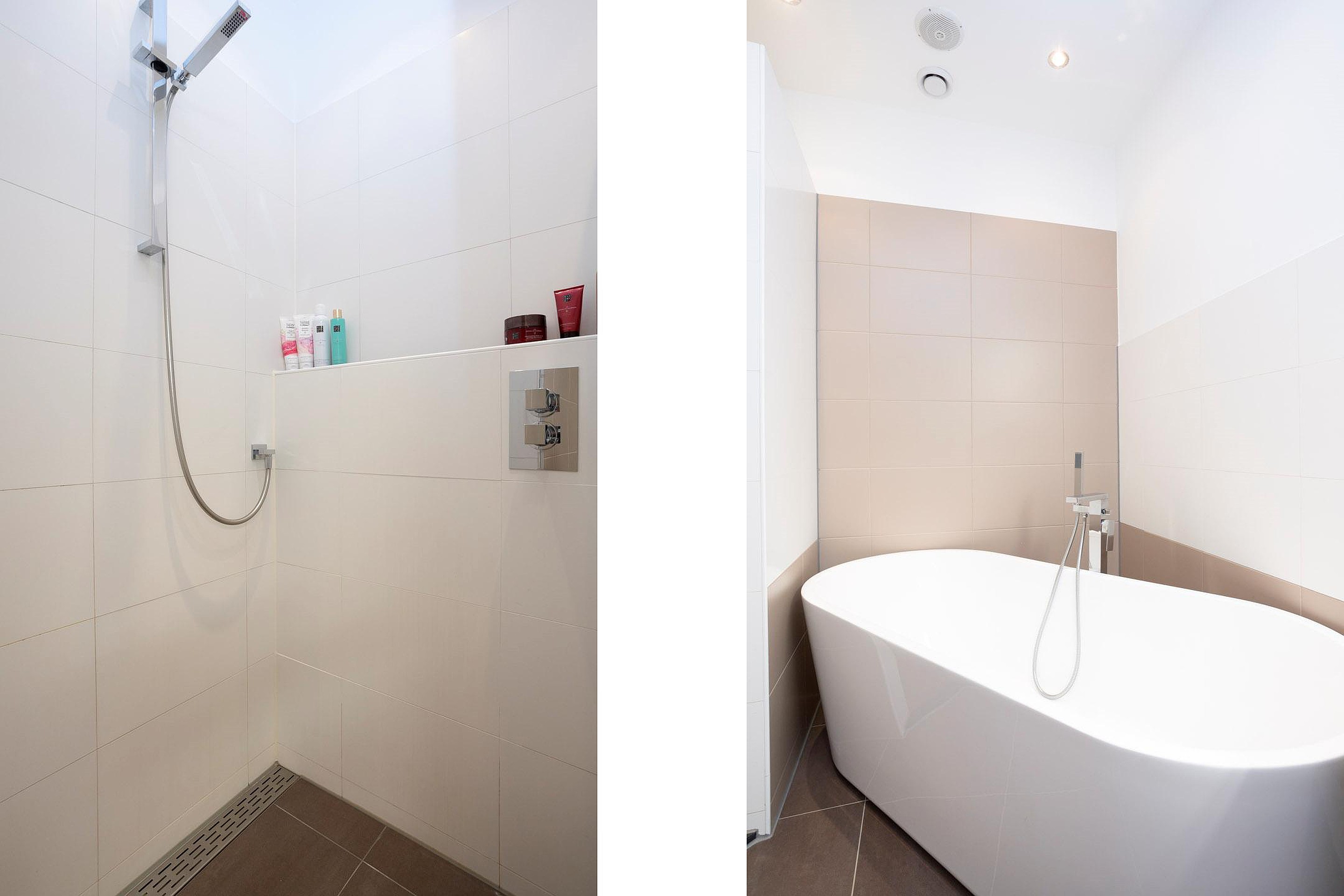 Vanuit de woonkamer heeft u toegang tot een gang met daaraan gelegen 2 slaapkamers, luxe badkamer en het toilet. De slaapkamer aan de achterzijde is bijzonder ruim van opzet en beschikt ook over een deur naar het eerder genoemde terras. De vloer is keurig afgewerkt met eikenhout. De slaapkamer aan de voorzijde beschikt ook over de eiken vloer. De luxe badkamer is gerenoveerd en voorzien van een design ligbad, royale inloopdouche en vloerverwarming. Kijk ook naar het plafond, deze is verlaagd en voorzien van spots. Tot slot is er een apart toilet met fonteintje.