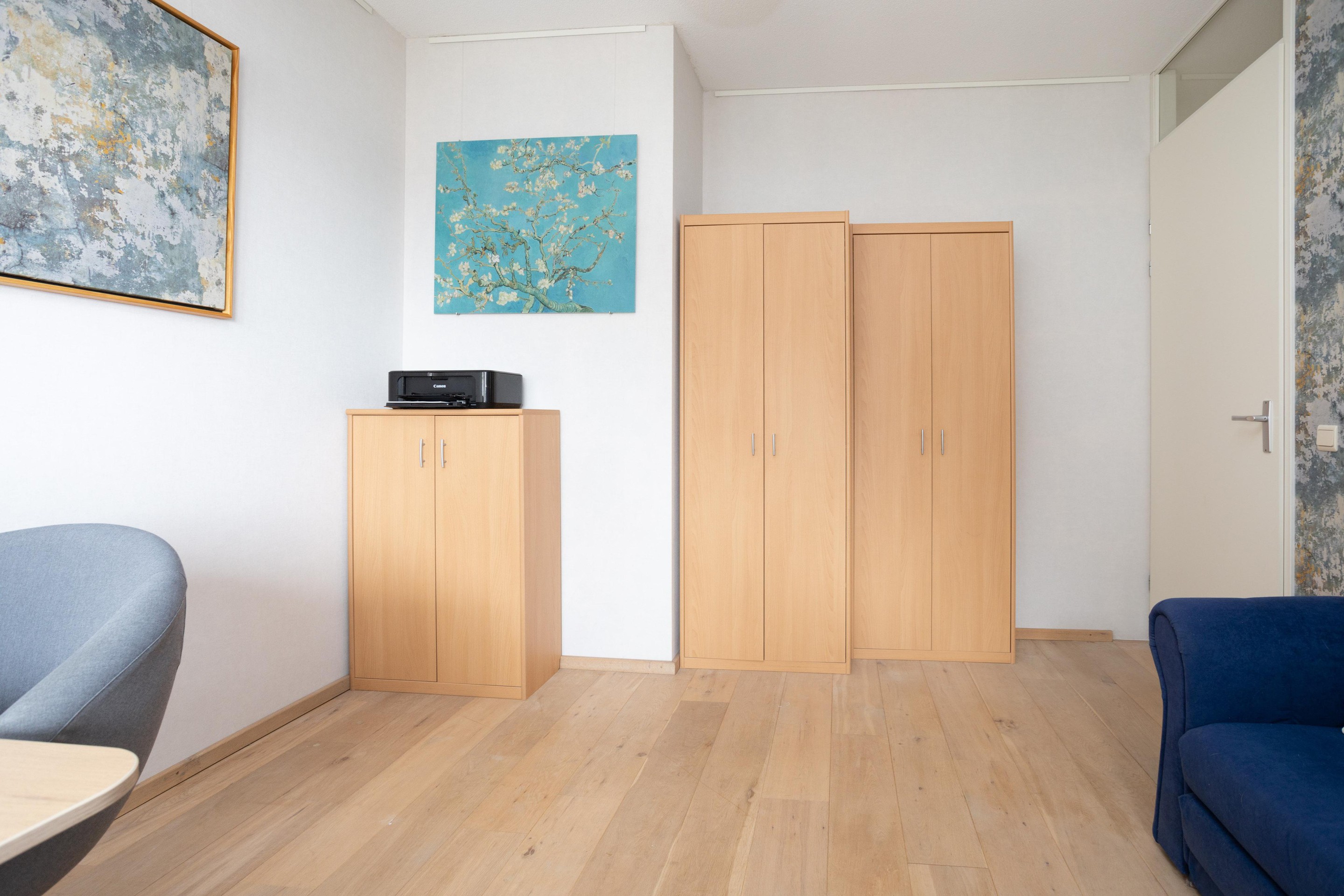 Vanuit de entree heeft u toegang tot de geweldige living. Bij binnenkomst vallen direct de grote ramen op, heerlijk al dat licht. De ramen zijn voorzien van sunscreens. Op de vloer ligt prachtig eiken. Vanuit de woonkamer krijgt u middels een deur toegang tot het terras met prachtig vrij uitzicht op de fraaie torens van historisch Delft.