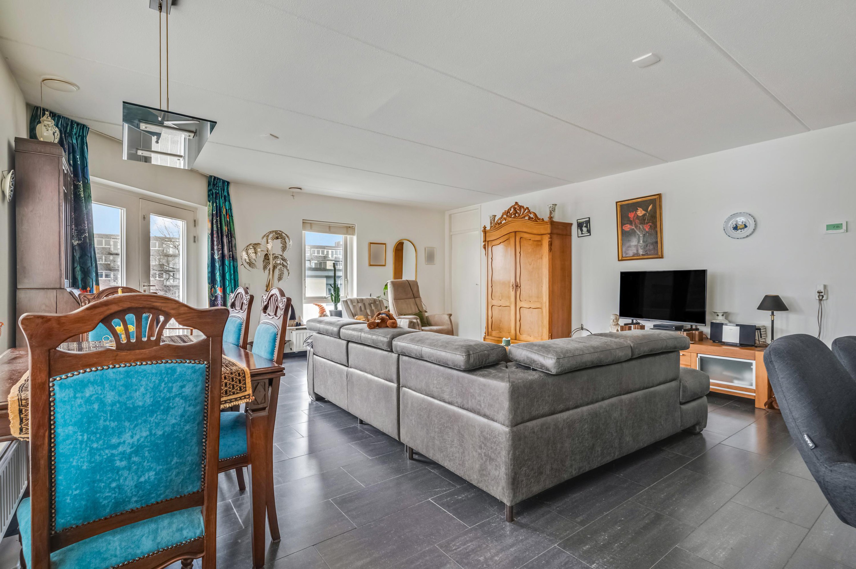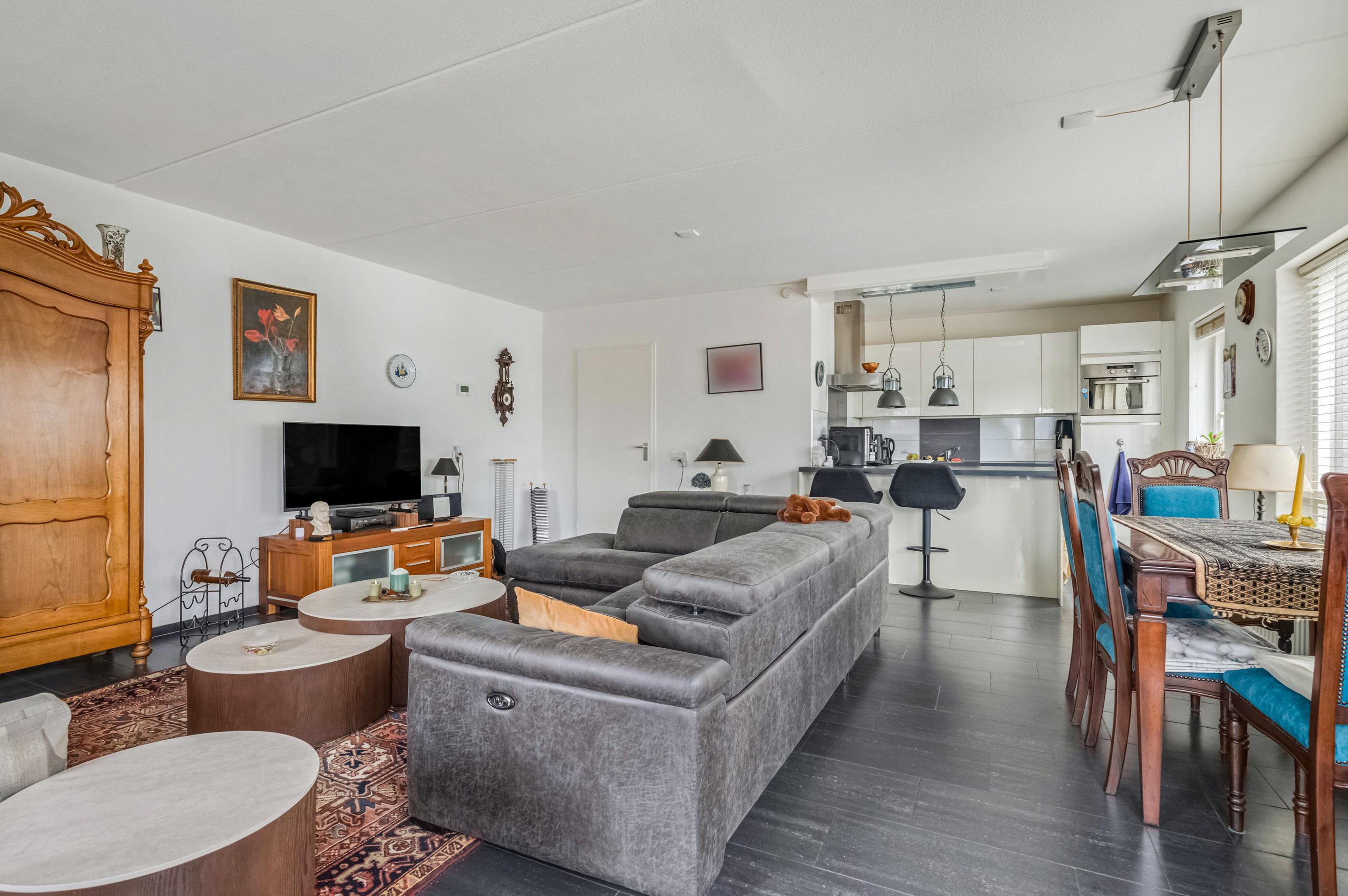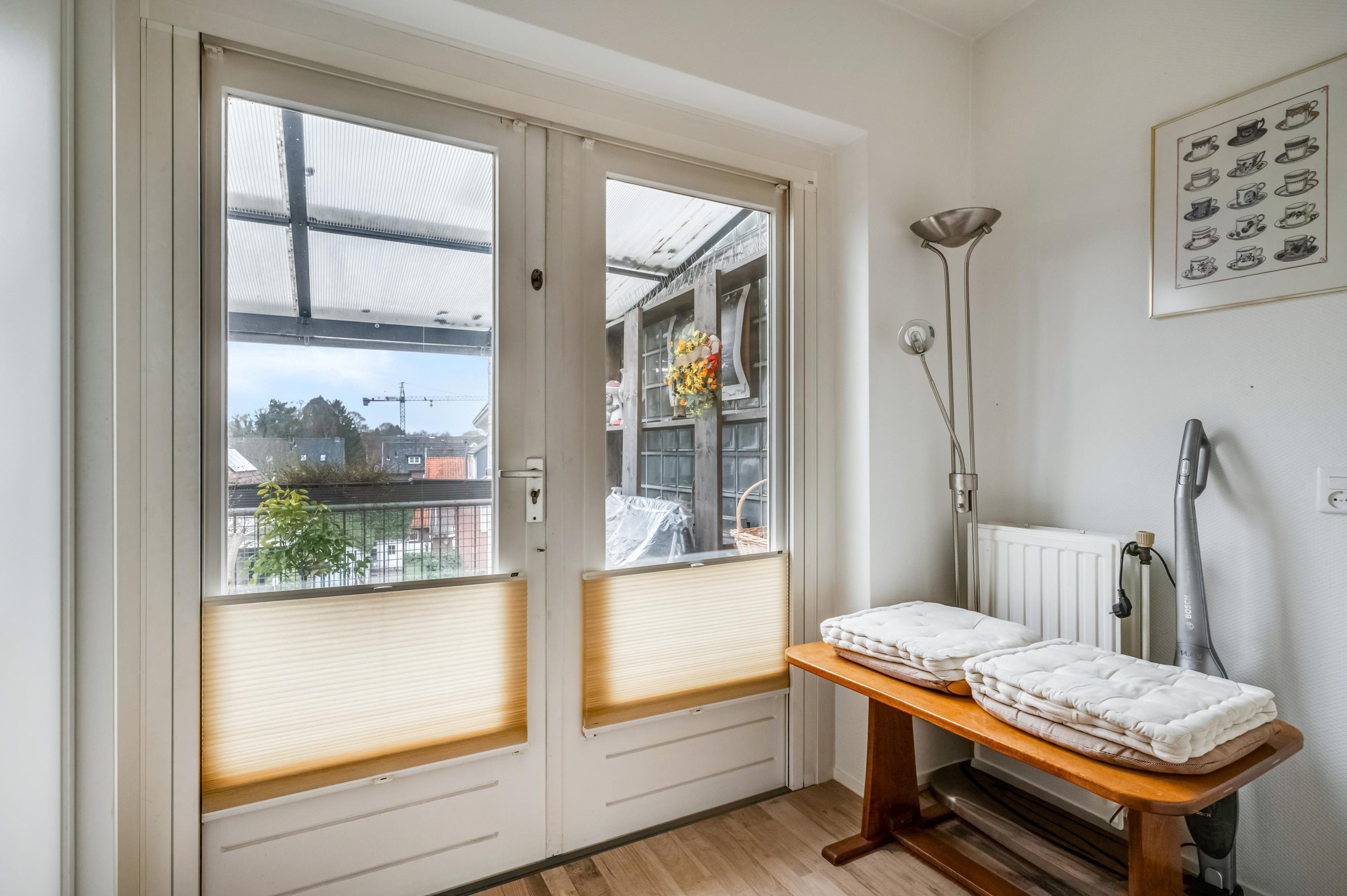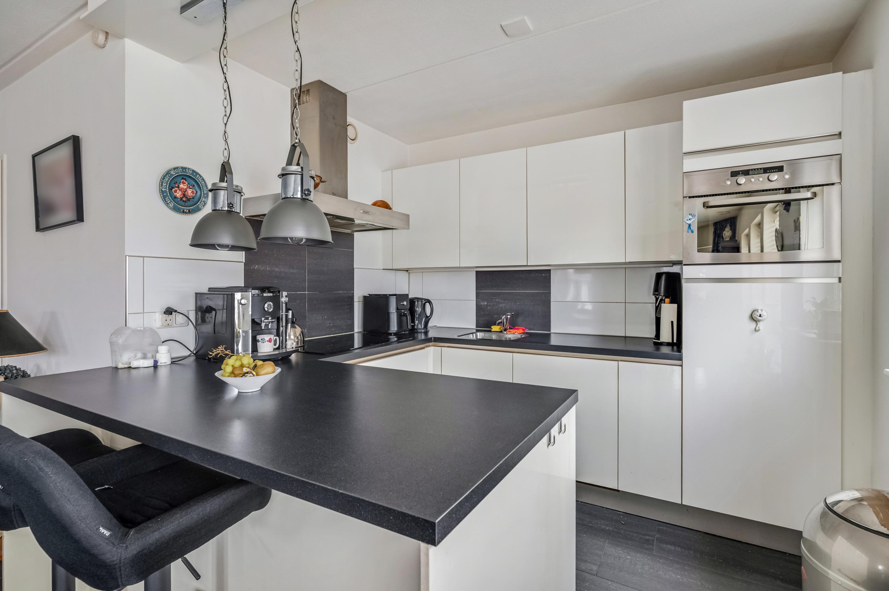 Aan de achterzijde is het zonnige balkon op het zuiden bereikbaar, waar je vrijwel de hele dag van de zon kunt genieten.