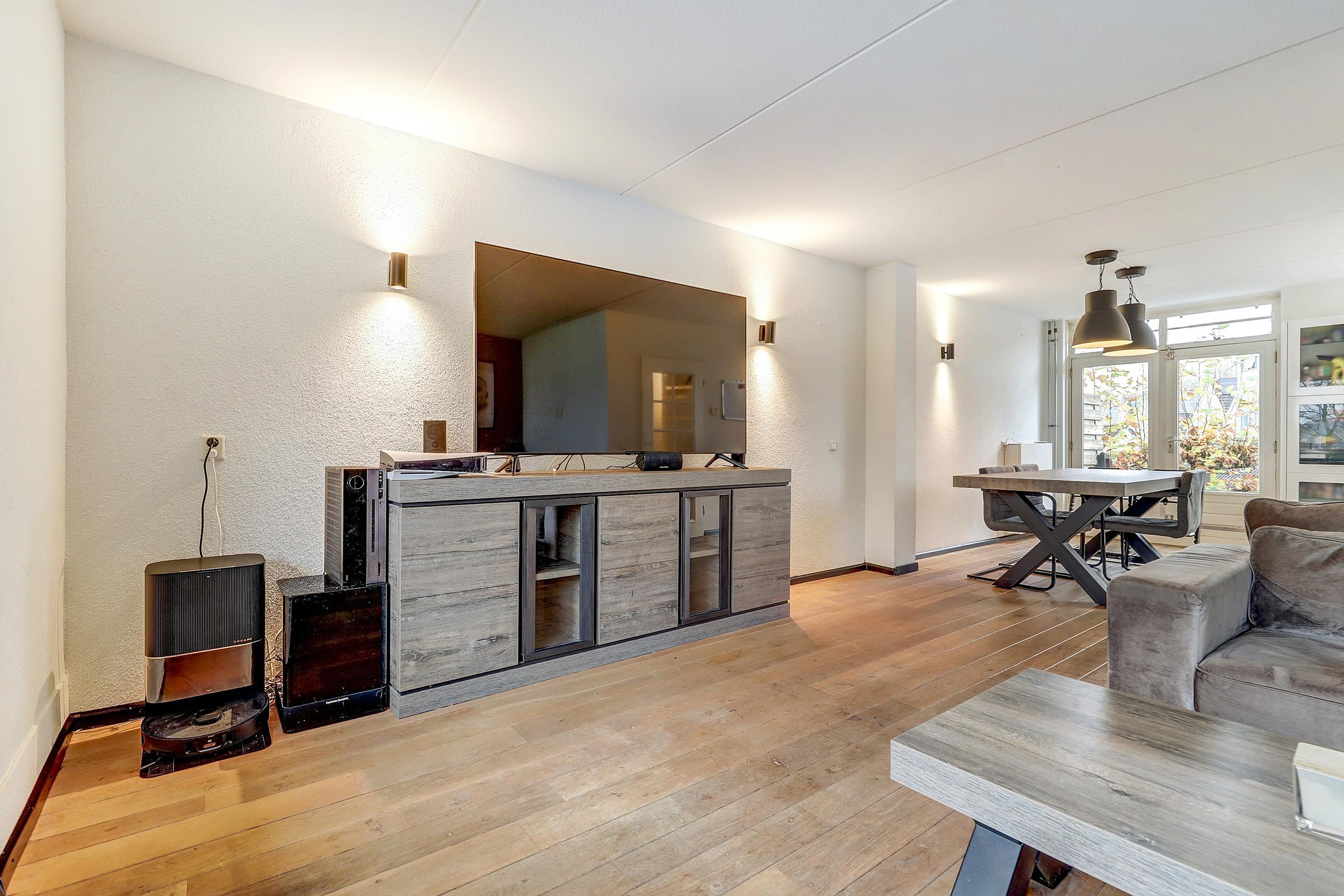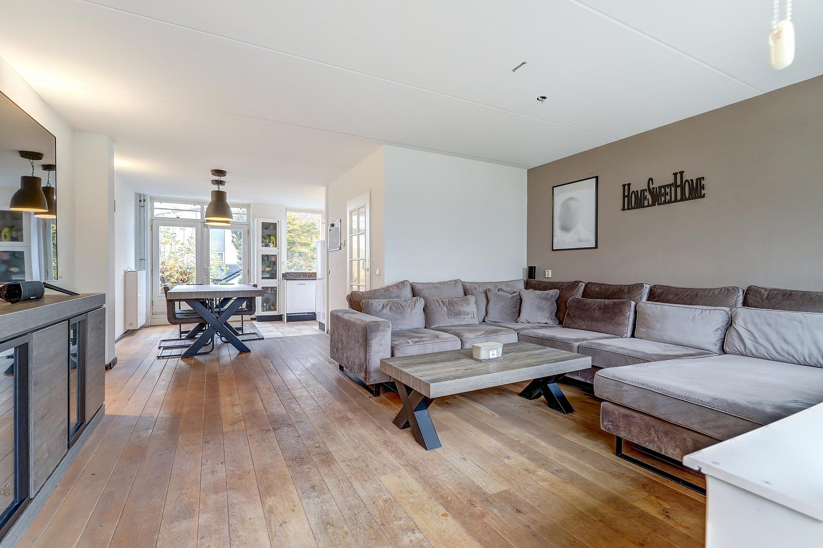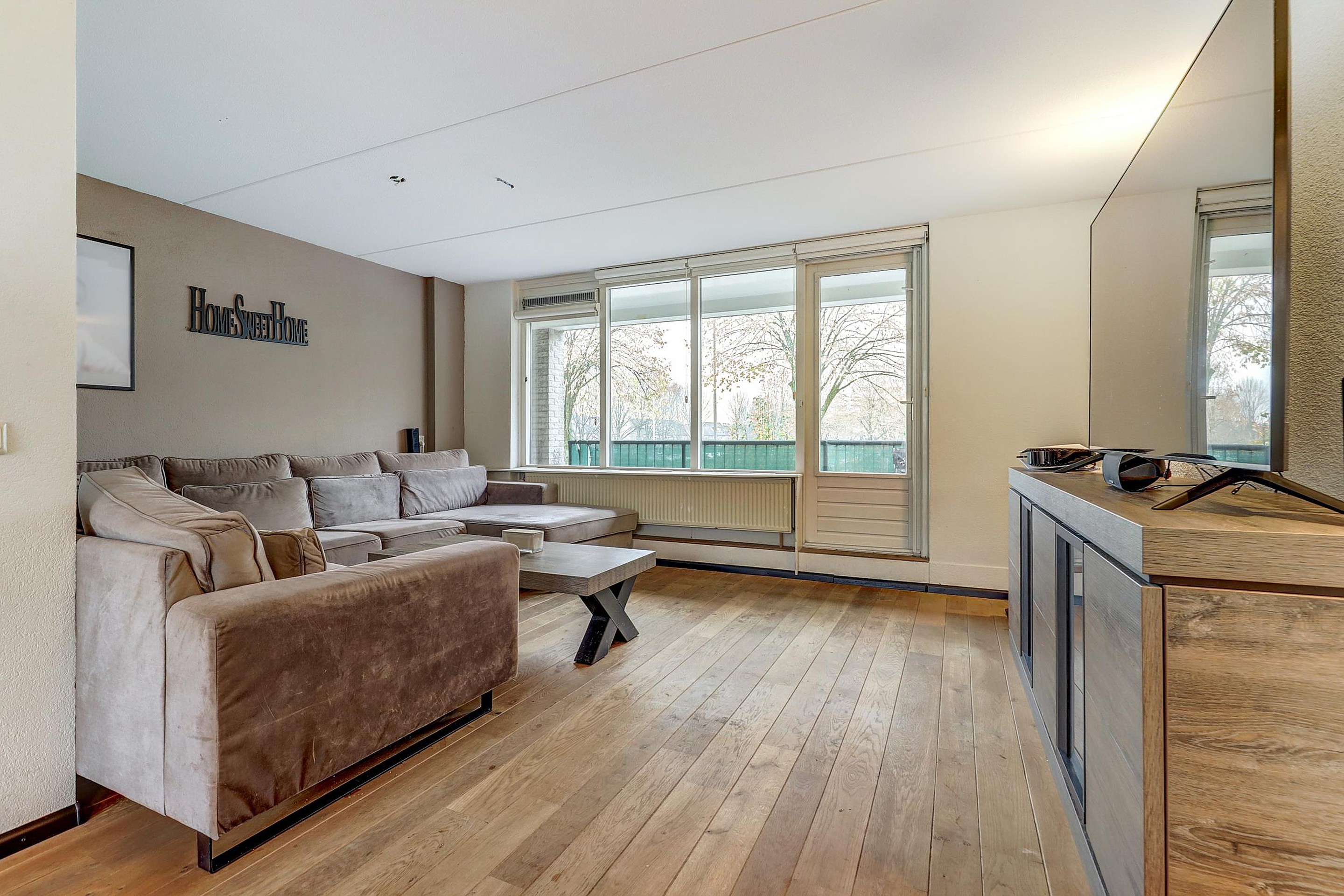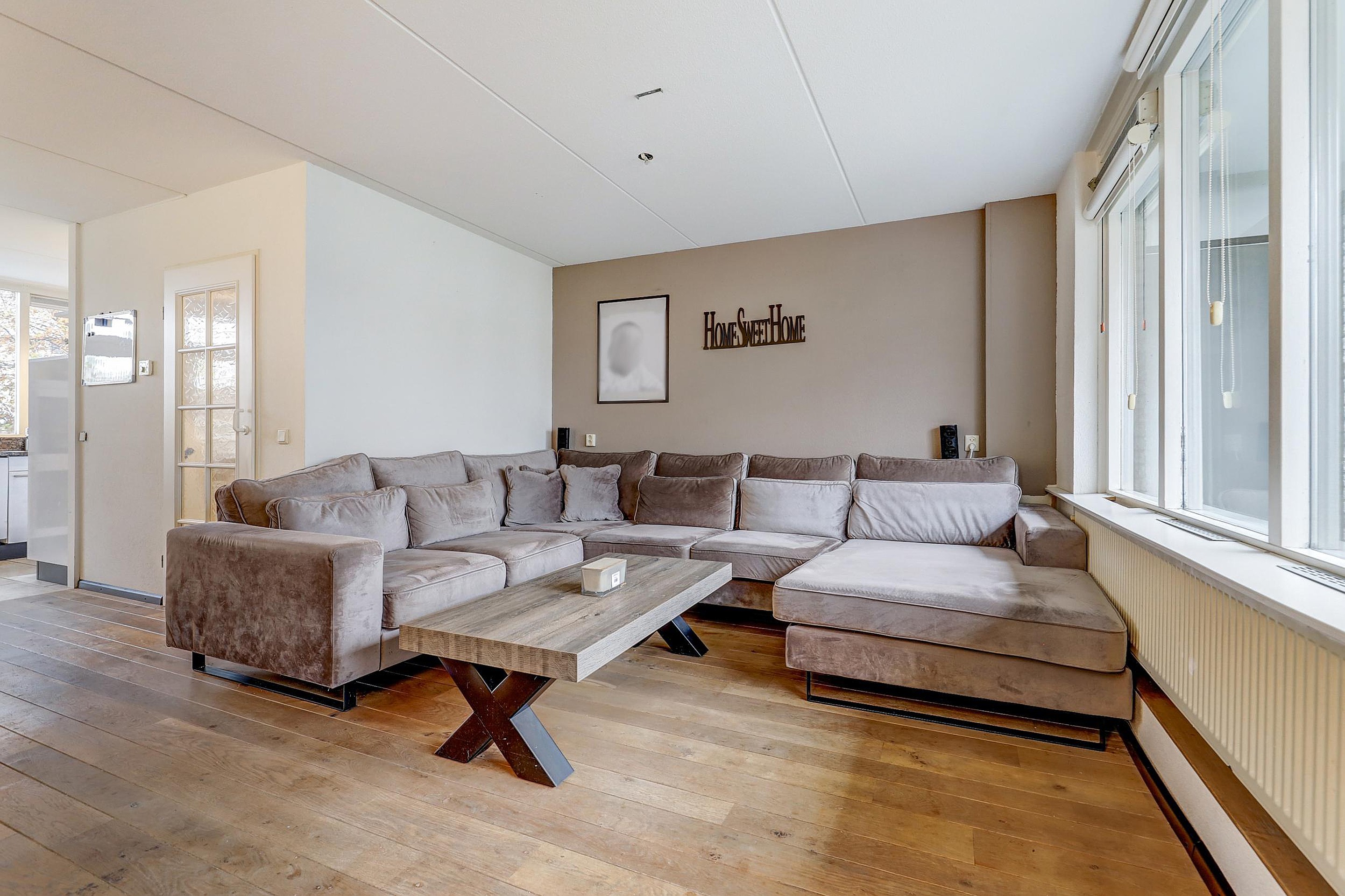 De woonkamer (ca. 33 m2) is een heerlijke lichte leefruimte met een warme houten vloer, een vrij uitzicht aan de voorzijde én een gezellig balkon.