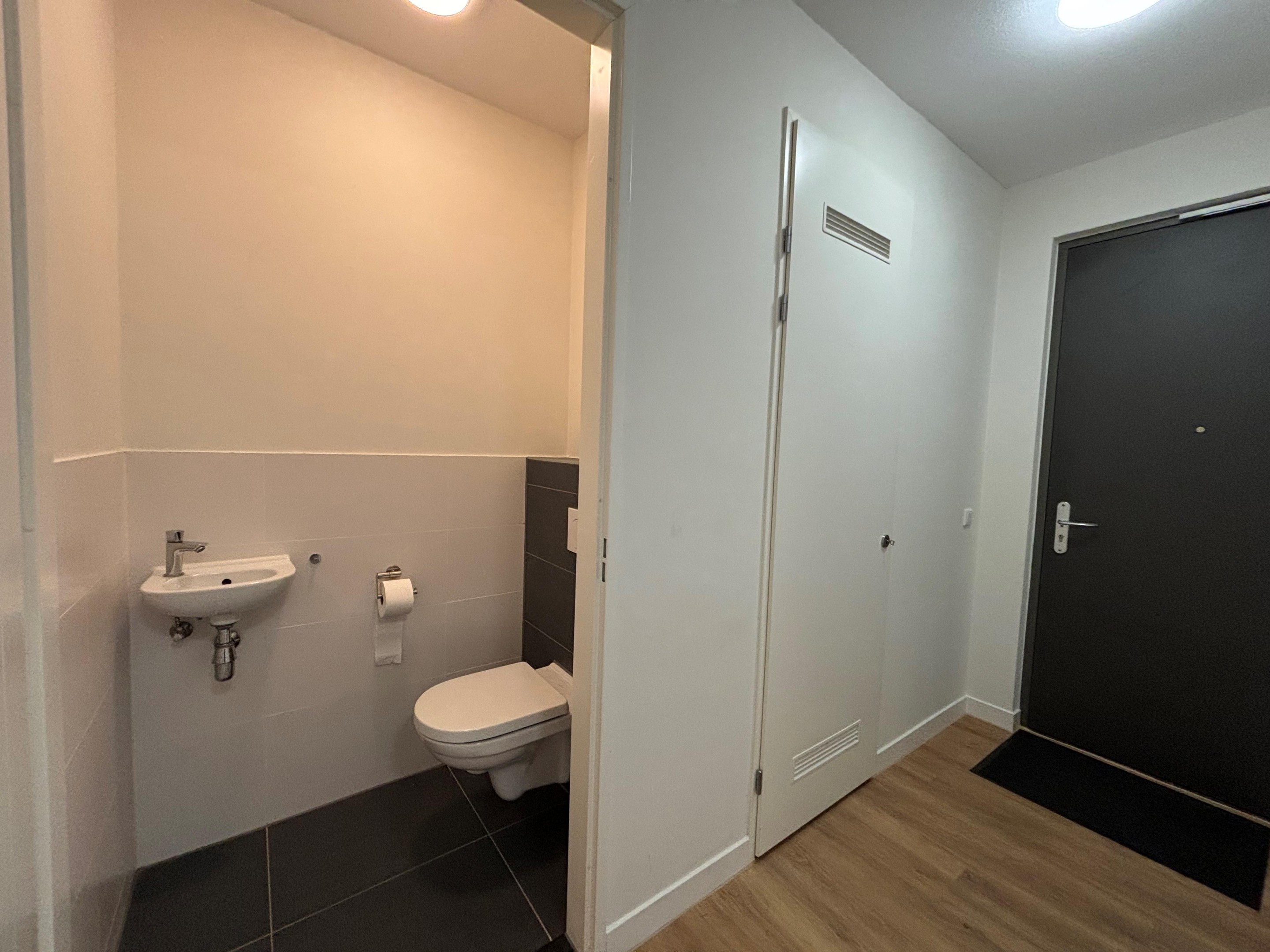 Via de entree bereikt u de hal met toegang tot het separate toilet, de technische ruimte en de badkamer. De moderne badkamer is voorzien van eigentijds sanitair en een praktische indeling.