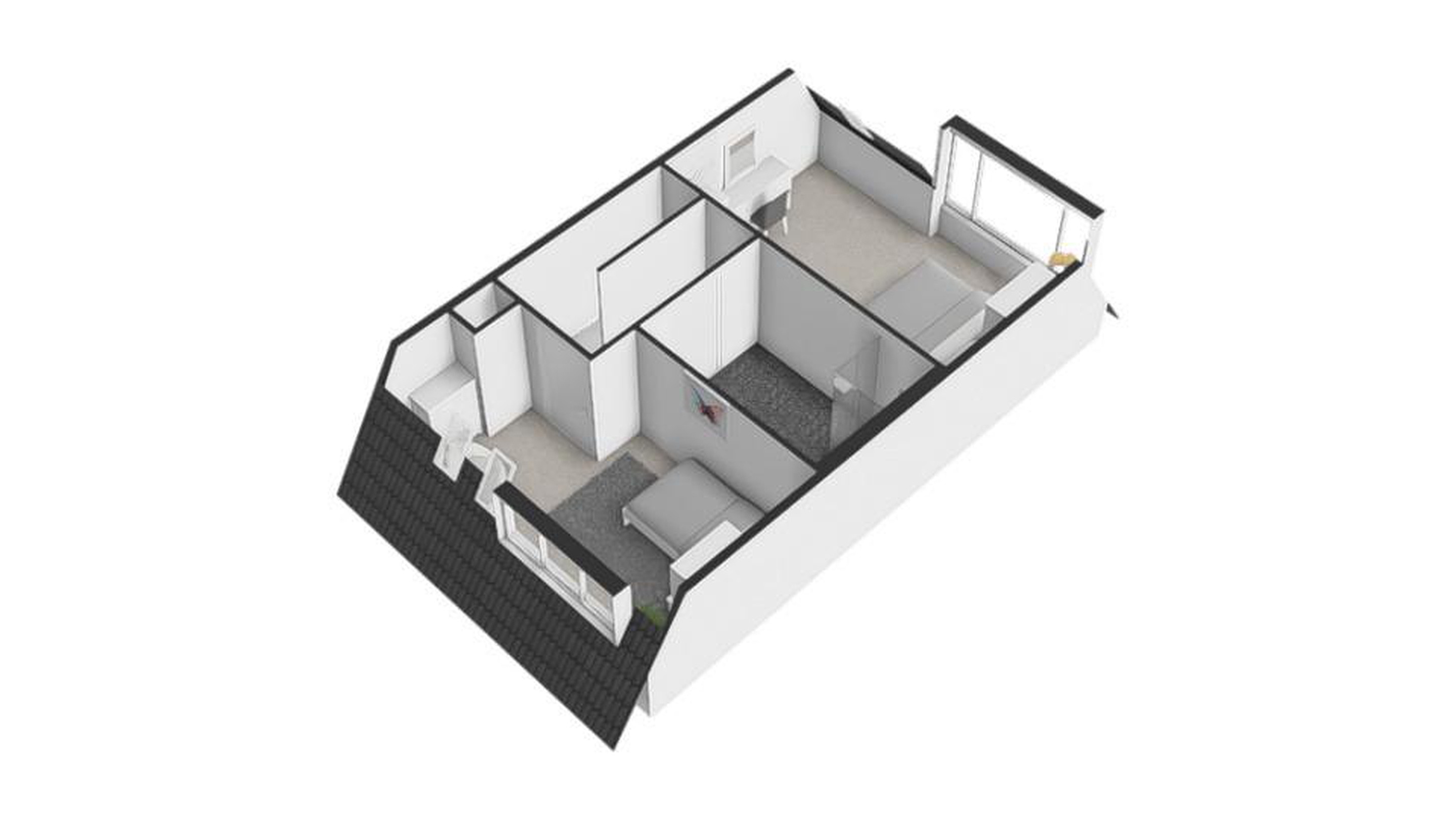 Hier bevinden zich 2 ruime slaapkamers, waarvan de slaapkamer aan de voorkant een extra dakraam heeft.