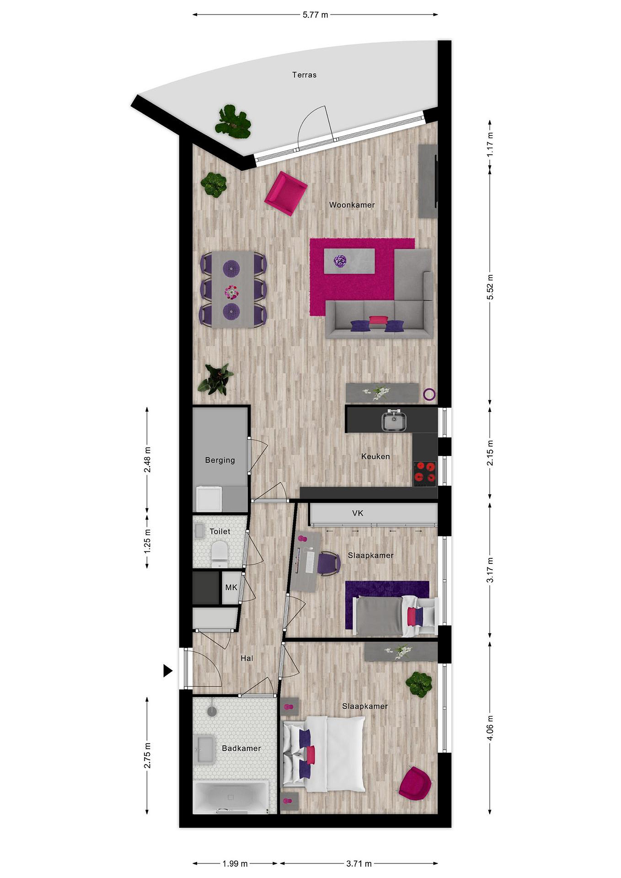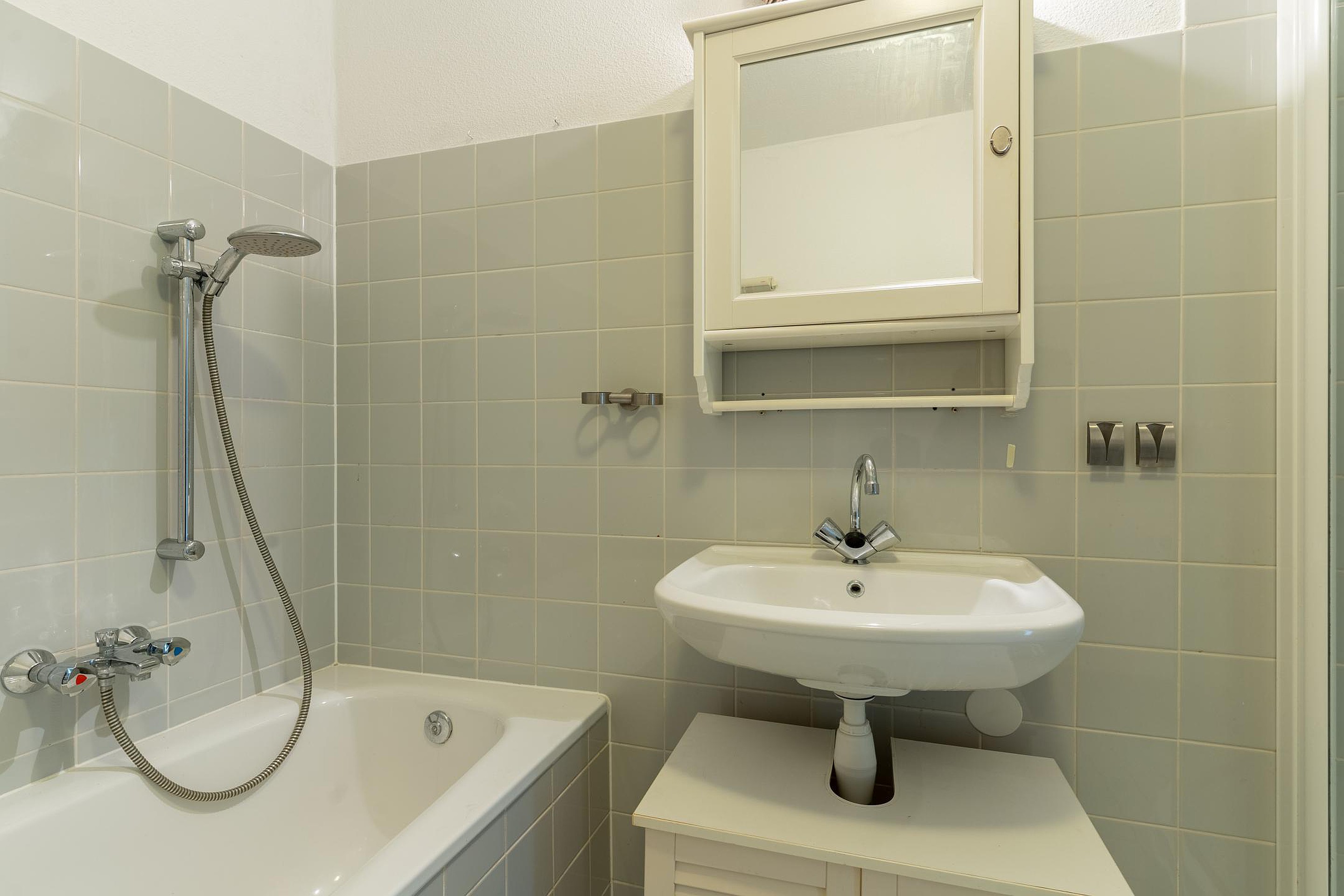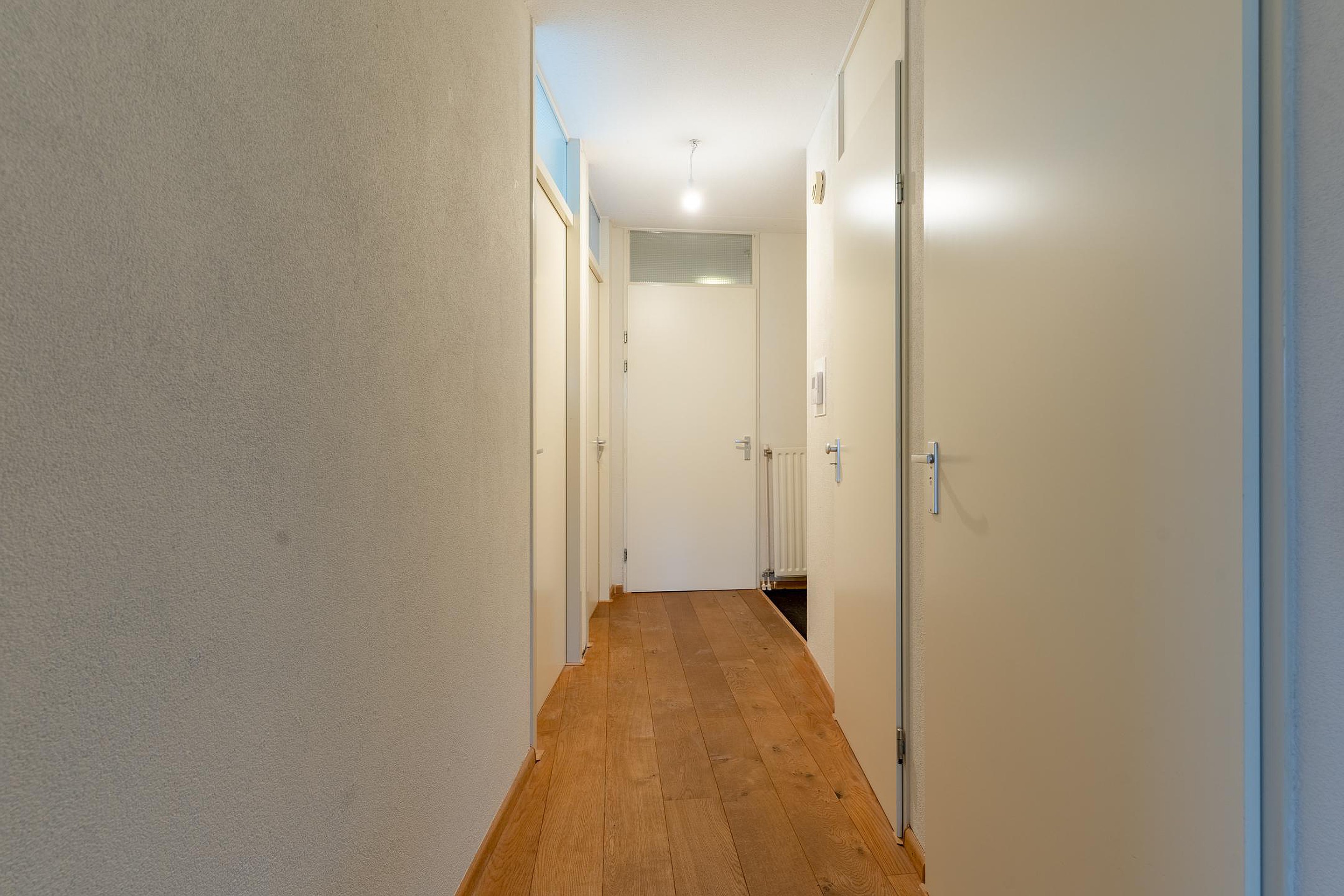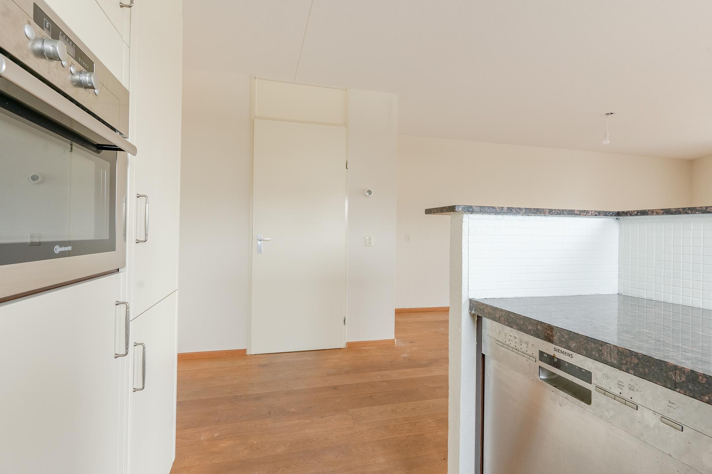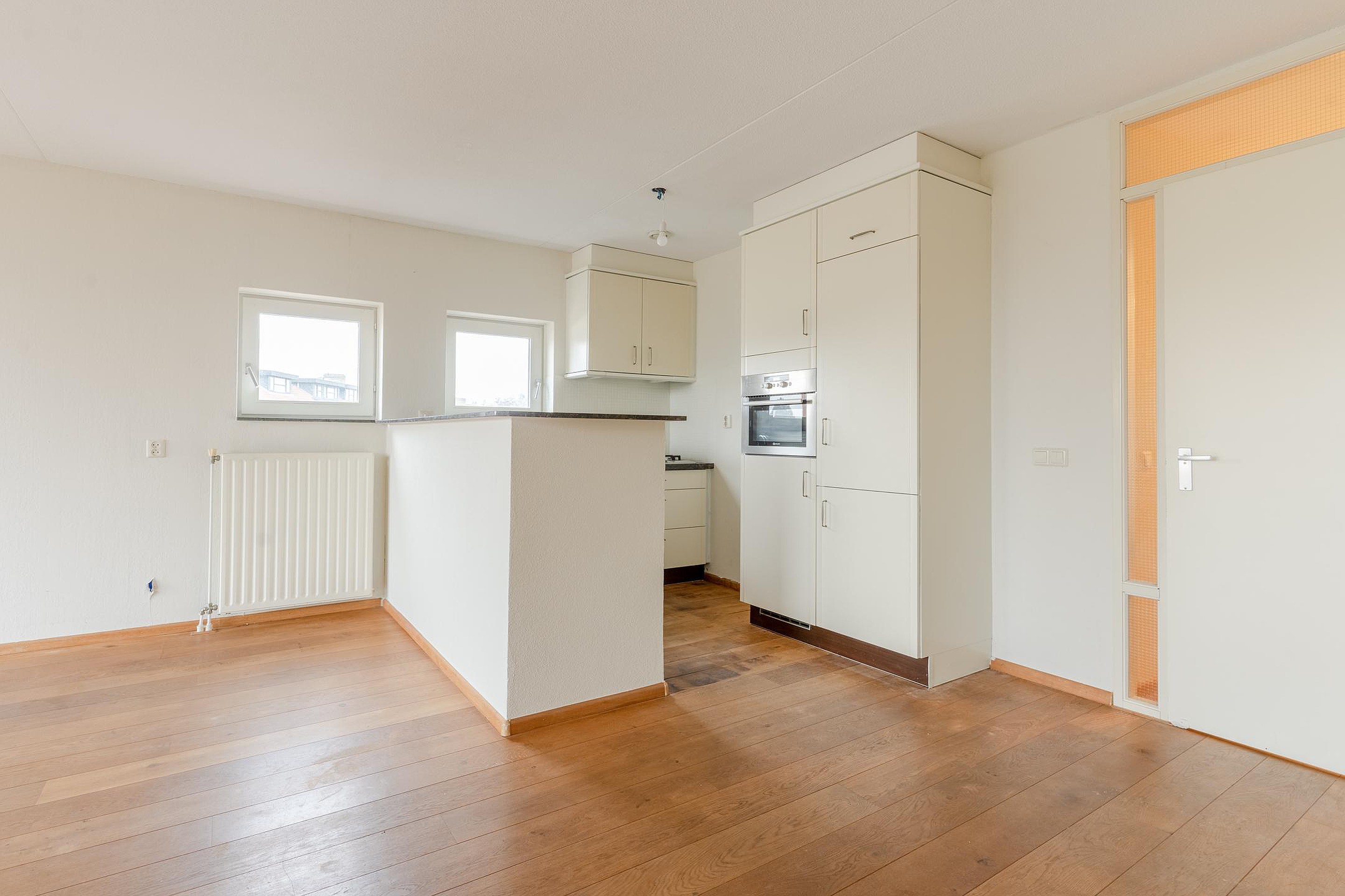 hal, licht betegelde badkamer voorzien van douchecabine, ligbad en wastafel. 2 ruime slaapkamers, afzonderlijk toilet, inpandige berging met opstelling van de c.v. combiketel en ruimte voor de was apparatuur, royale woonkamer met voorraadkast, open keuken en toegang tot het overdekte balkon.