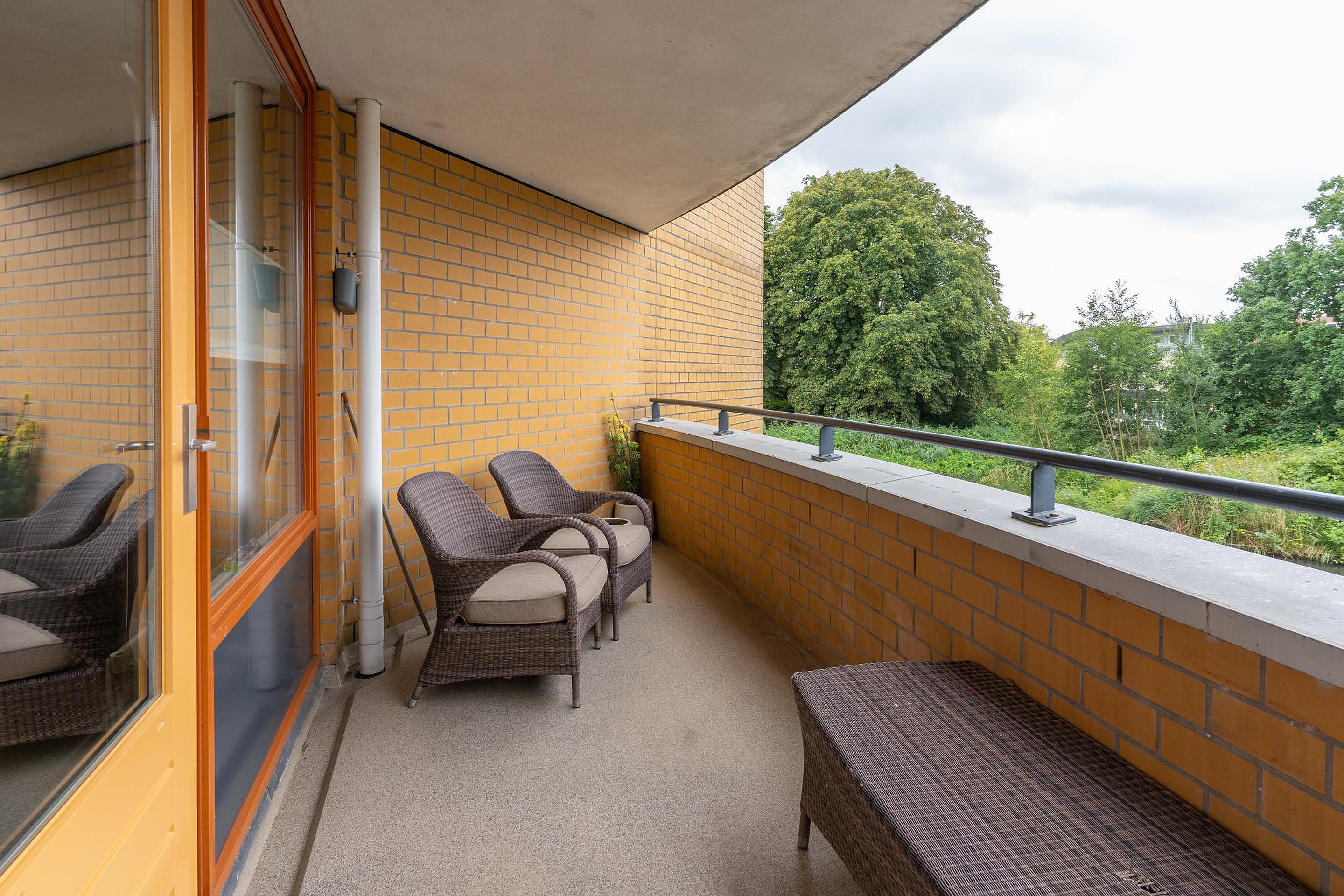 Het appartement beschikt over 2 slaapkamers, een ruime woonkamer en overdekt balkon met zicht op een waterpartij en het groen.