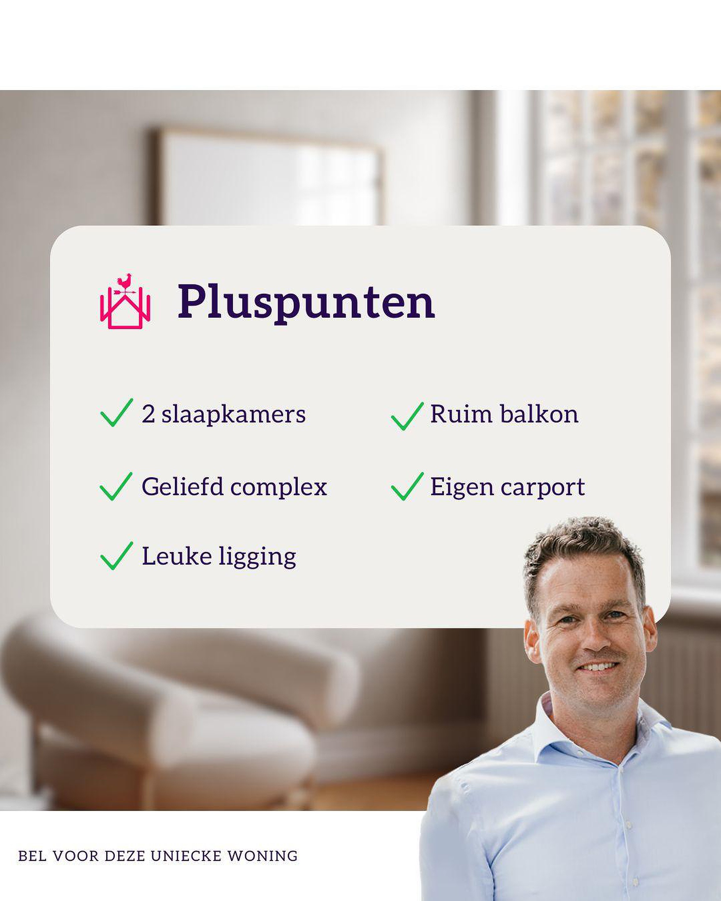Dit appartement is voorzien van een eigen carport en een eigen fietsenberging.