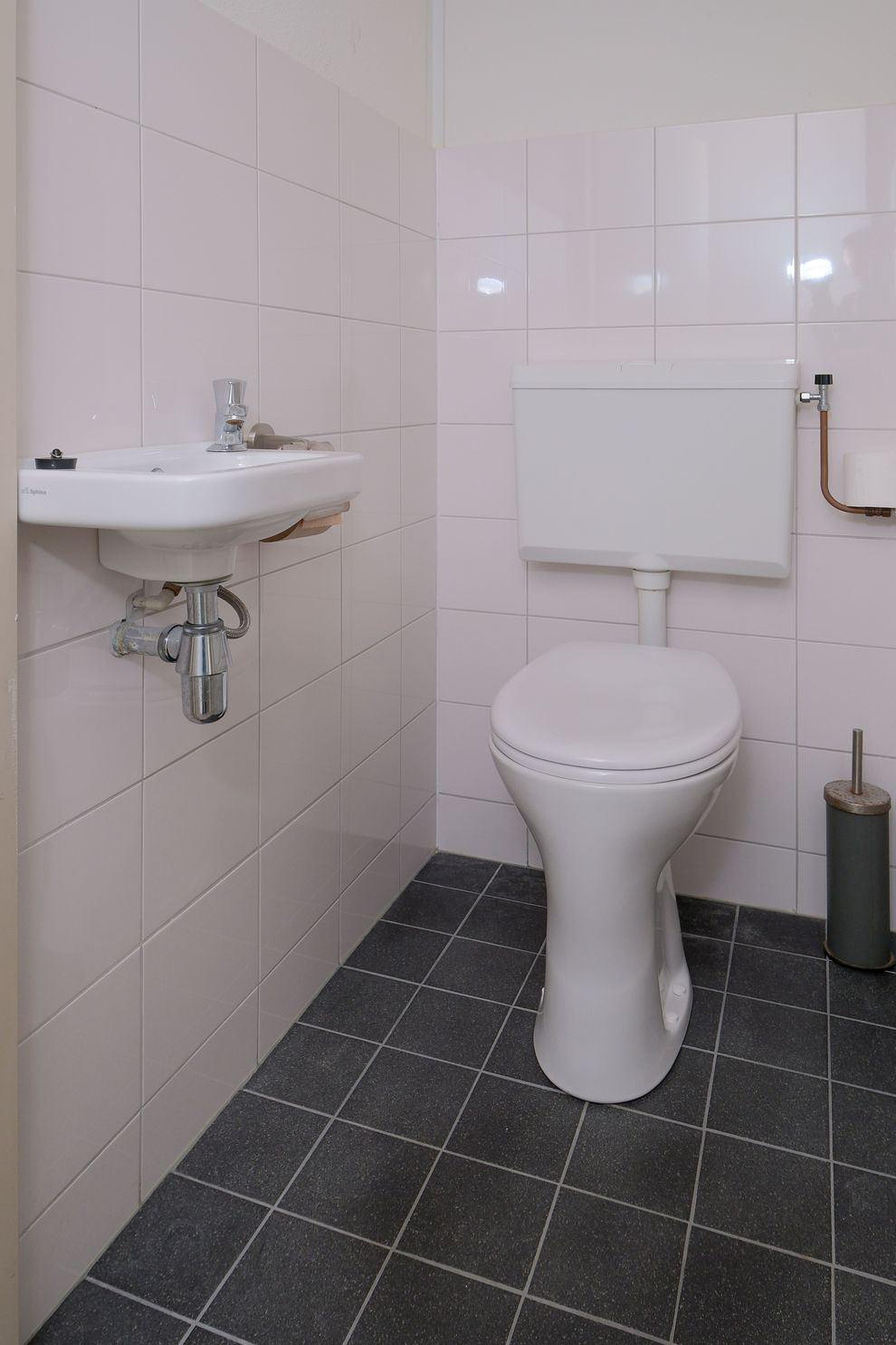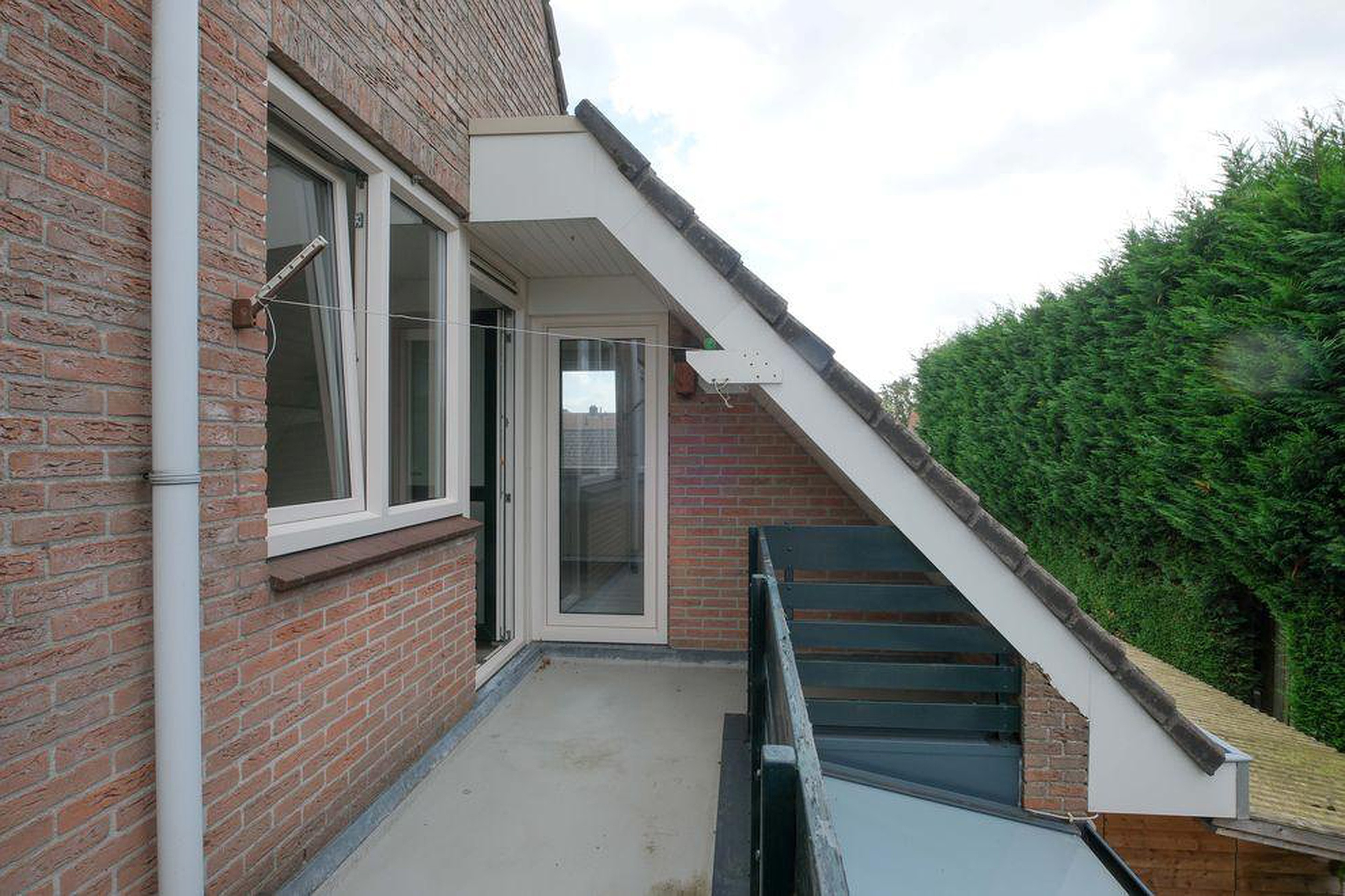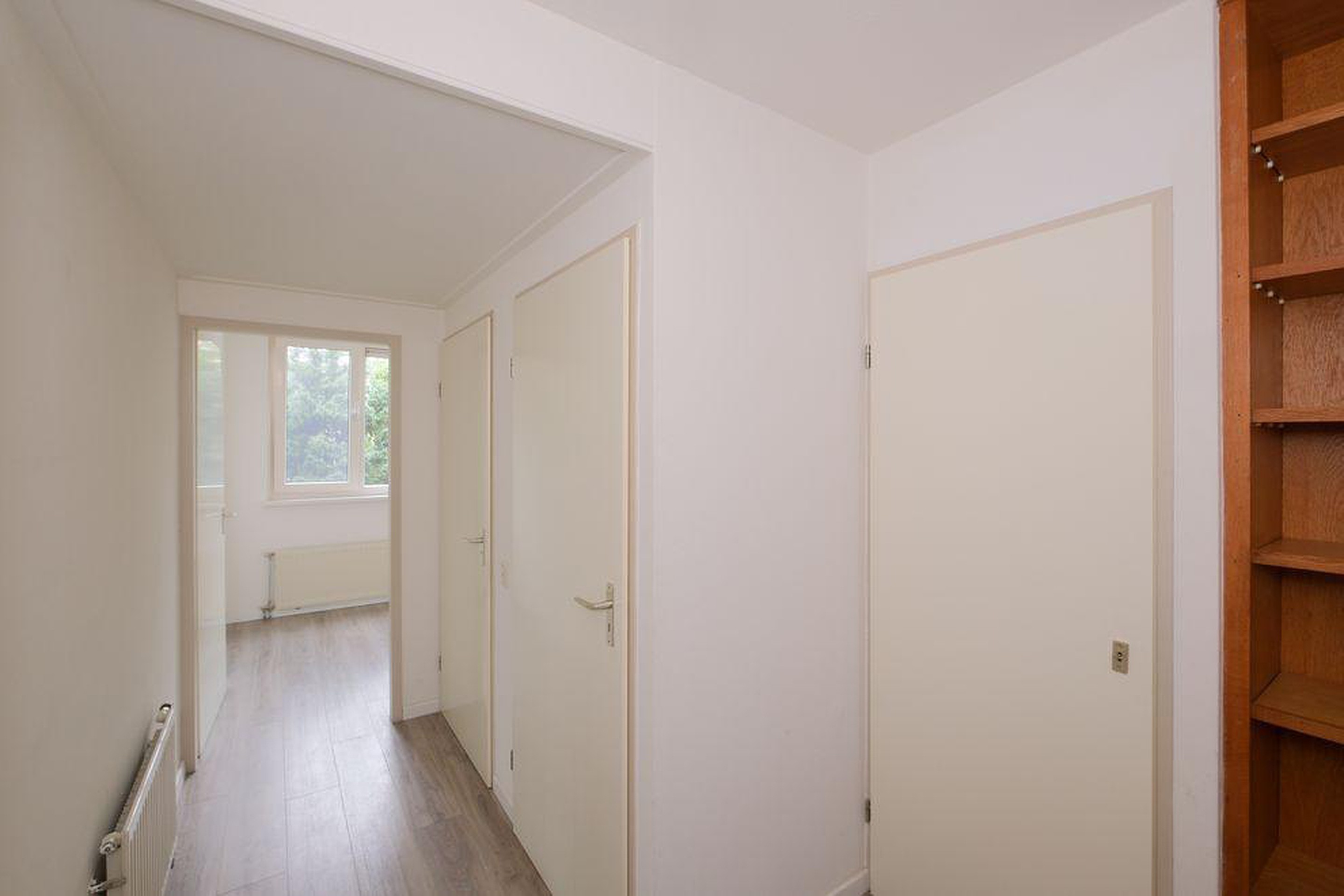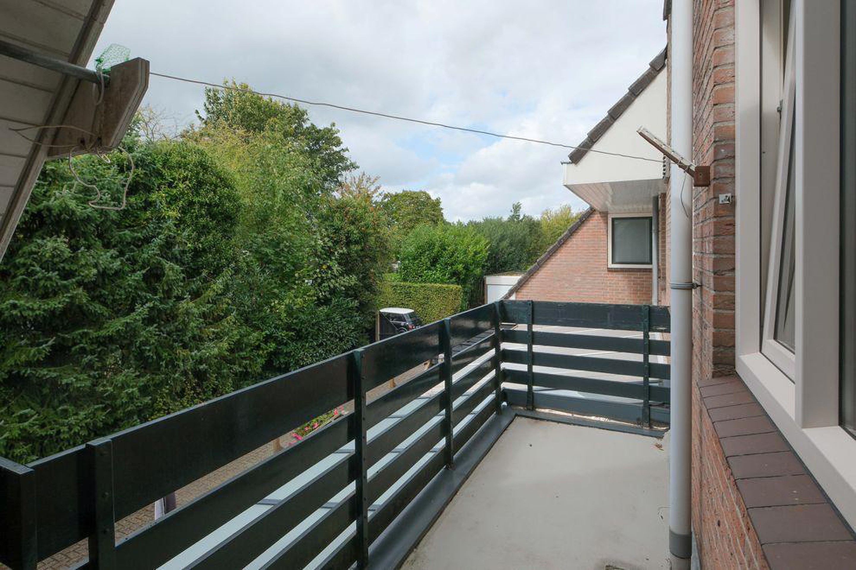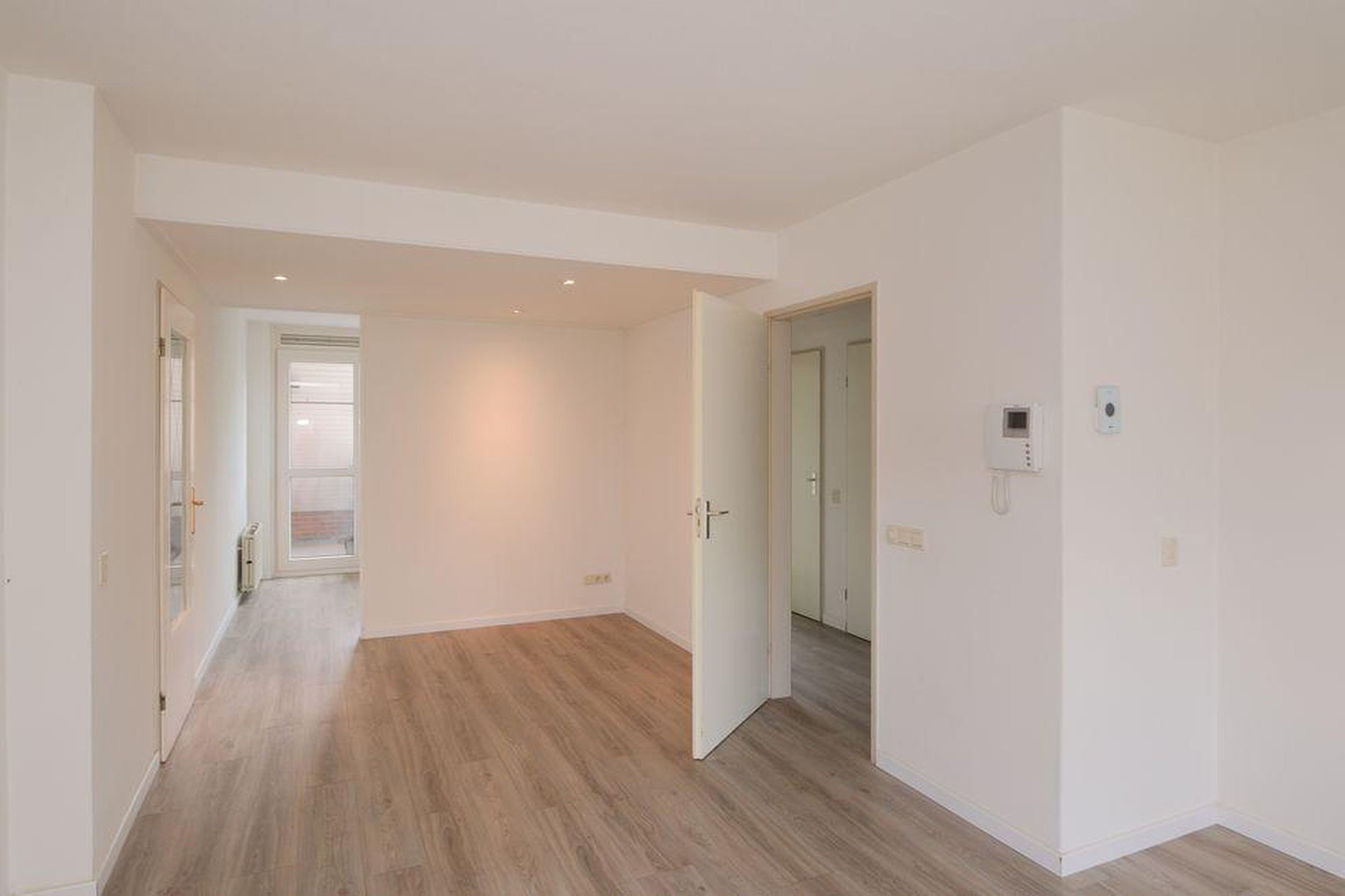 Via de vaste trap bereikt u het portaal van de eerste verdieping. Vanuit de voordeur stapt u binnen in de hal, waar zich de meterkast en het toilet bevinden. Vanuit deze hal heeft u toegang tot de royale woonkamer met open keuken. Vanuit de keuken bereikt u bovendien het balkon, waar u heerlijk buiten kunt zitten.