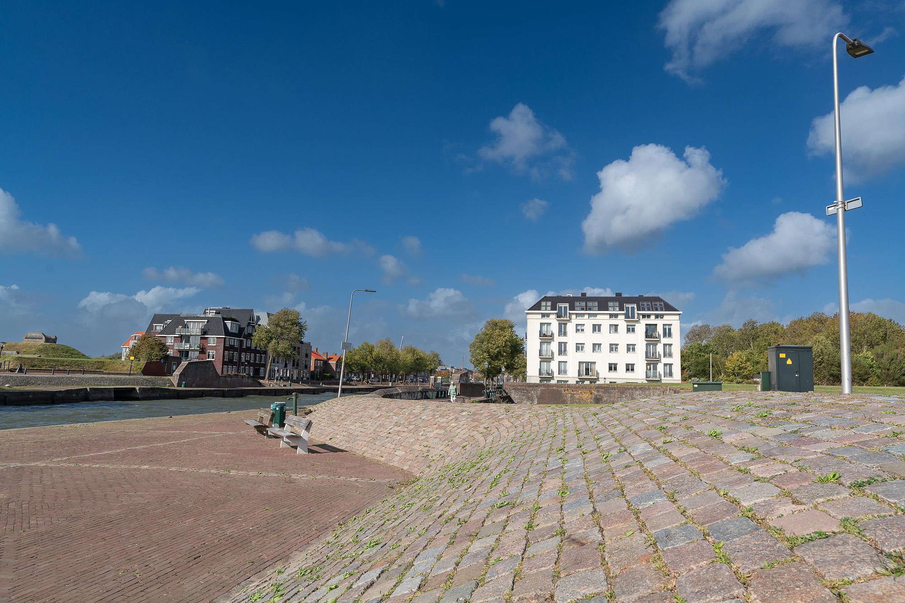 Het Marinehospitaal, een gebouw met een rijke geschiedenis, is een monumentale verschijning aan de oude haven. Opgetrokken rond 1820 diende het als militair ziekenhuis voor zeelieden. In de loop der eeuwen heeft het diverse functies gehad, waaronder een marinekazerne, en in de Tweede Wereldoorlog een hoofdkwartier voor de Duitse bezetter. Na de verkoop aan de gemeente in 1969 werd het verbouwd tot kantoren en woningen. Na de verwoestende brand in 2009 is het gebouw zorgvuldig en in originele stijl herbouwd, waardoor de historische gevel behouden bleef en de locatie zijn unieke karakter terugkreeg. De gevel is een iconisch element van de Vesting, en het wonen in dit pand is een eerbetoon aan het verleden, gecombineerd met de kwaliteit van nieuwbouw. Het appartement is van een jong bouwjaar (2012) en beschikt dan ook over een energielabel A+.