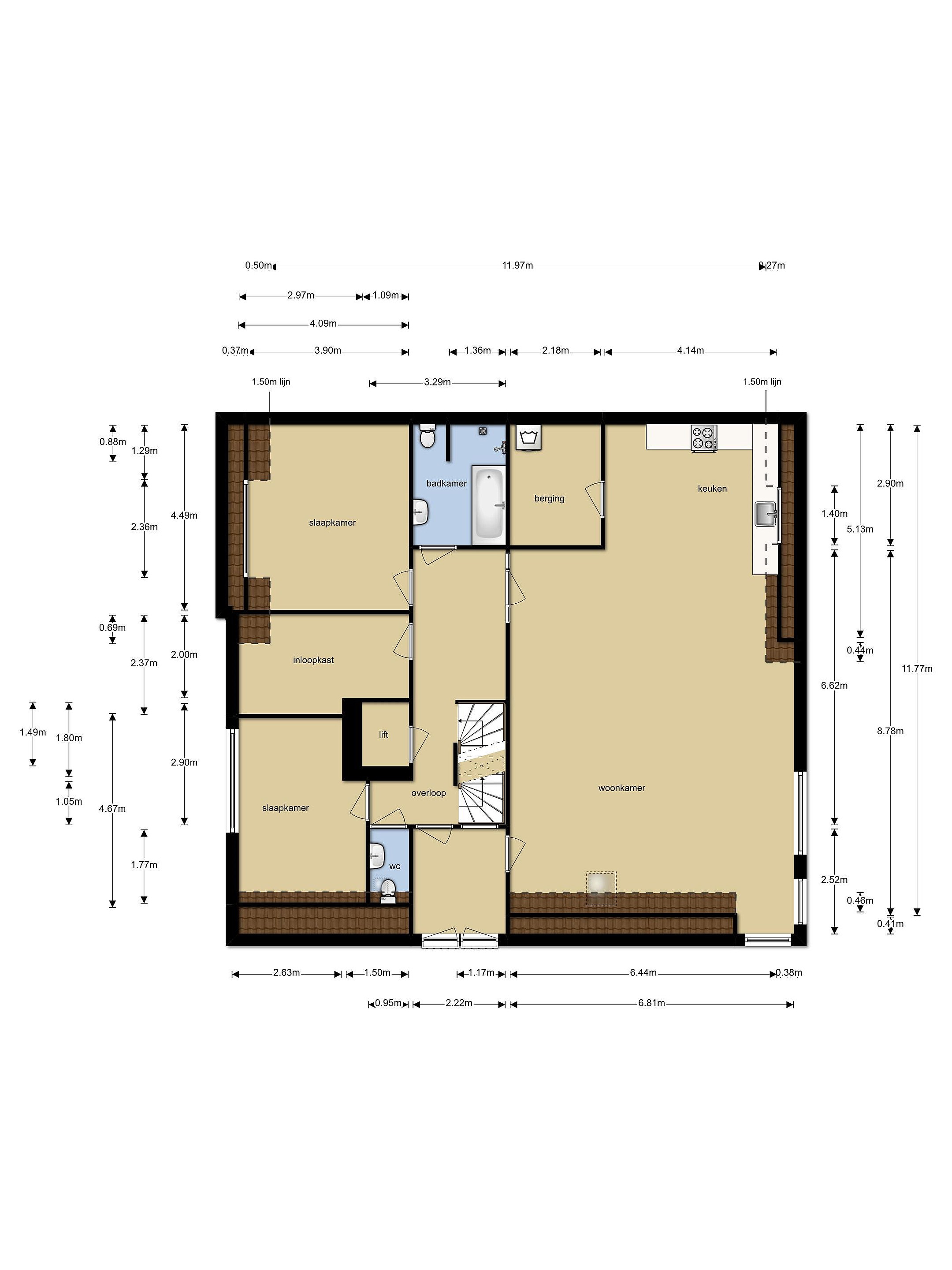 - Zonnig dakterras van circa 48 m2;