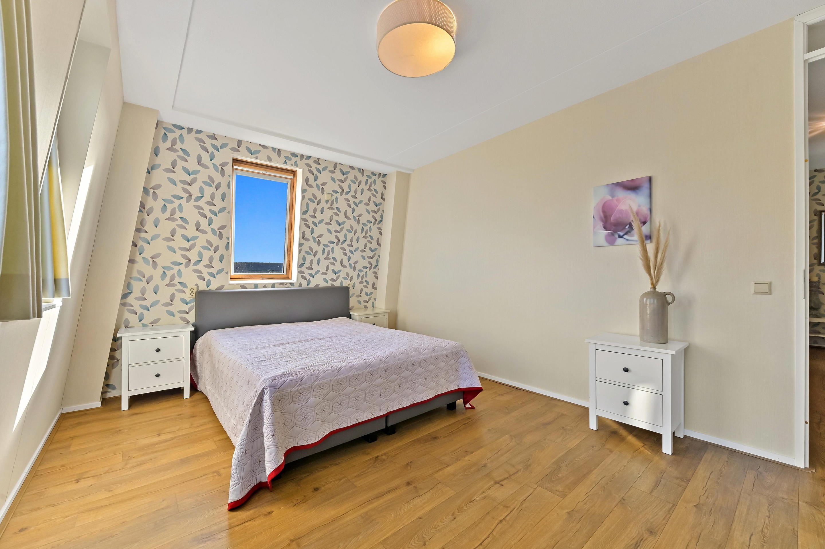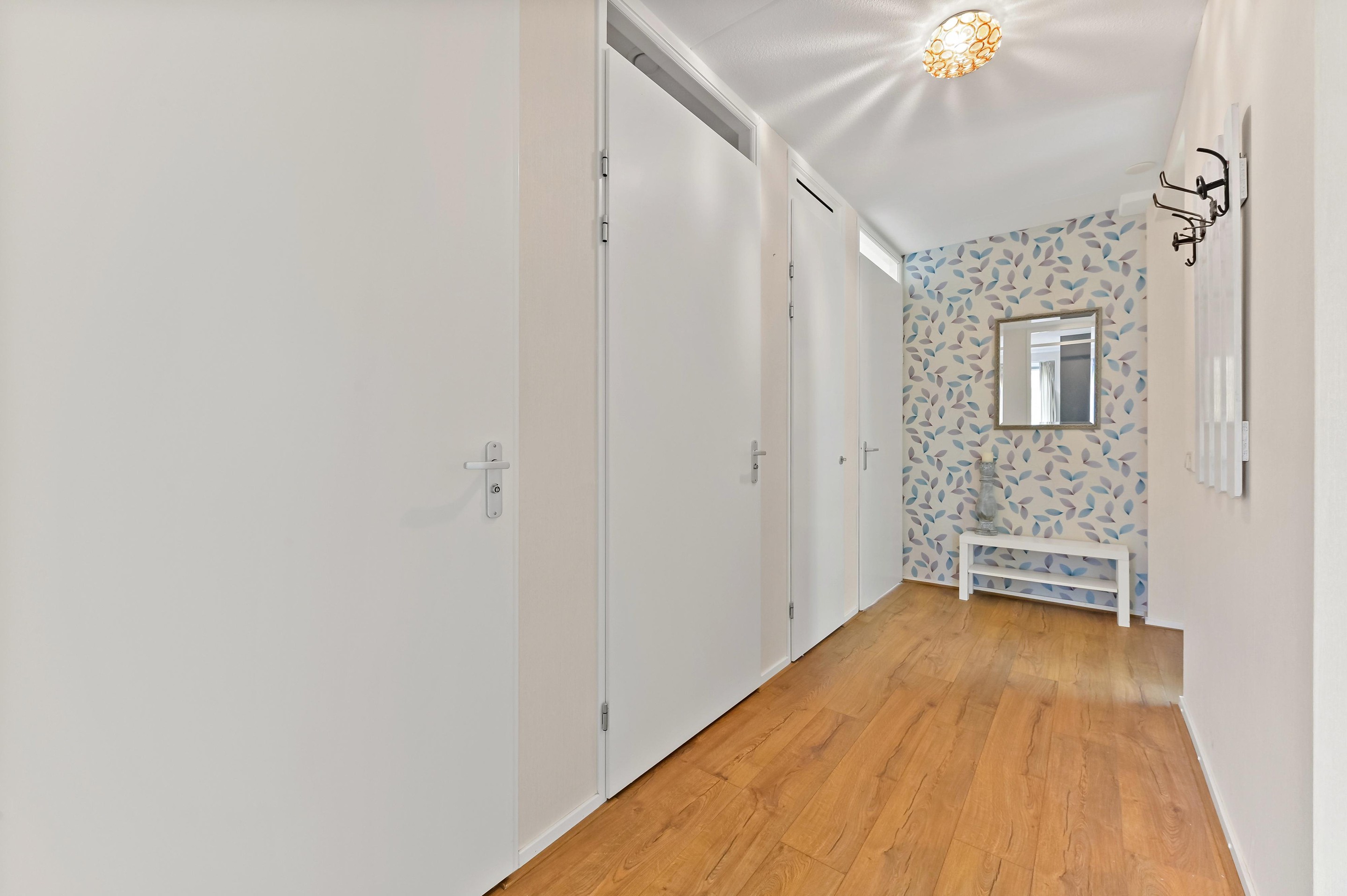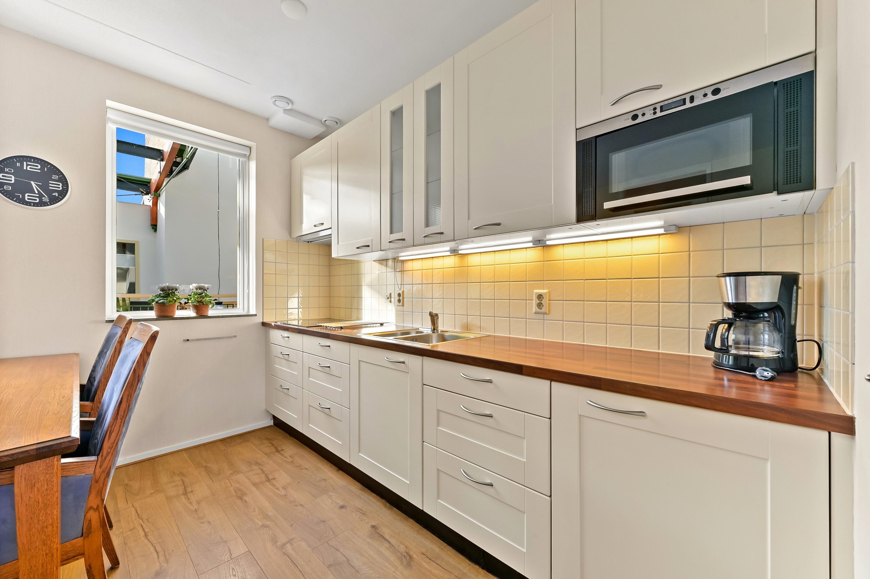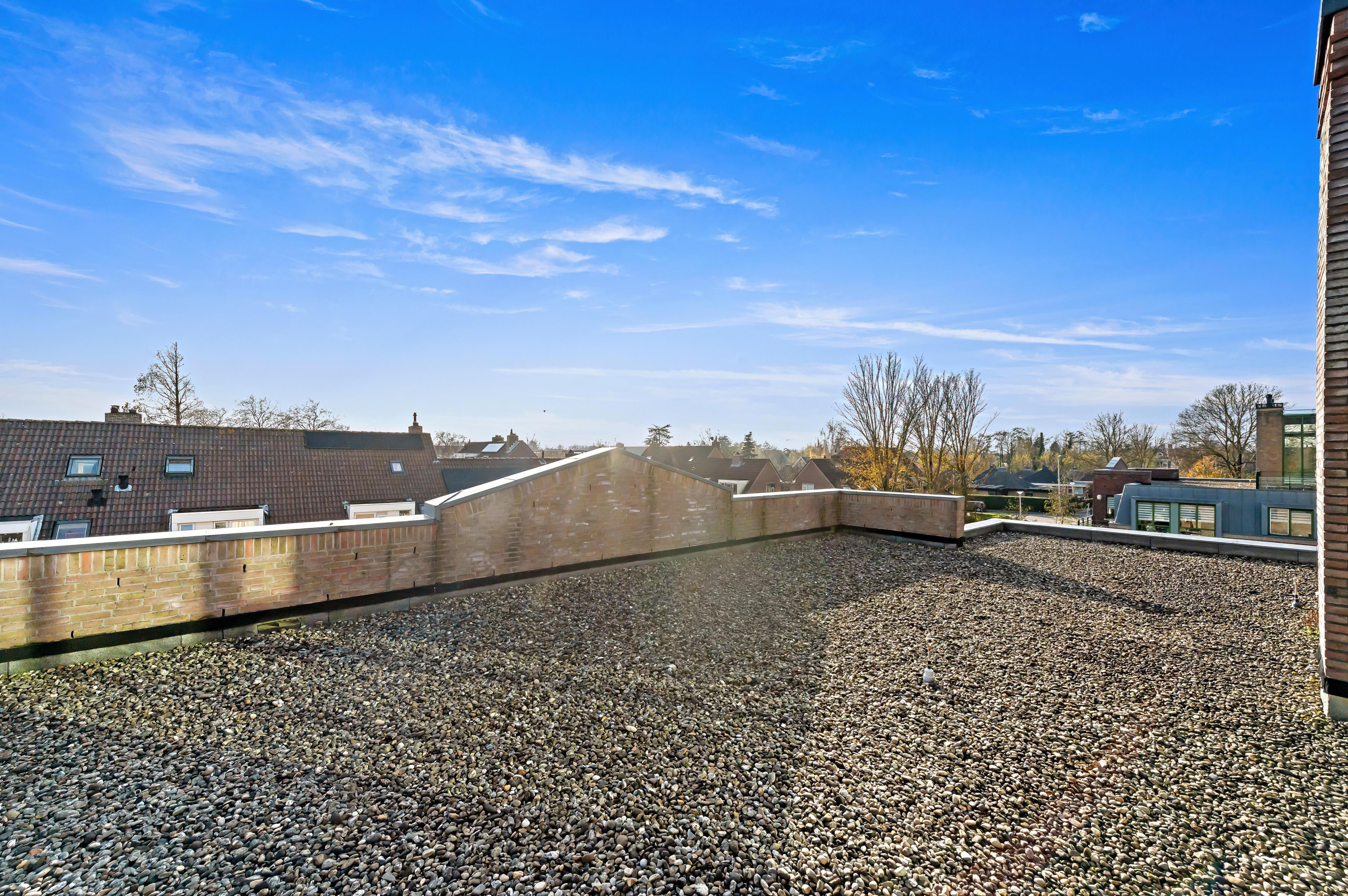 Aan de achterzijde van de overdekte galerij vindt u de entree van het appartement. Op de galerij kunt u in het vroege voorjaar al heerlijk van de eerste zonnestralen genieten. Via de voordeur komt u uit in de ruime hal met garderobe en toegang tot alle vertrekken. De meterkast is onder andere voorzien van 6 groepen en 2 aardlekschakelaars. Vervolgens komt u in de lichte woonkamer met videofoon-installatie, open keuken en eethoek aan de voorzijde. De landelijke keuken aan de voorzijde is geplaatst in rechte opstelling en voorzien van diverse inbouwapparatuur. De woonkamer grenst aan de keuken en beschikt over meerdere grote raampartijen met uitzicht op de kerk die zorgen voor een aangename hoeveelheid daglicht. Het balkon grenst aan de woonkamer; een fijne plek waar u gedurende de dag heerlijk kunt verblijven. De ruime slaapkamer is bereikbaar vanuit de woonkamer en de hal. In deze slaapkamer zijn meerdere raampartijen en een vaste kast aanwezig. De badkamer is ruim van formaat en biedt voldoende plek voor een wastafel, douche en toilet. Daarnaast is er nog een aparte toiletruimte aanwezig welke is voorzien van wandcloset en fonteintje. Ook is er in het appartement nog een aparte bergruimte aanwezig met opstelplaats voor de wasmachine, wasdroger, mechanische ventilatie en C.V. ketel. Via een loopdeur komt u uit op het ruime, zonnige dakterras. Het dakterras is gelegen op het zuiden waardoor u hier de hele dag van de zon kunt genieten.