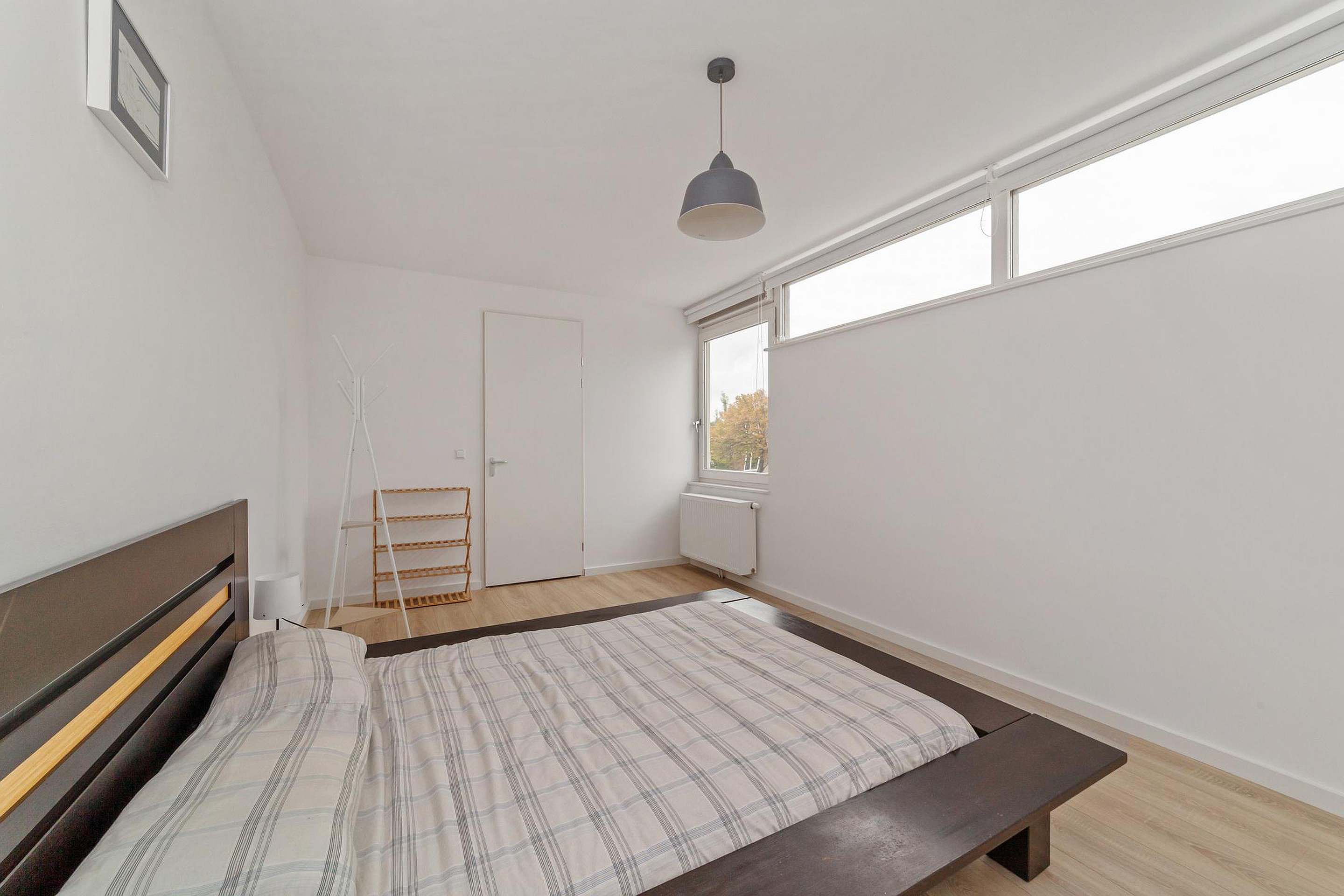 Eén slaapkamer bevindt zich aan de zijkant van de woning en is via de hal bereikbaar. De andere slaapkamer is aan de voorzijde van de woning te bereiken via de woonkamer.