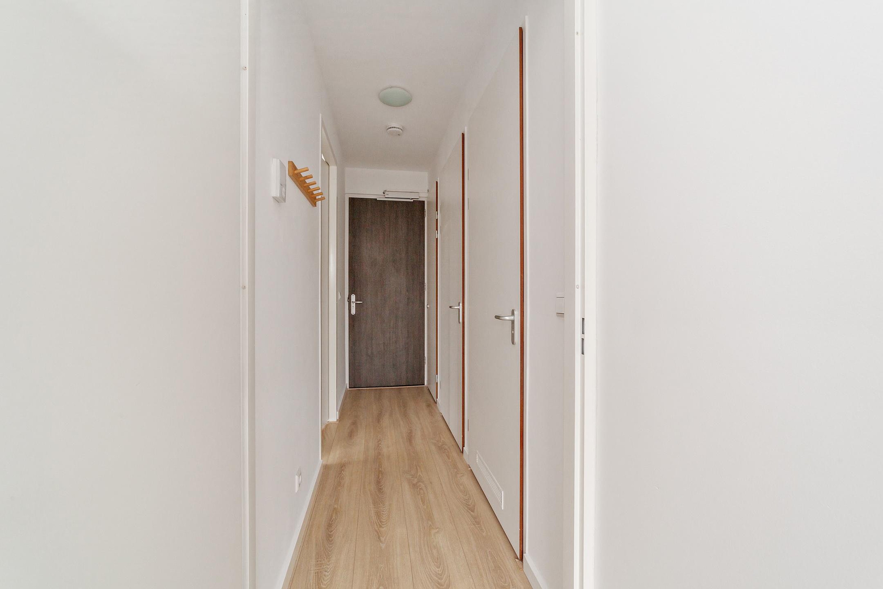 Afgesloten entree met intercom, postkasten en toegang tot bergingen. Trap naar eerste verdieping.