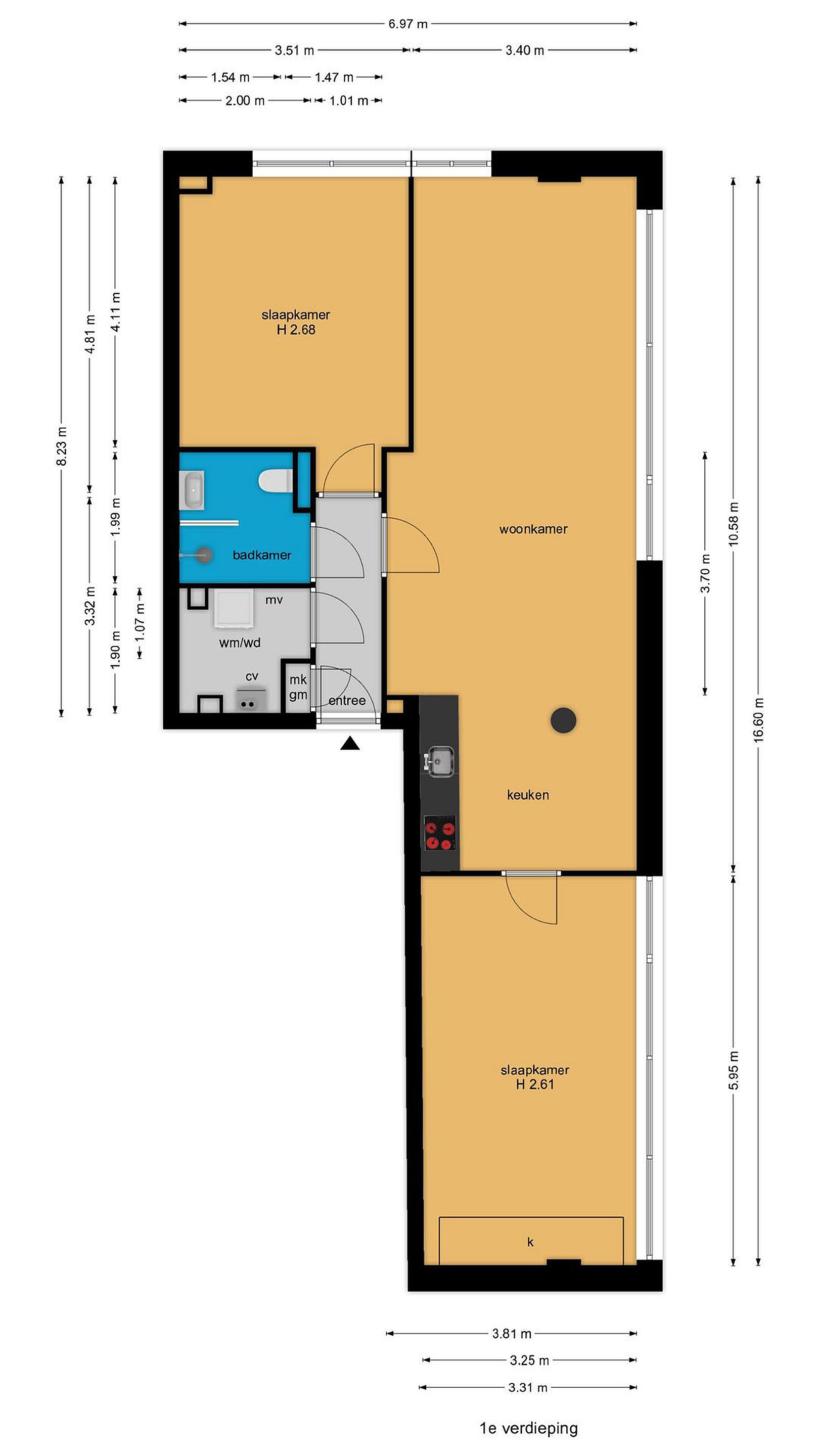 Voor de exacte indeling en indicatieve maatvoering verwijzen wij je graag door naar de plattegrond.