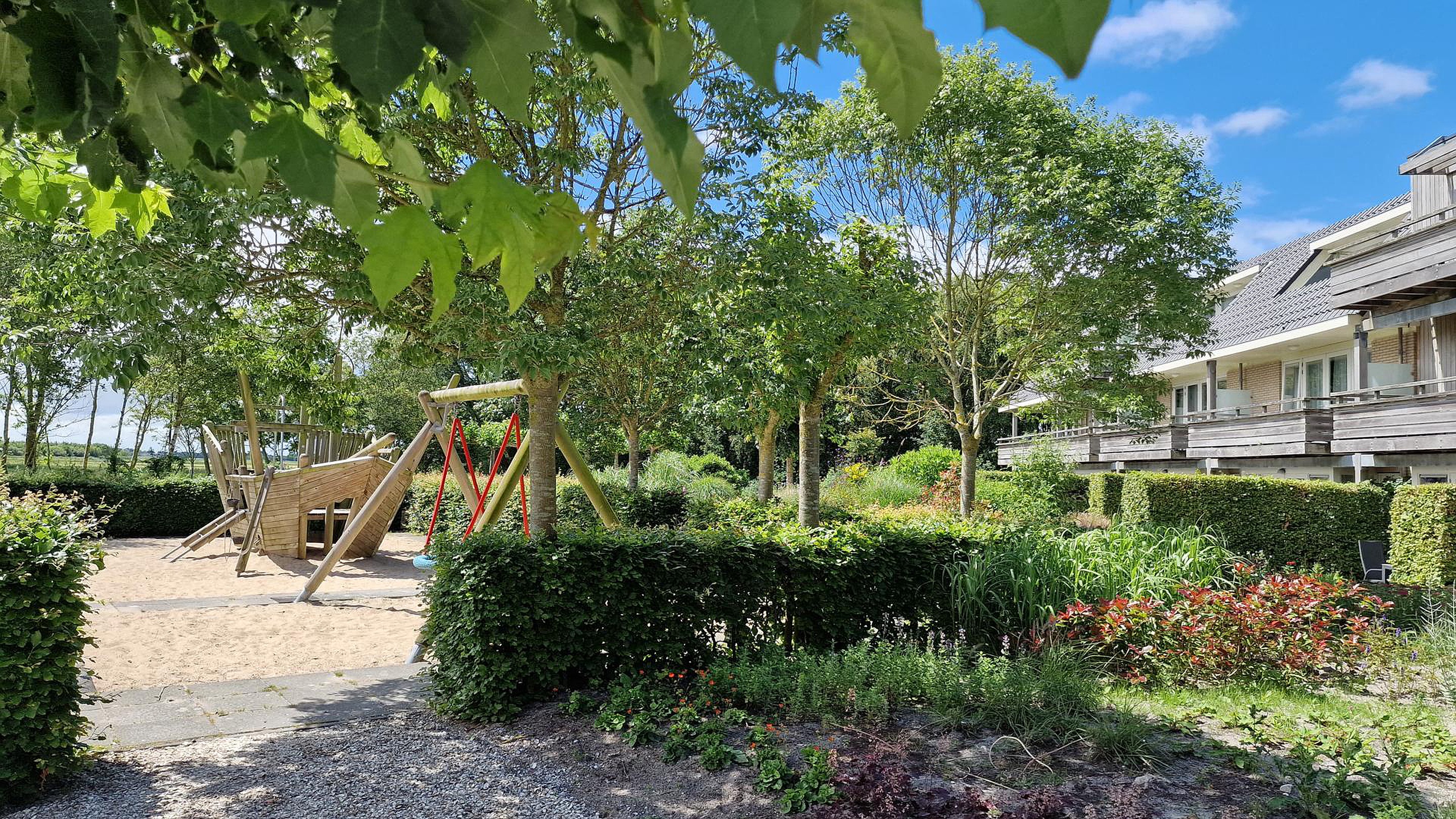 Ruime schitterend aangelegde tuin rondom het complex aanwezig met verschillende zitjes en speelfaciliteiten voor kinderen.