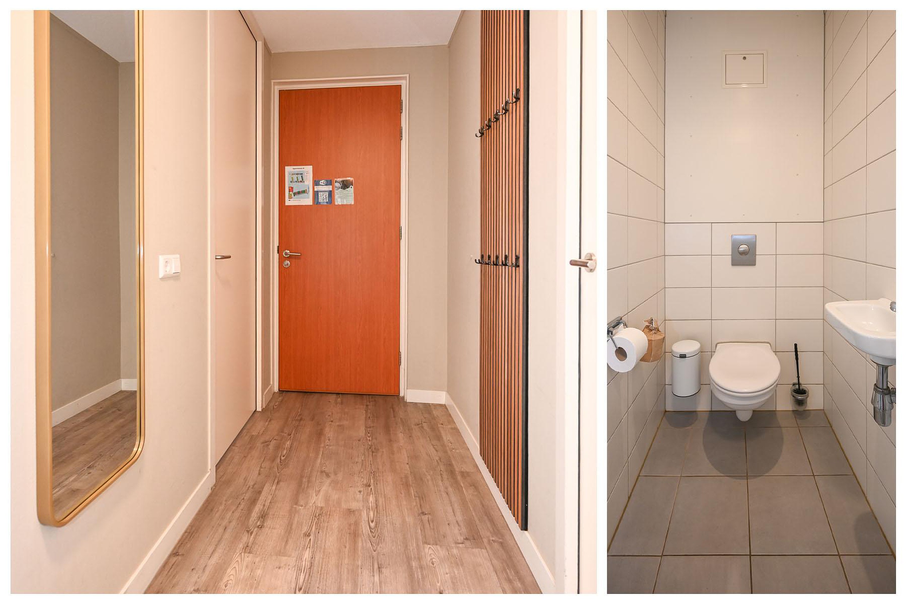 Via de entree betreedt u het appartement in de centrale hal. Deze hal biedt toegang tot de drie slaapkamers, toilet, badkamer en de woonkamer. De woonkamer beschikt over een open keuken en entree naar het inpandige balkon.