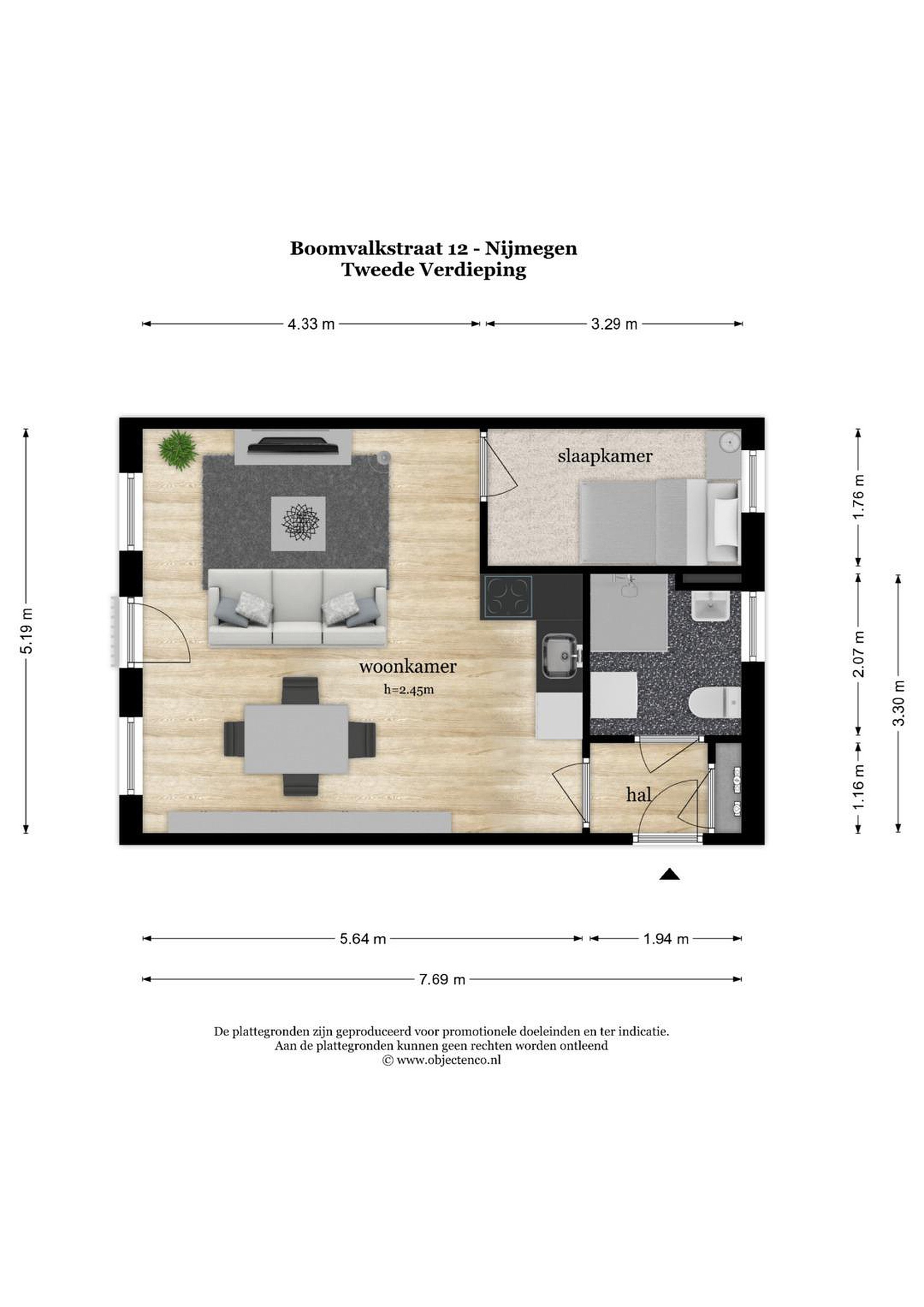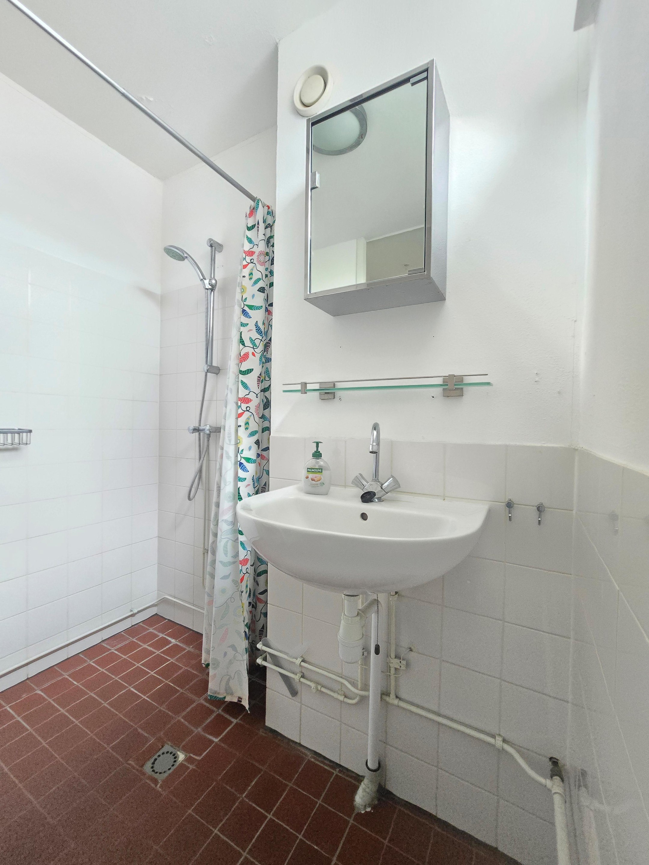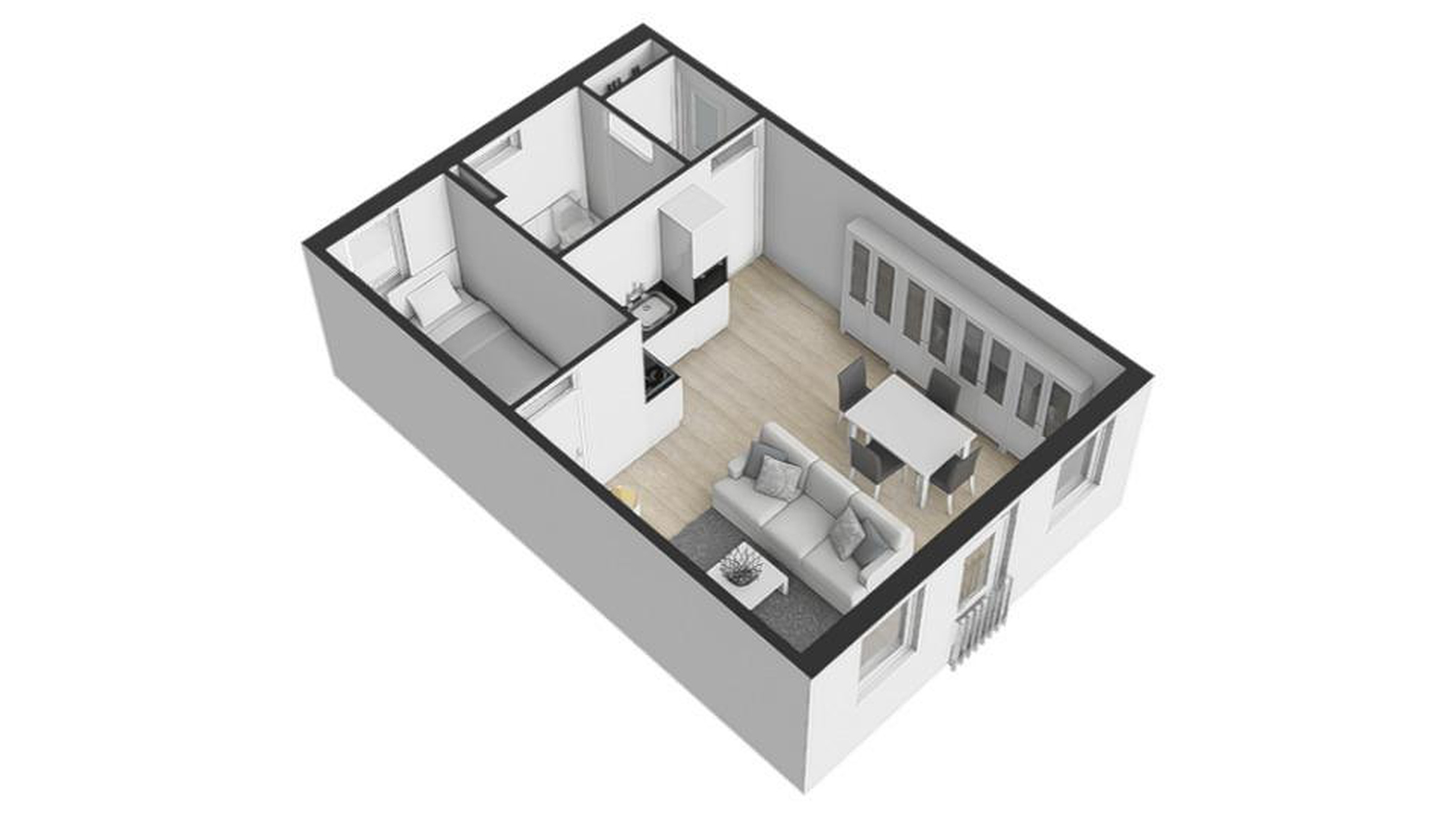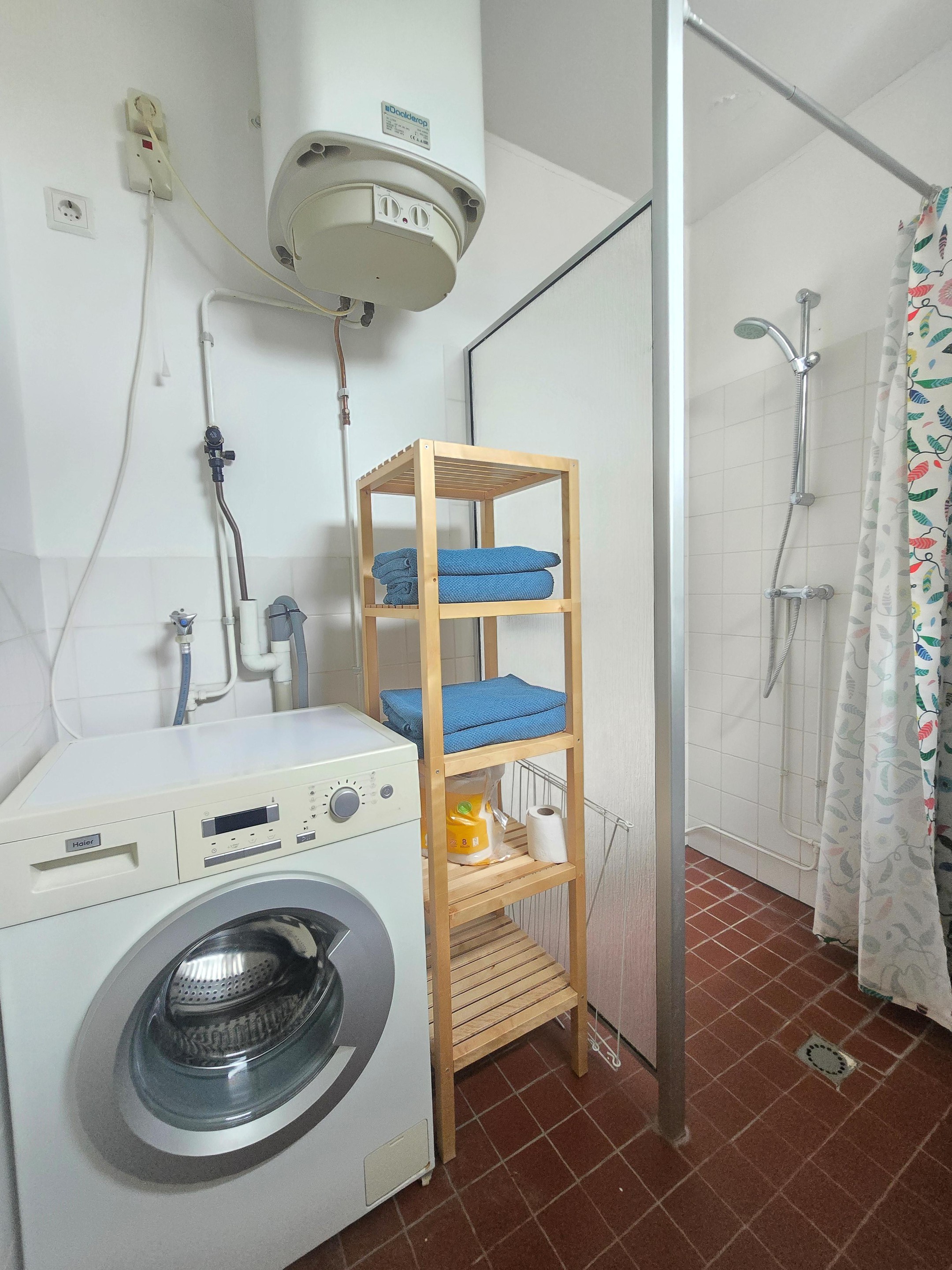 De woning is efficiënt opgezet, met een slaapkamer die aansluit op de woonkamer – perfect als werkplek of om gewoon lekker uit te slapen. De moderne badkamer ligt aan de hal en biedt een douche, wastafel en aansluiting voor de wasmachine. Verwarming verloopt via blokverwarming, warm water via een geiser.