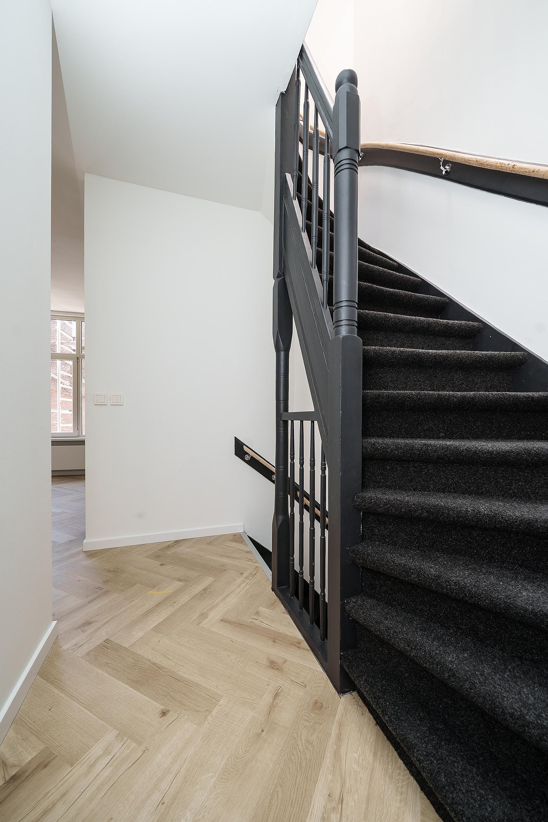 Op de bovenste woonlaag bevinden zich drie slaapkamers, de badkamer, het aparte toilet en een kast met de CV-ketel. Ook op deze woonlaag zijn alle vloeren voorzien van een moderne visgraatvloer in eikenhoutlook en zijn de wanden en plafonds strak afgewerkt.
