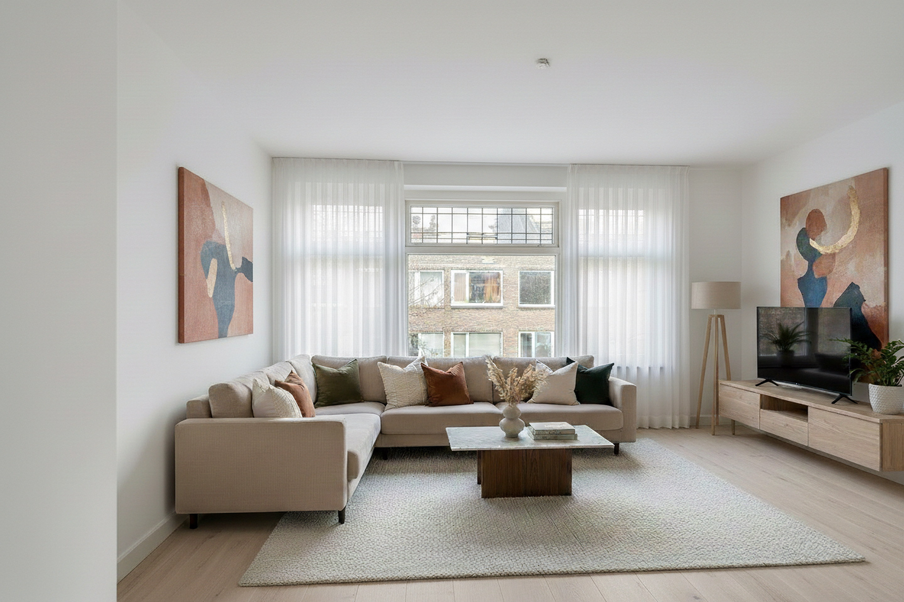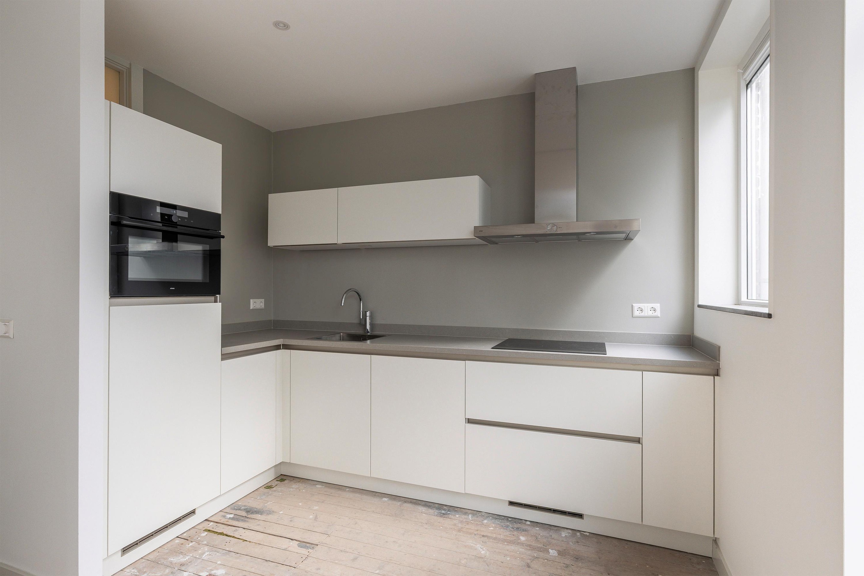 - Open Bruynzeel keuken (2025) in L-opstelling met keramisch blad; voorzien van Atag inbouwapparatuur, zoals inductiekookplaat, afzuigschouw, combi-oven, koelkast met vriesvak en vaatwasser.