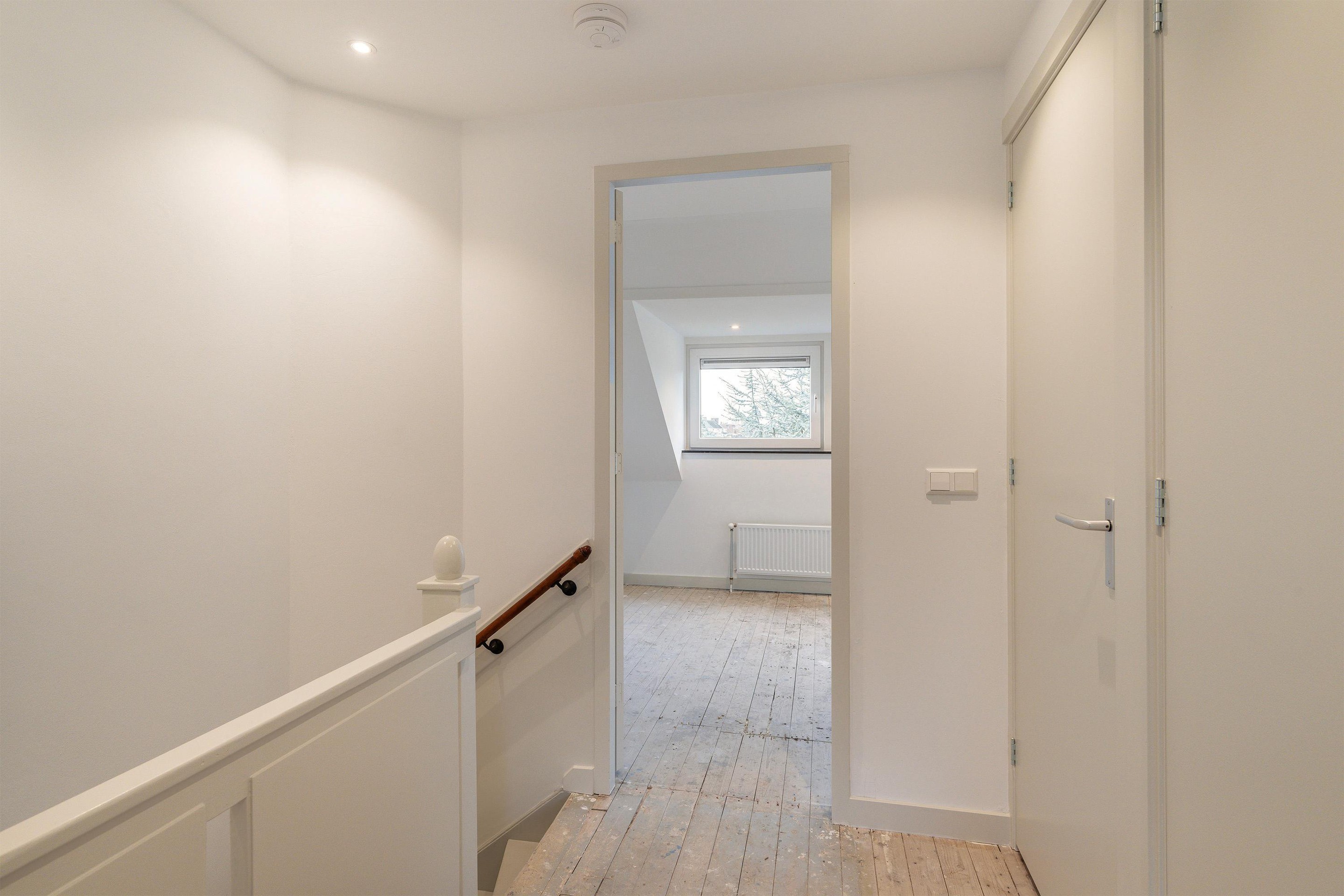 - Ruime overloop met wasruimte en de badkamer.