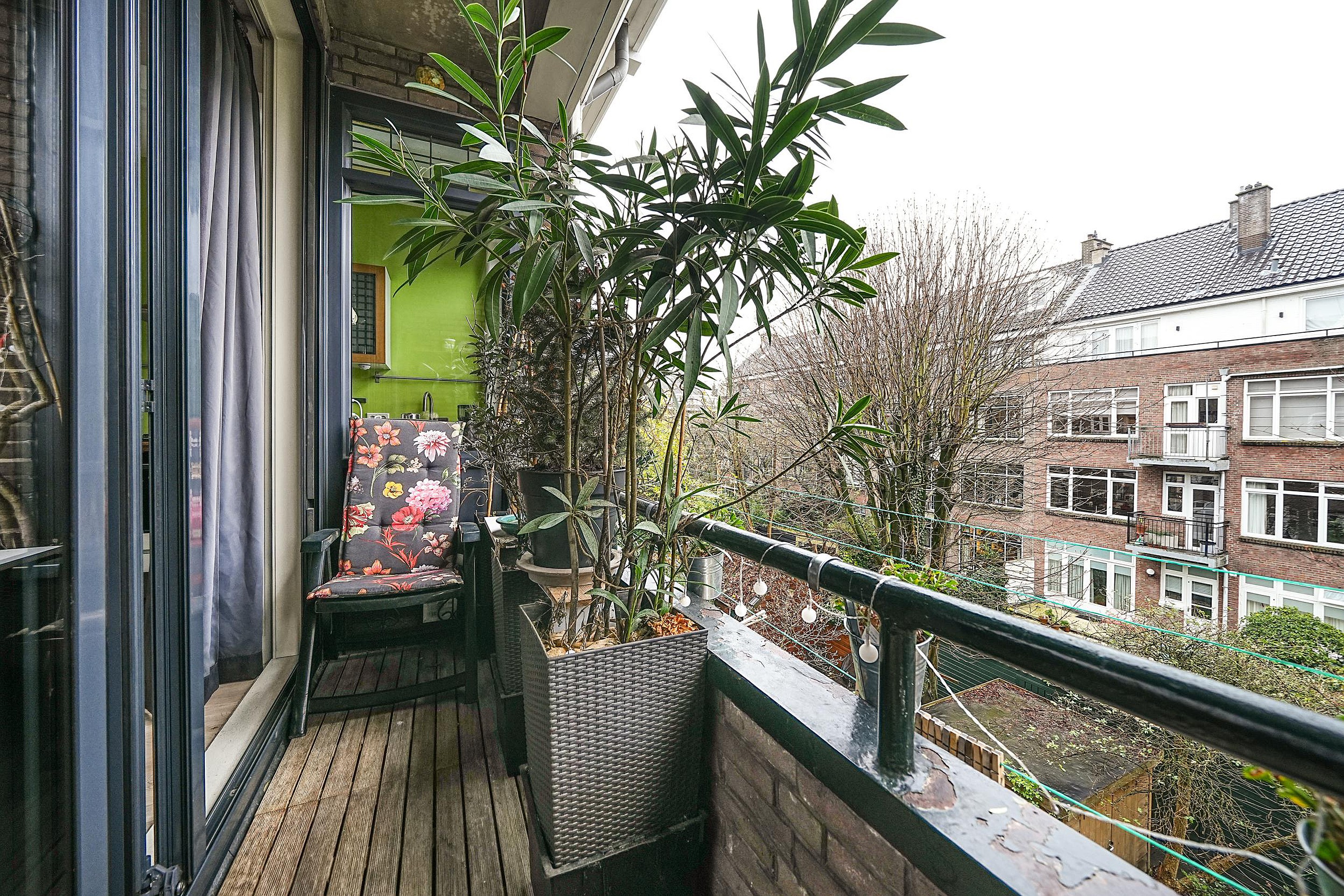 De achterpui is voorzien van een harmonicadeur die volledig geopend kan worden. Hierdoor haal je buiten naar binnen en loop je zo door naar het balkon. Het balkon is gelegen op het zuidwesten en heeft daarmee een zeer zonnige ligging.