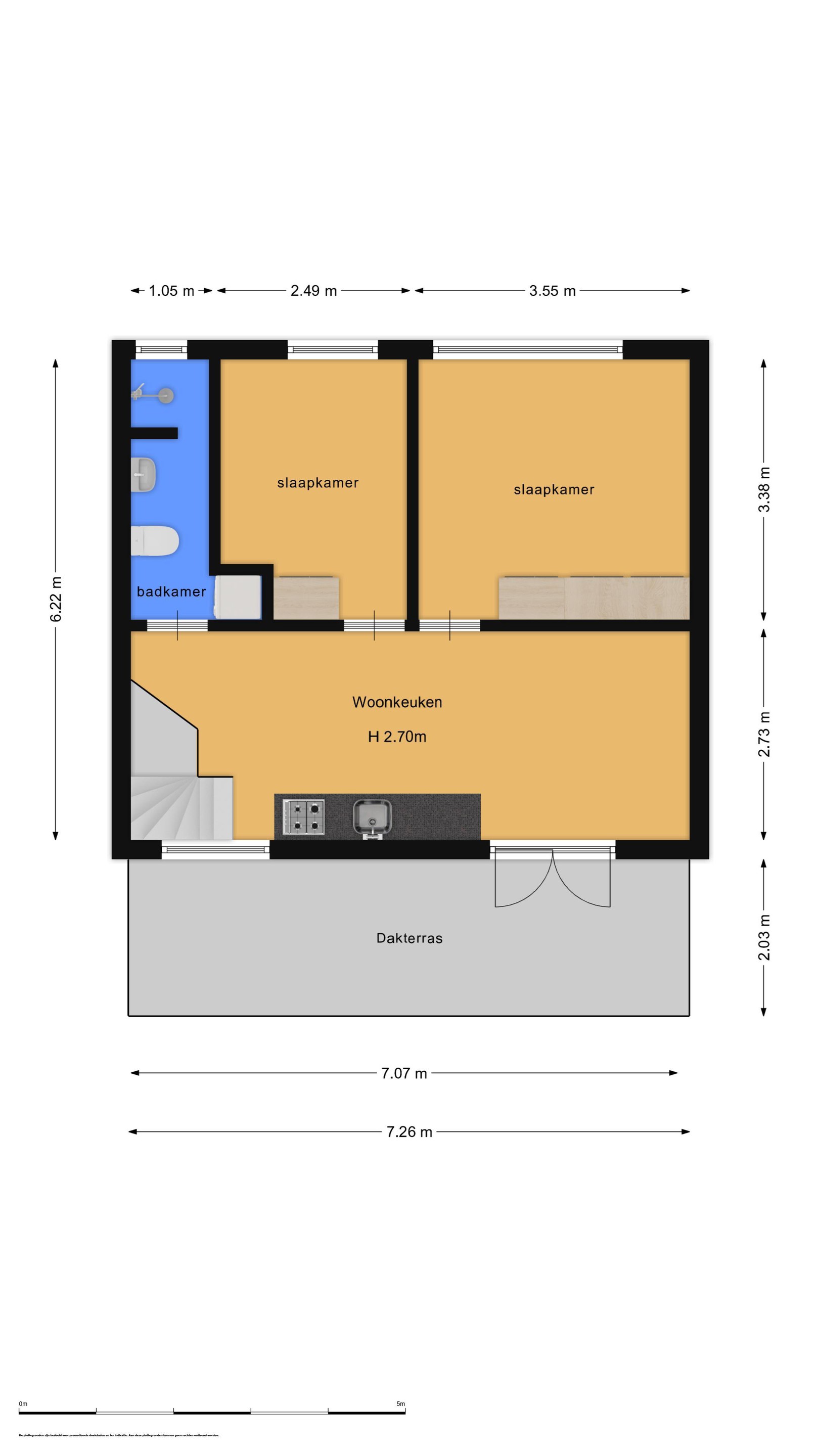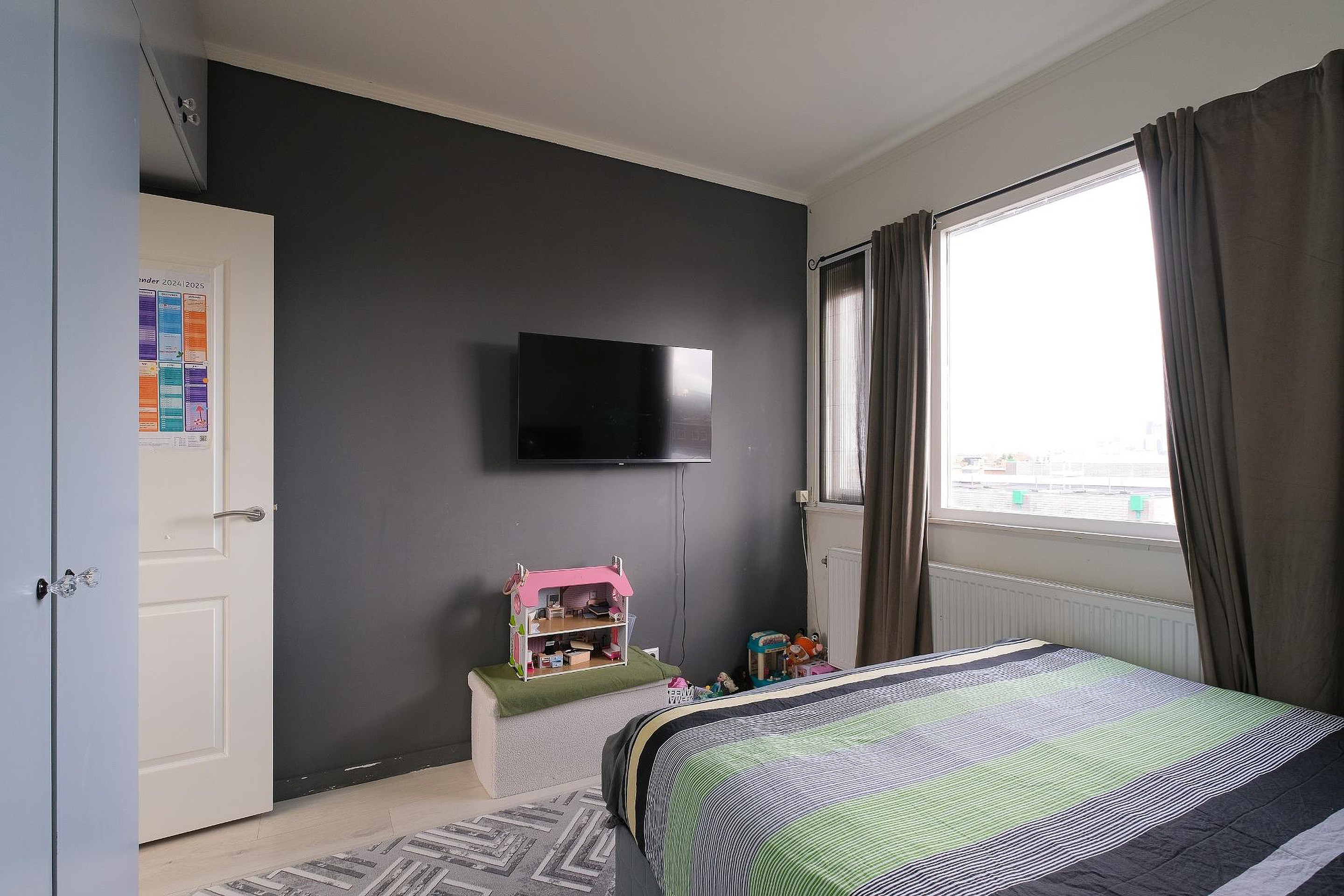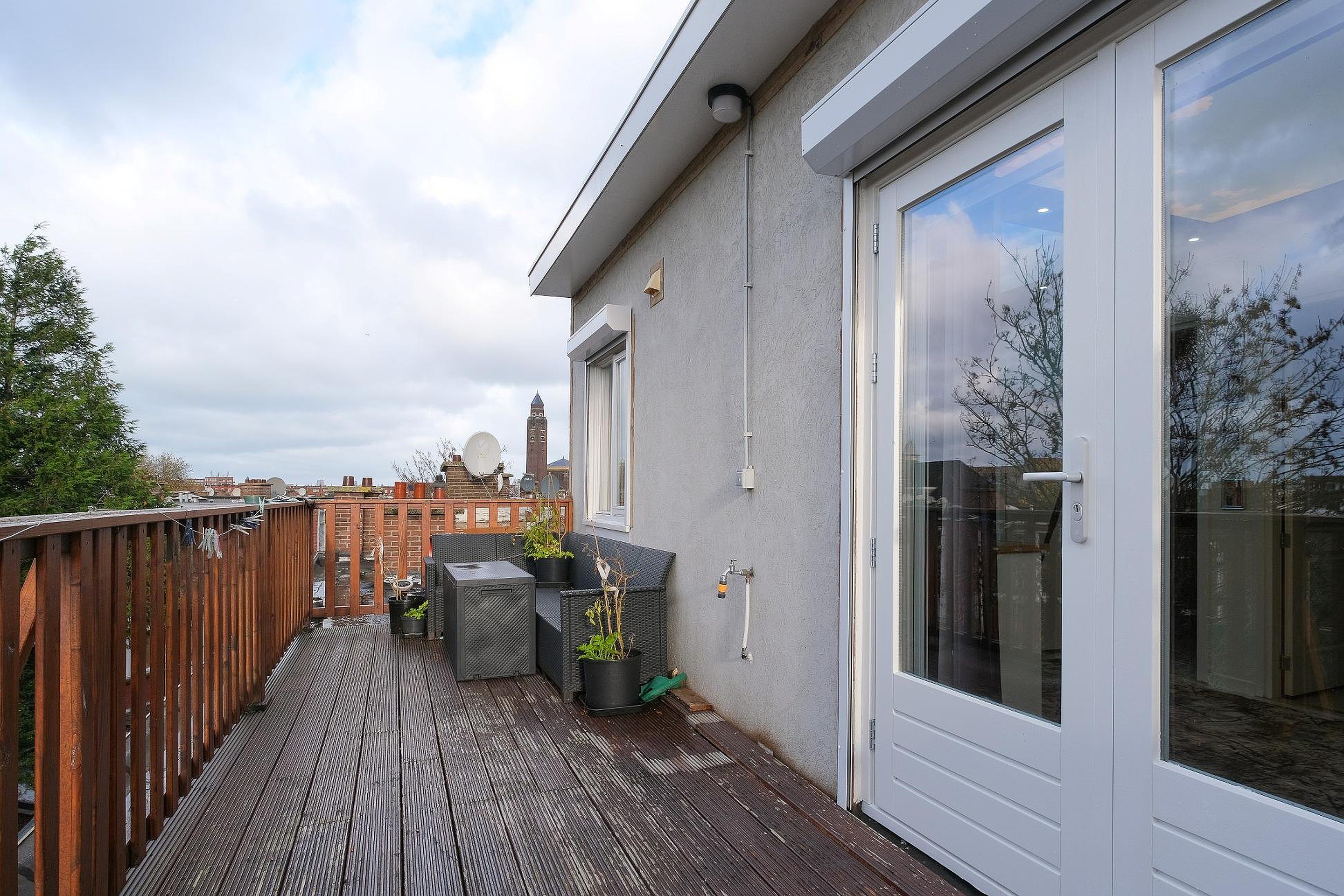 Derde verdieping beschikt over naast de tweede woonkamer (met open keuken) nog twee slaapkamer (met luxe inbouwkasten), badmaker met toilet en een grote zonnige dakterras.