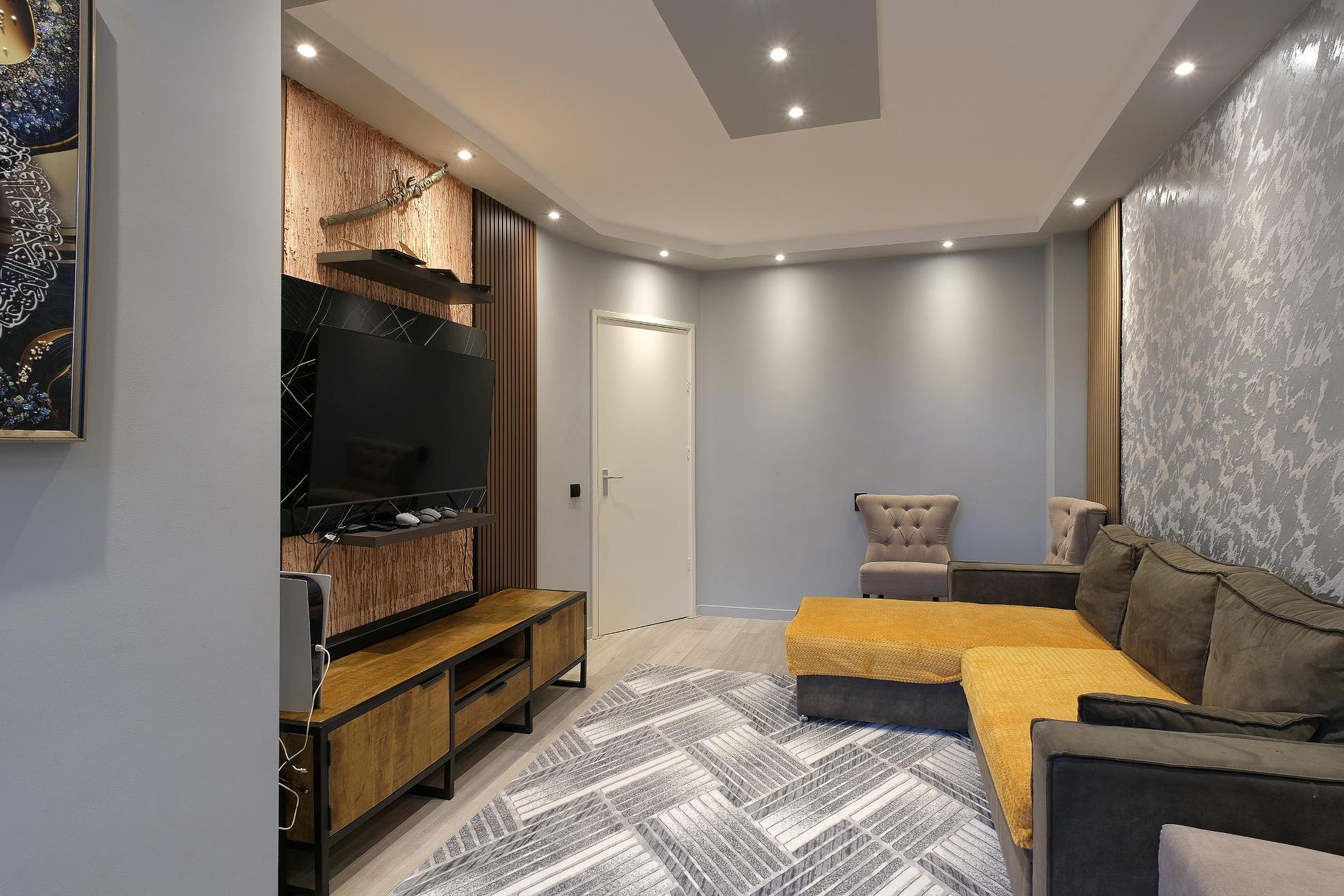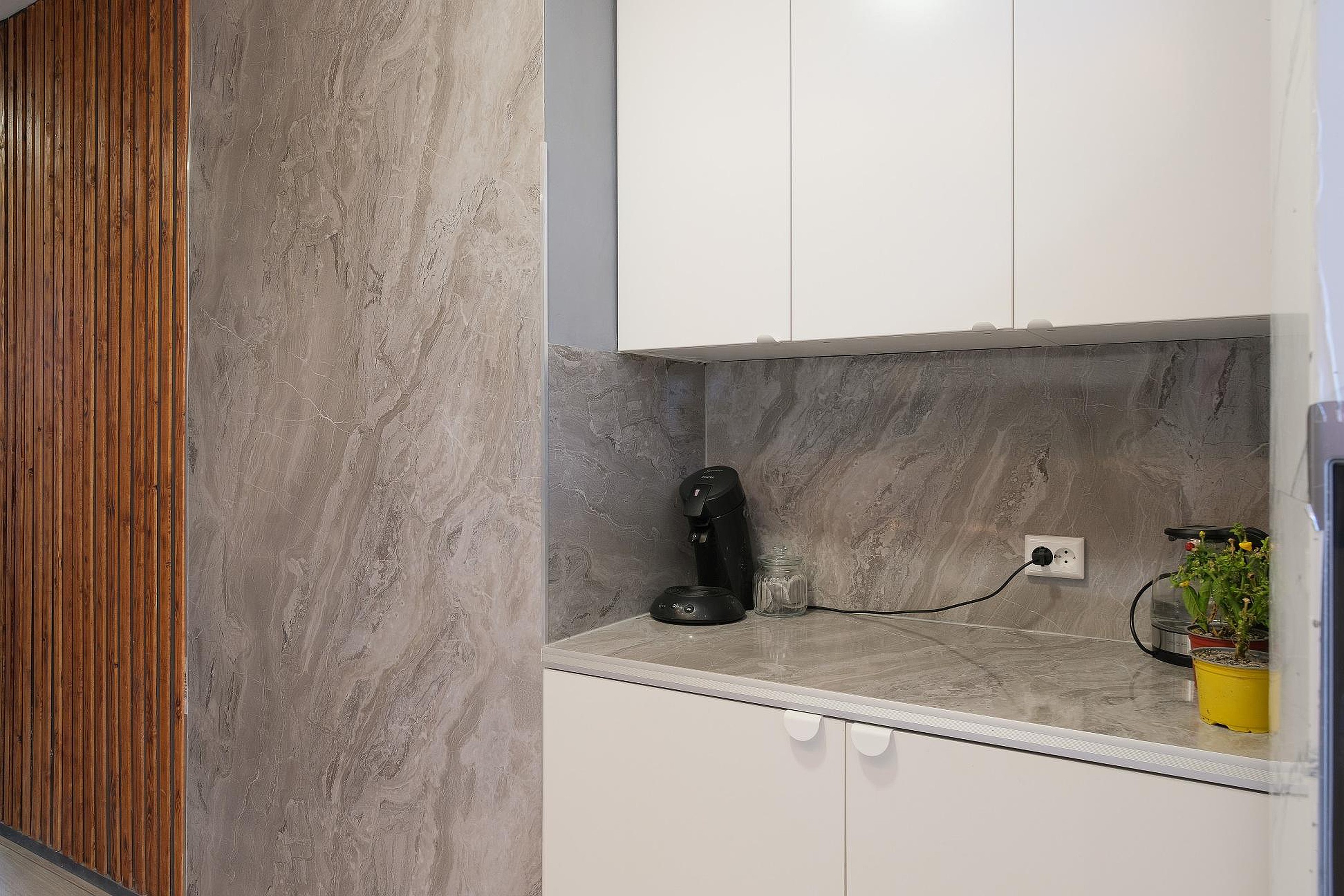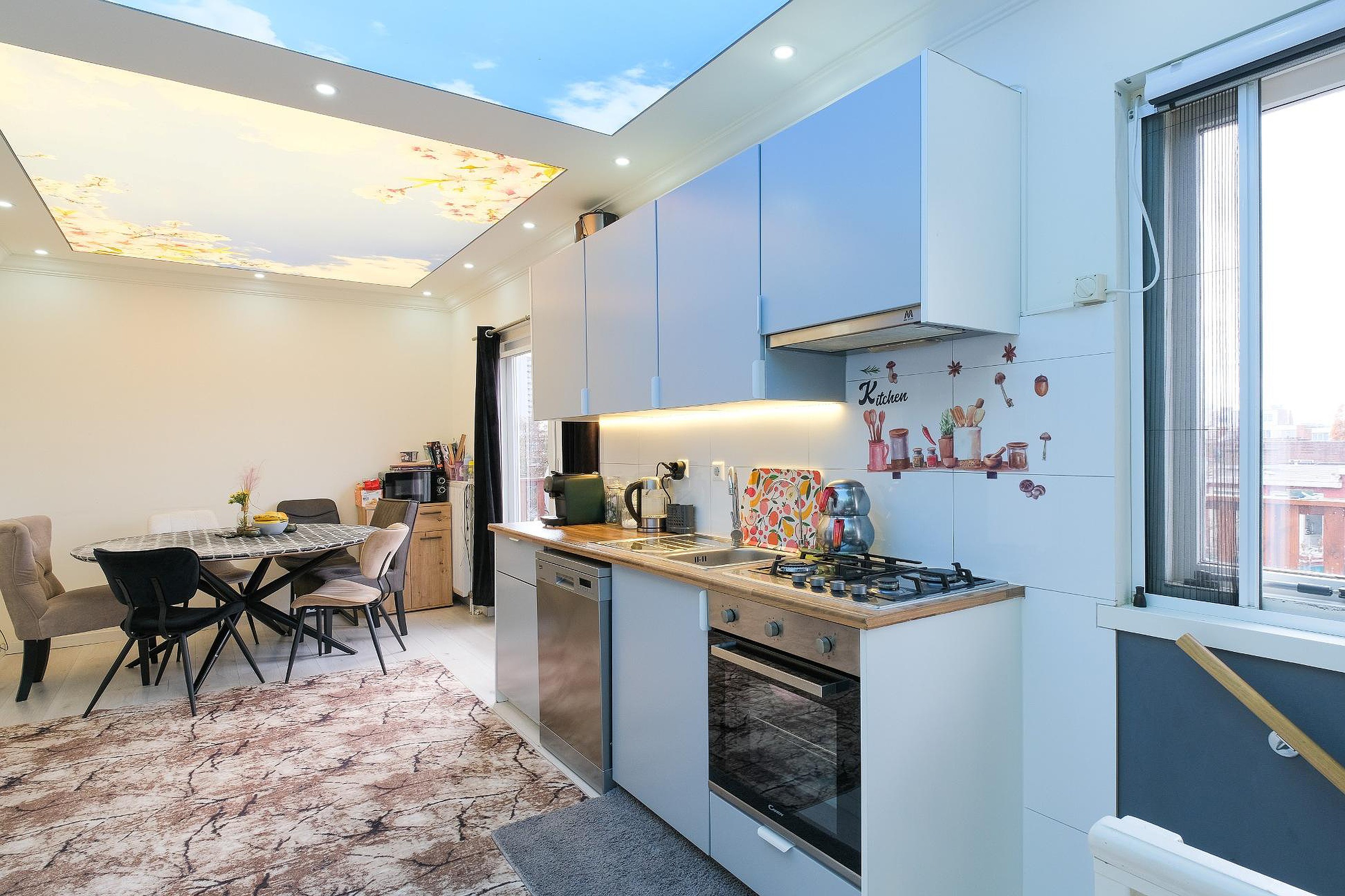 De woonkeuken van derde verdieping is prachtig afgewerkt met een wolken plafond.