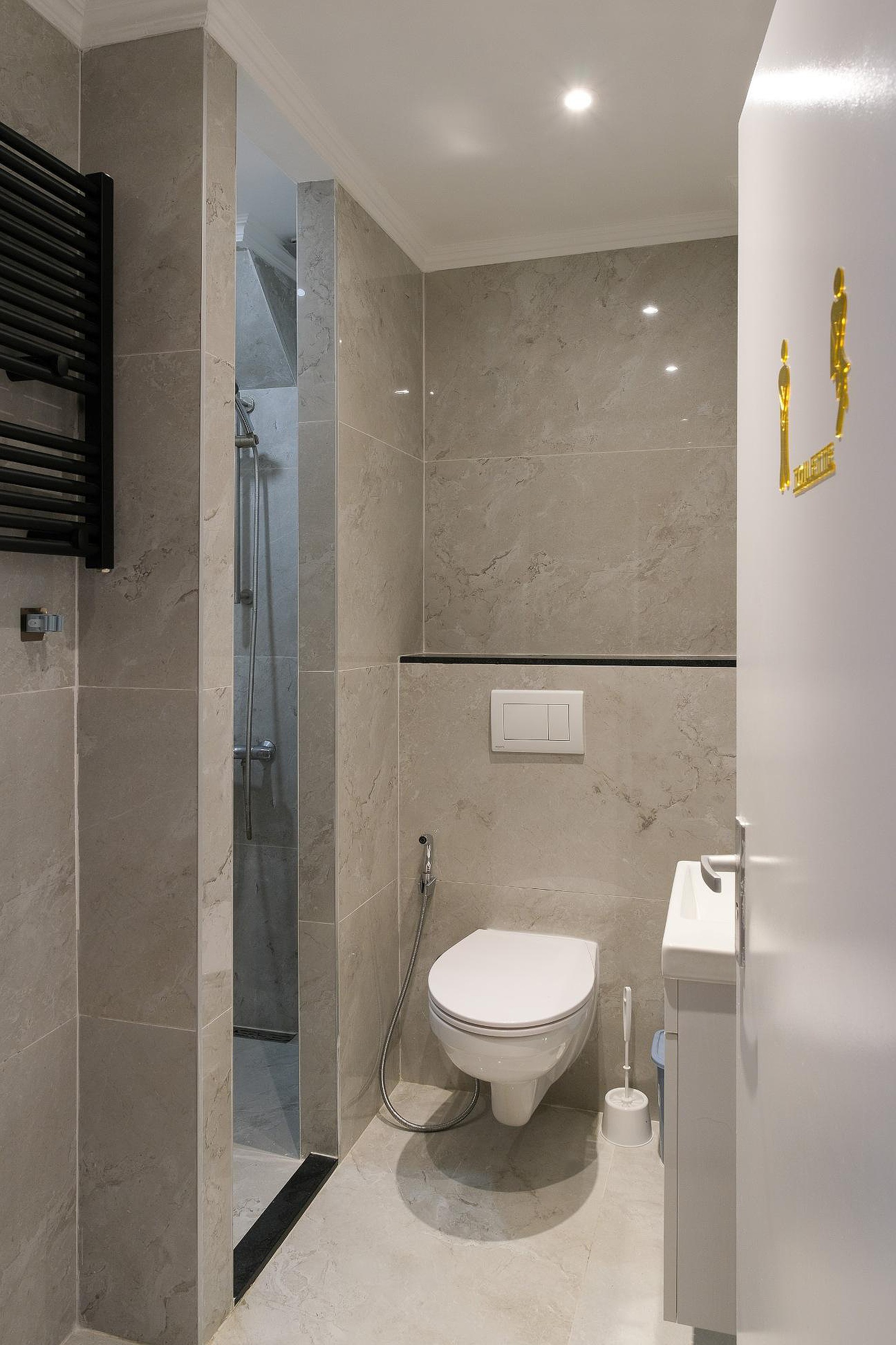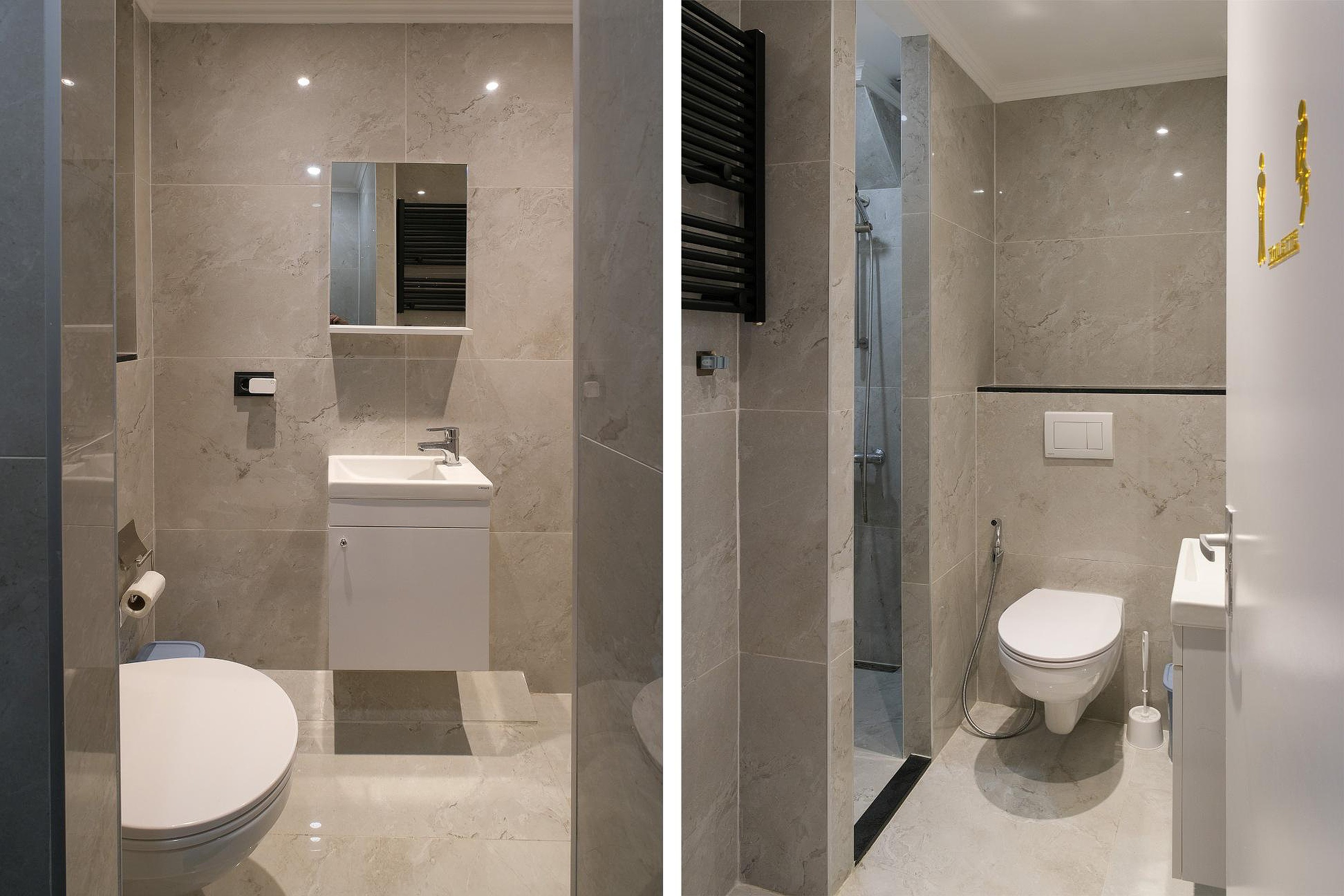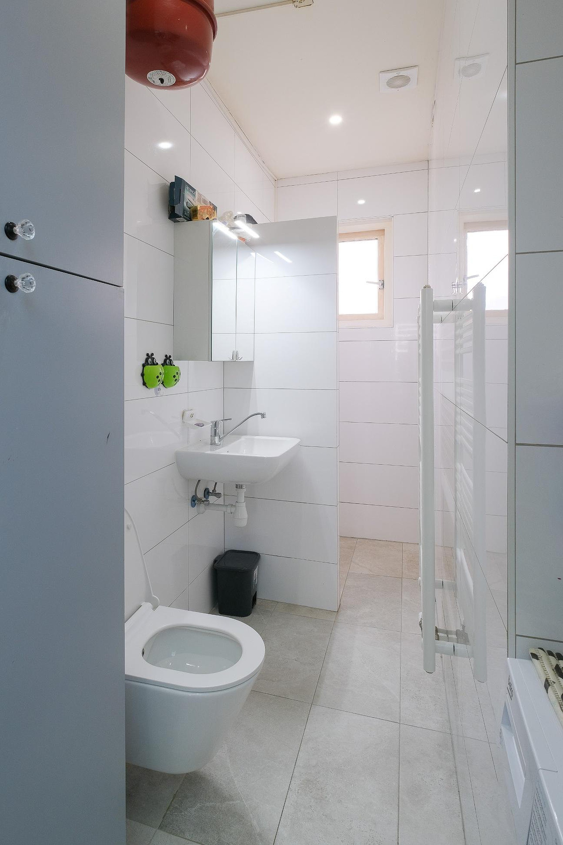 Badkamer voorzien van toilet, wastafel en bad/douche.