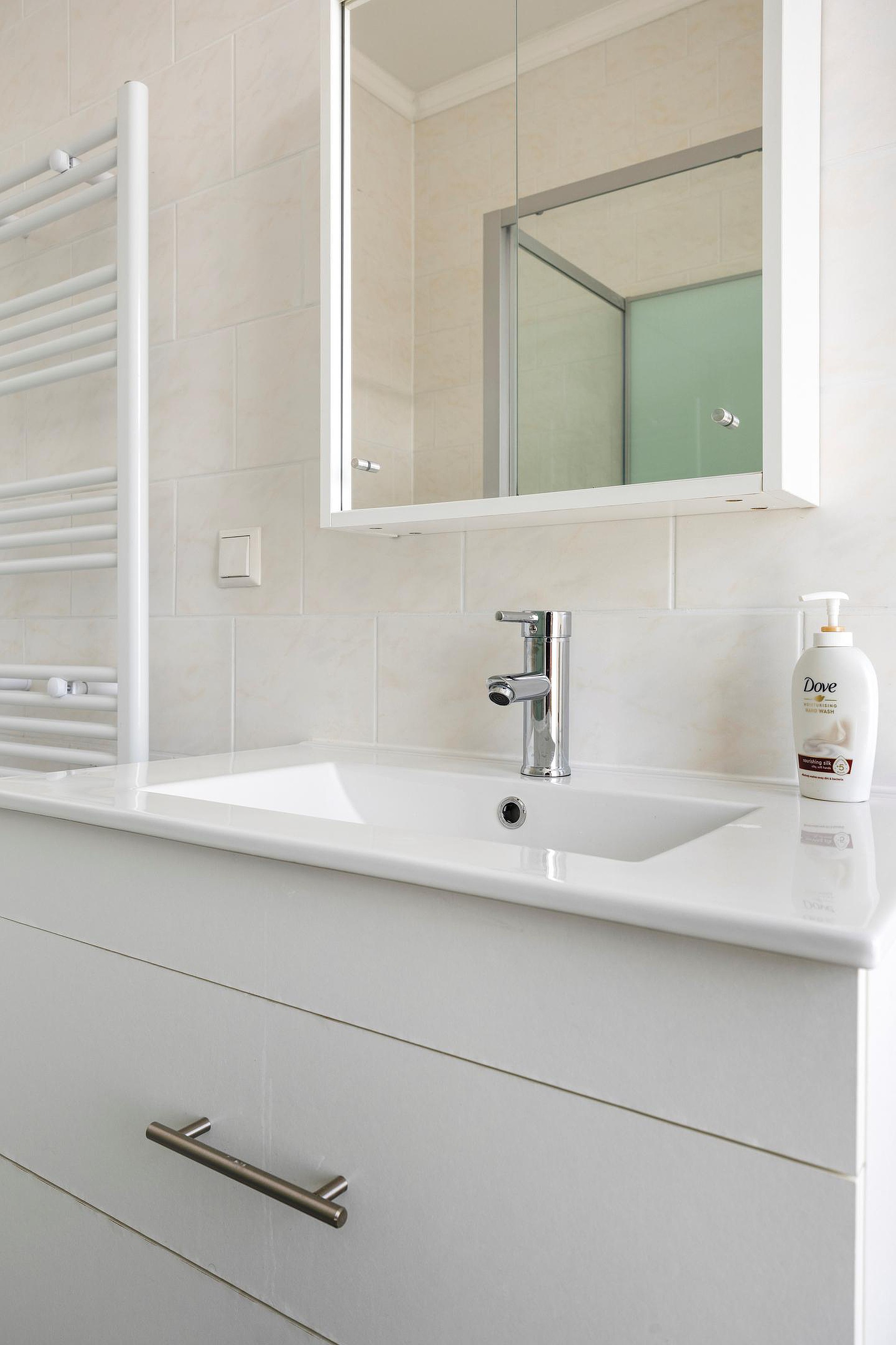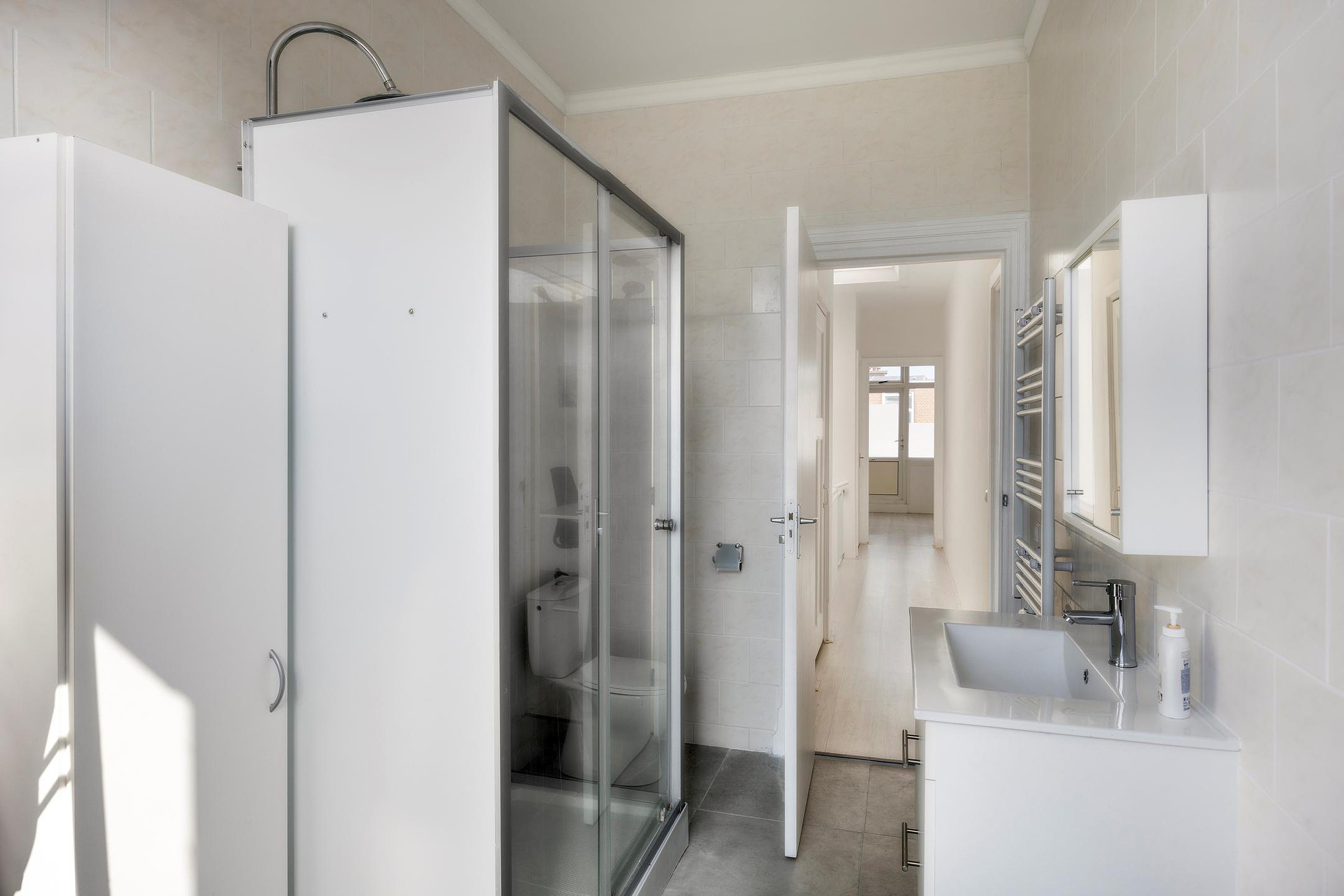 De badkamer is een echte eyecatcher: volledig vernieuwd, modern afgewerkt en voorzien van zowel een heerlijke douche als een comfortabel ligbad. Een plek waar je iedere dag tot rust komt.