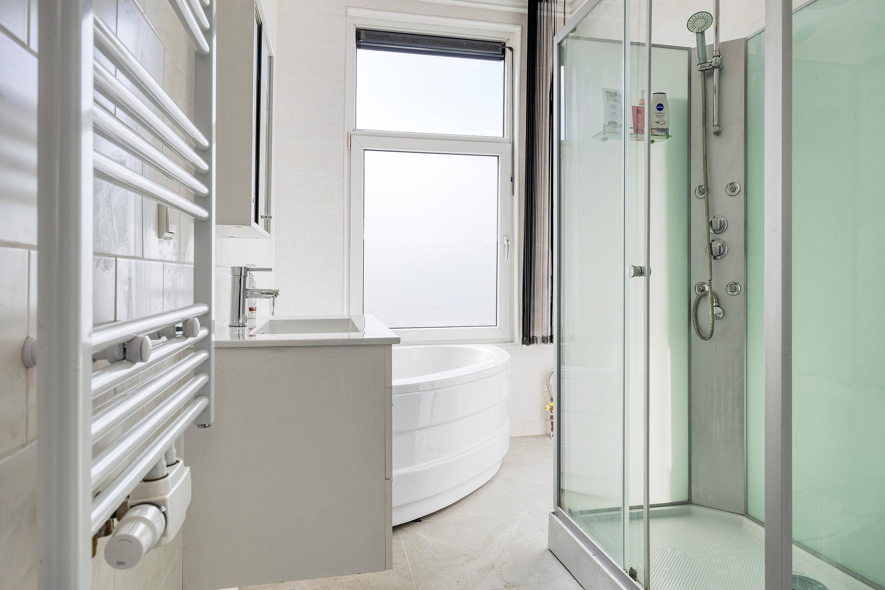 - Luxe badkamer met douche én ligbad en toilet