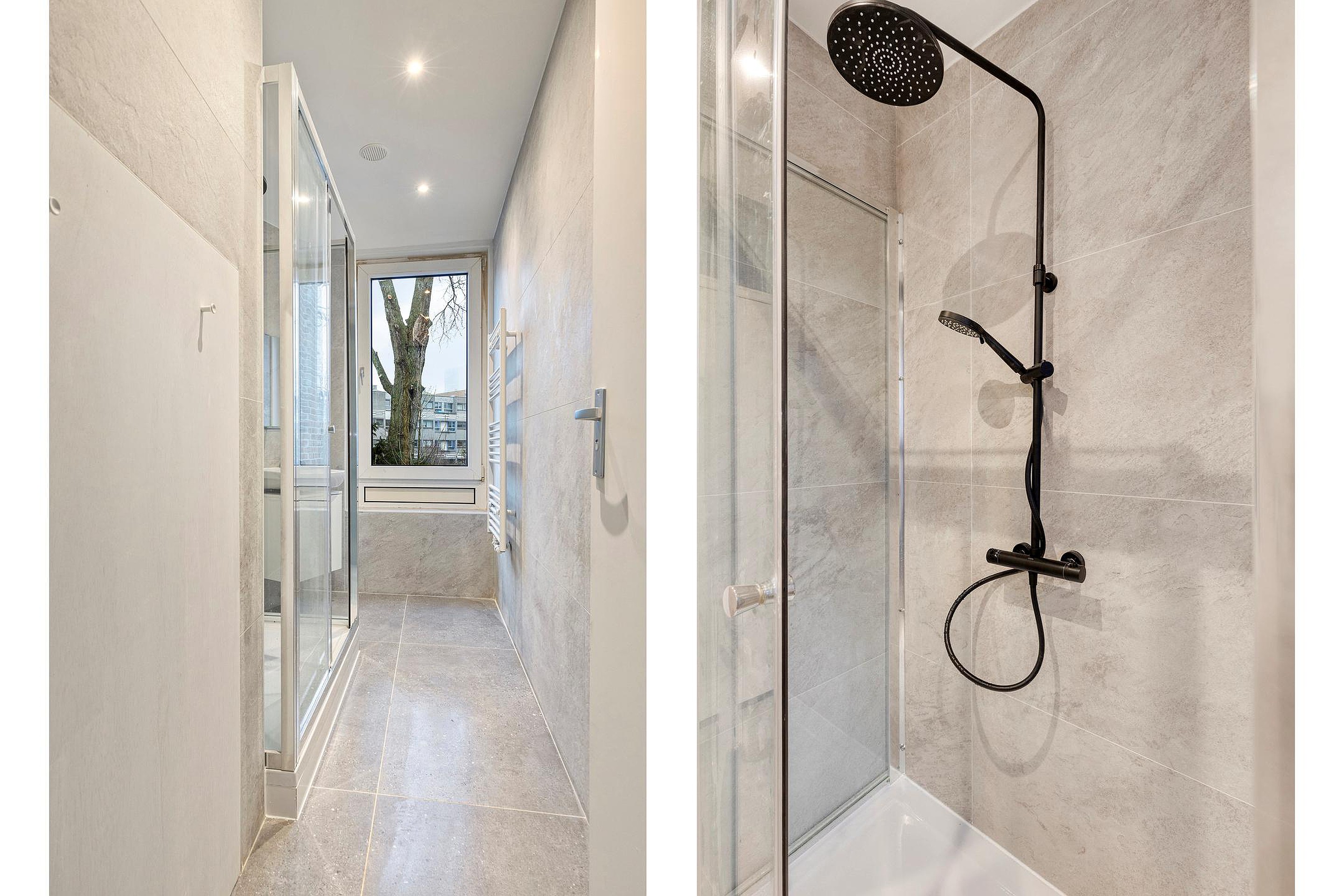 De doorzonwoonkamer met open keuken vormt het hart van het appartement. Dankzij de grote raampartijen aan zowel de voor- als achterzijde geniet je hier van een fijne lichtinval en een ruimtelijk gevoel. De open keuken is praktisch opgesteld en sluit naadloos aan op de woonkamer, waardoor een comfortabele leefruimte ontstaat waar koken en ontspannen samenkomen.