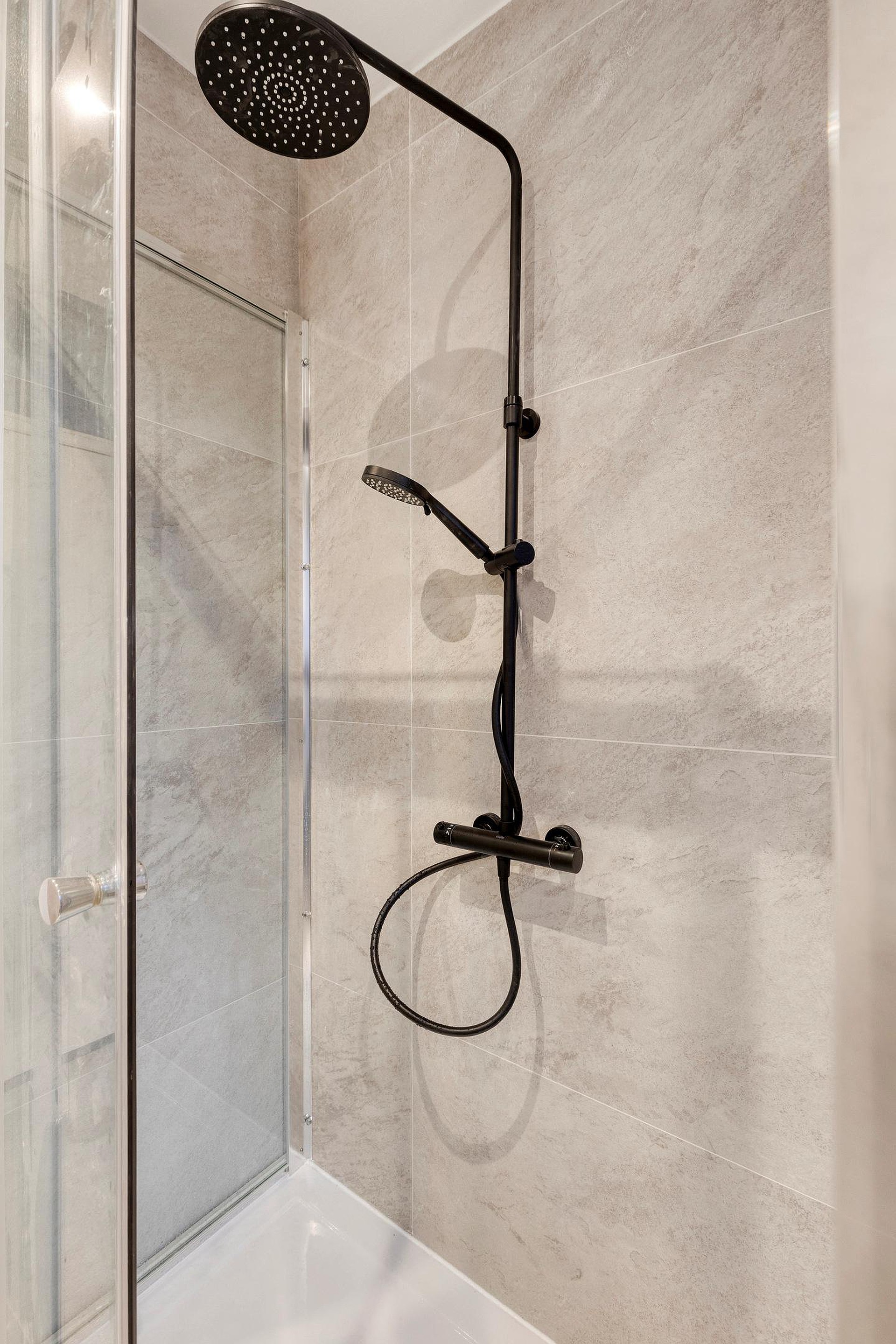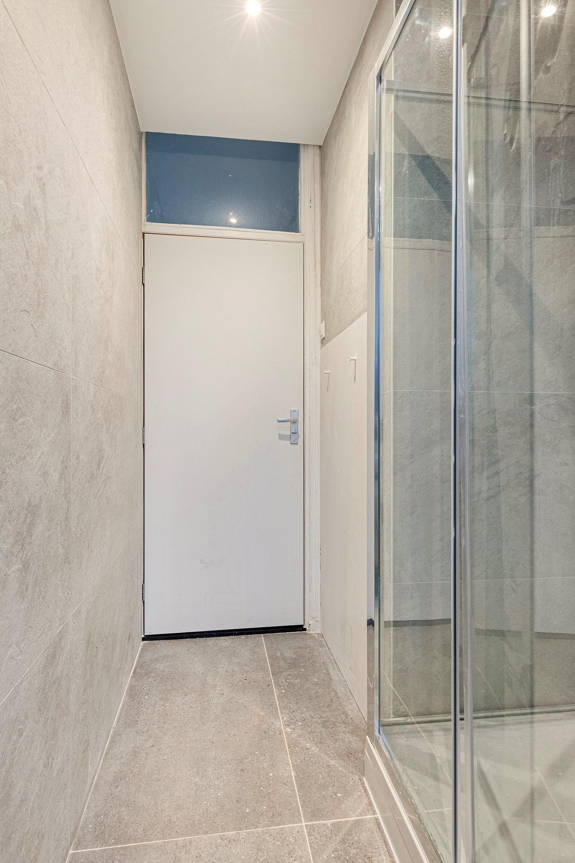 Centraal in de woning ligt de ruime badkamer, uitgevoerd met een inloopdouche en wastafelmeubel. Het separate toilet is vanuit de gang bereikbaar.