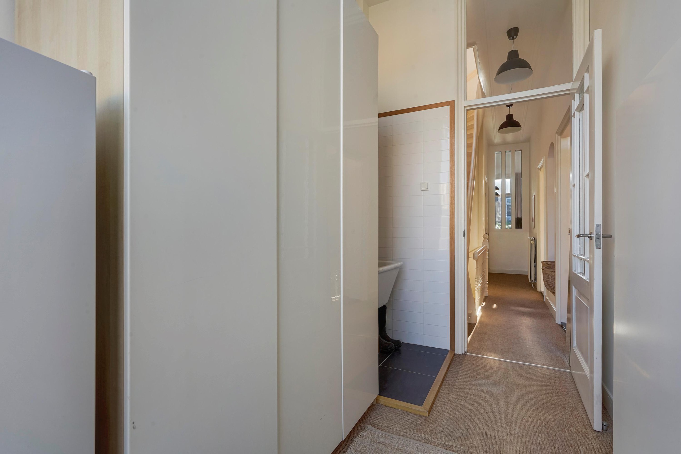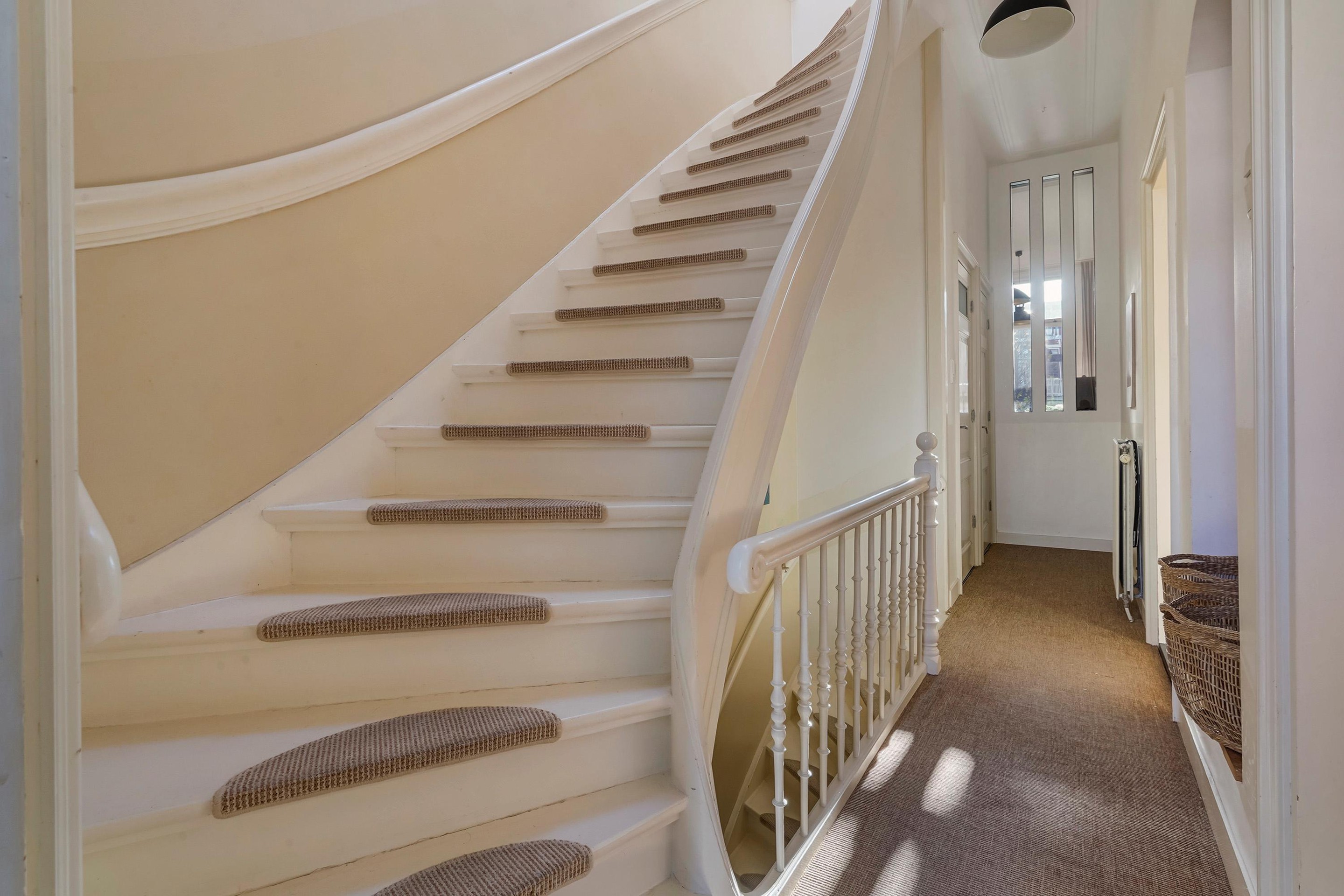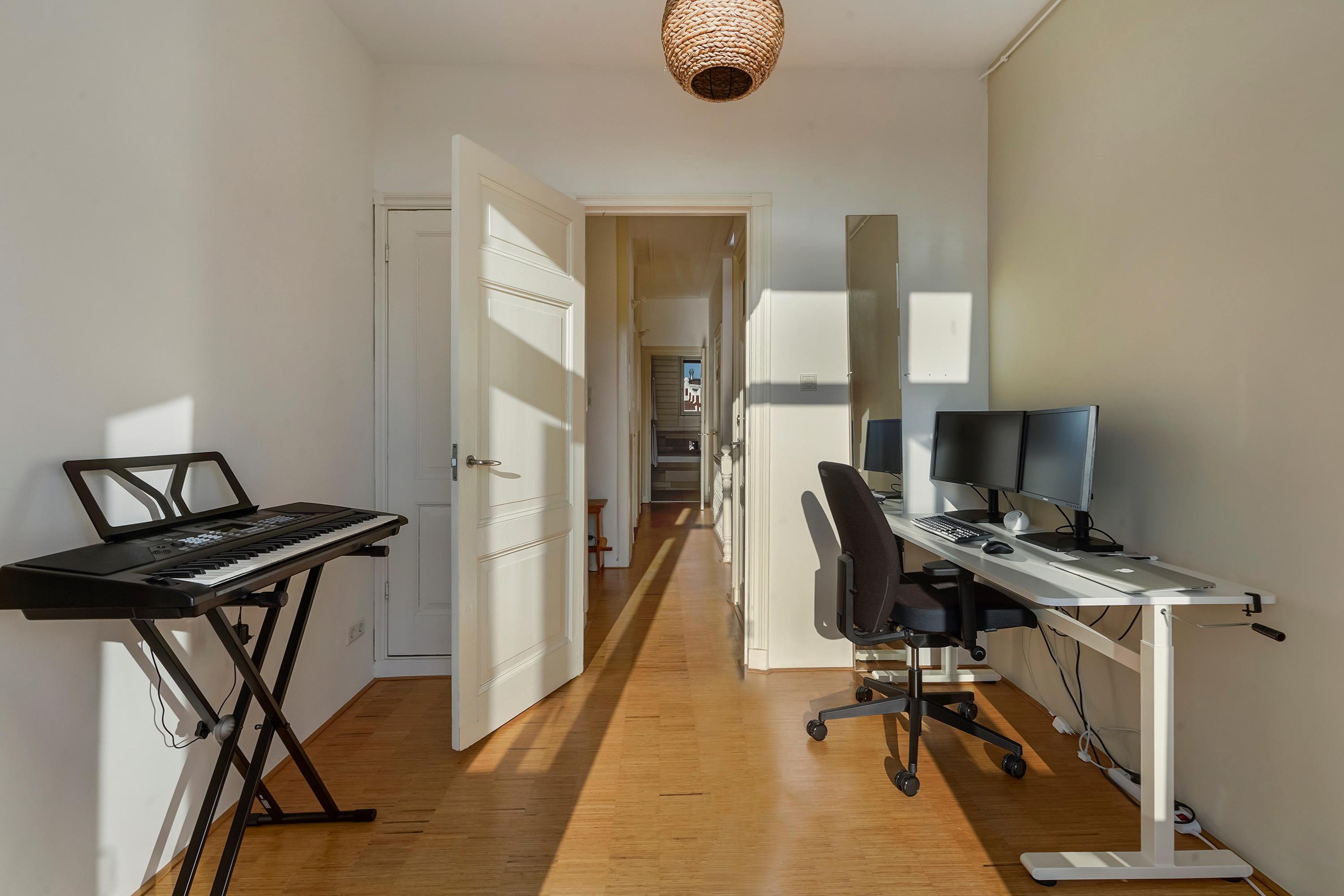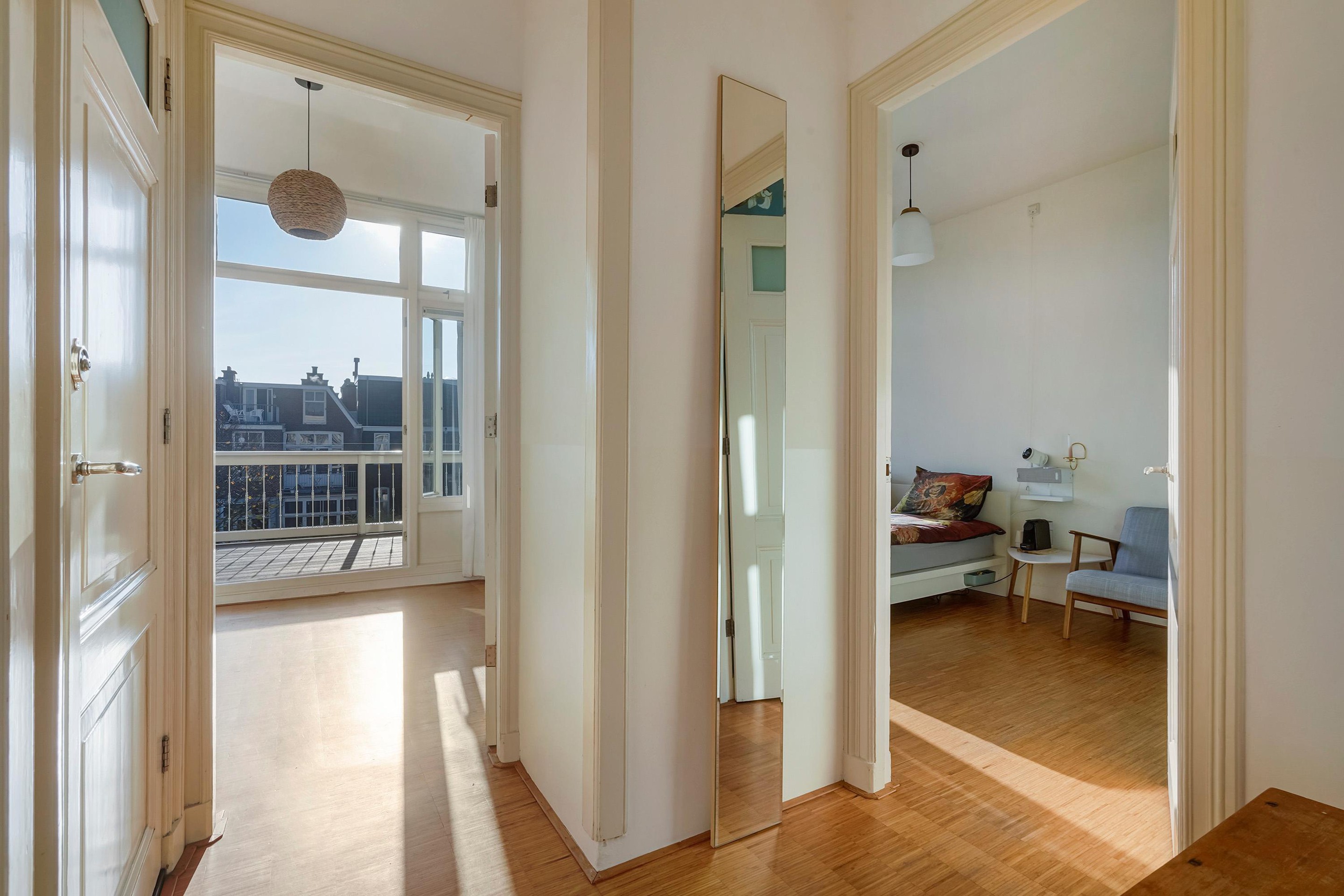 De woning is zeer riant opgezet en voorzien van diverse sfeervolle oude details waaronder de schuifseparatie, vaste kasten schouwen, paneel deuren en karakteristieke hoge plafonds met geweldige ornamenten.