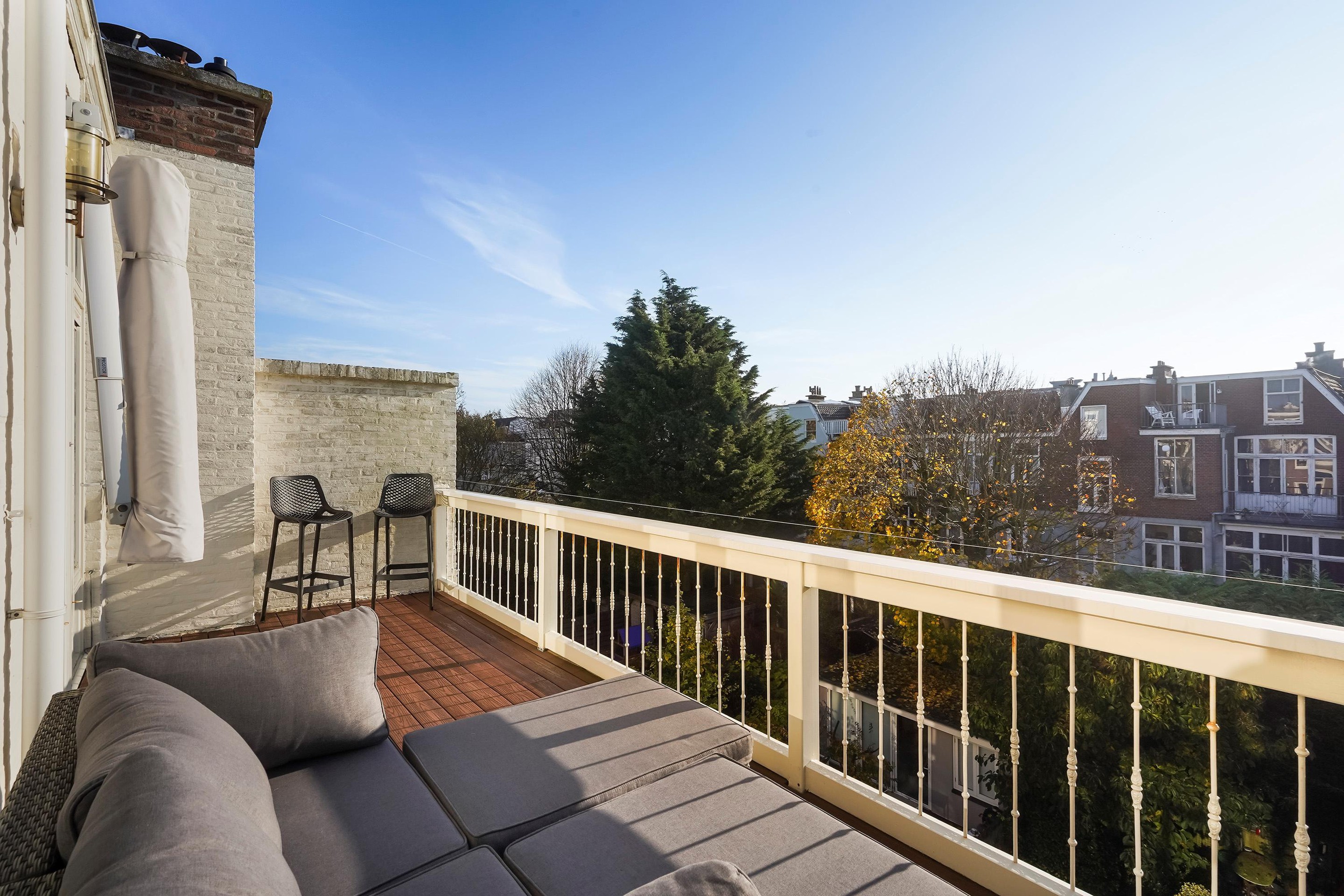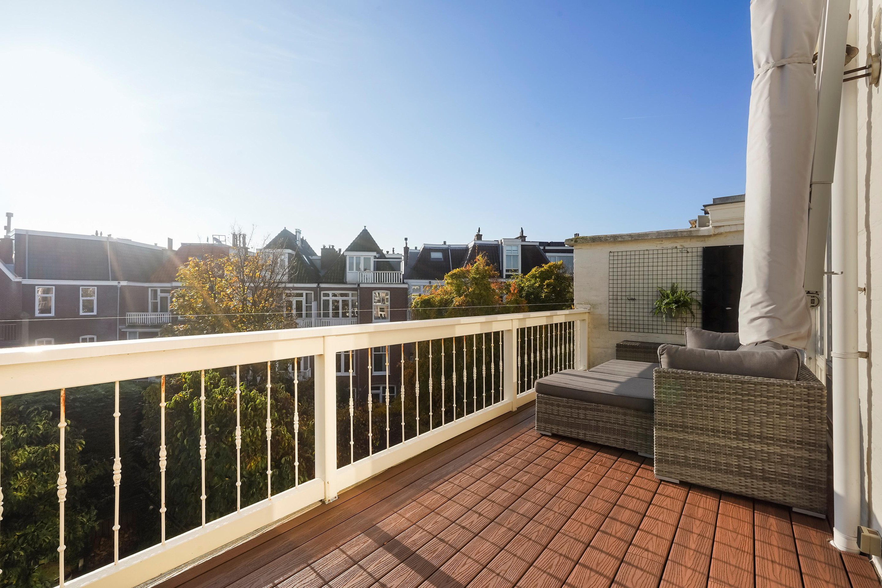 Dit 7 kamer dubbel bovenhuis is v.v. 4/5 slaapkamers een riante woonkamer ensuite, nette keuken, verzorgde badkamer, zonnig balkon en ideaal dakterras (beiden voorzien van duurzaam en onderhoudsvriendelijke Fiberon vlonders).