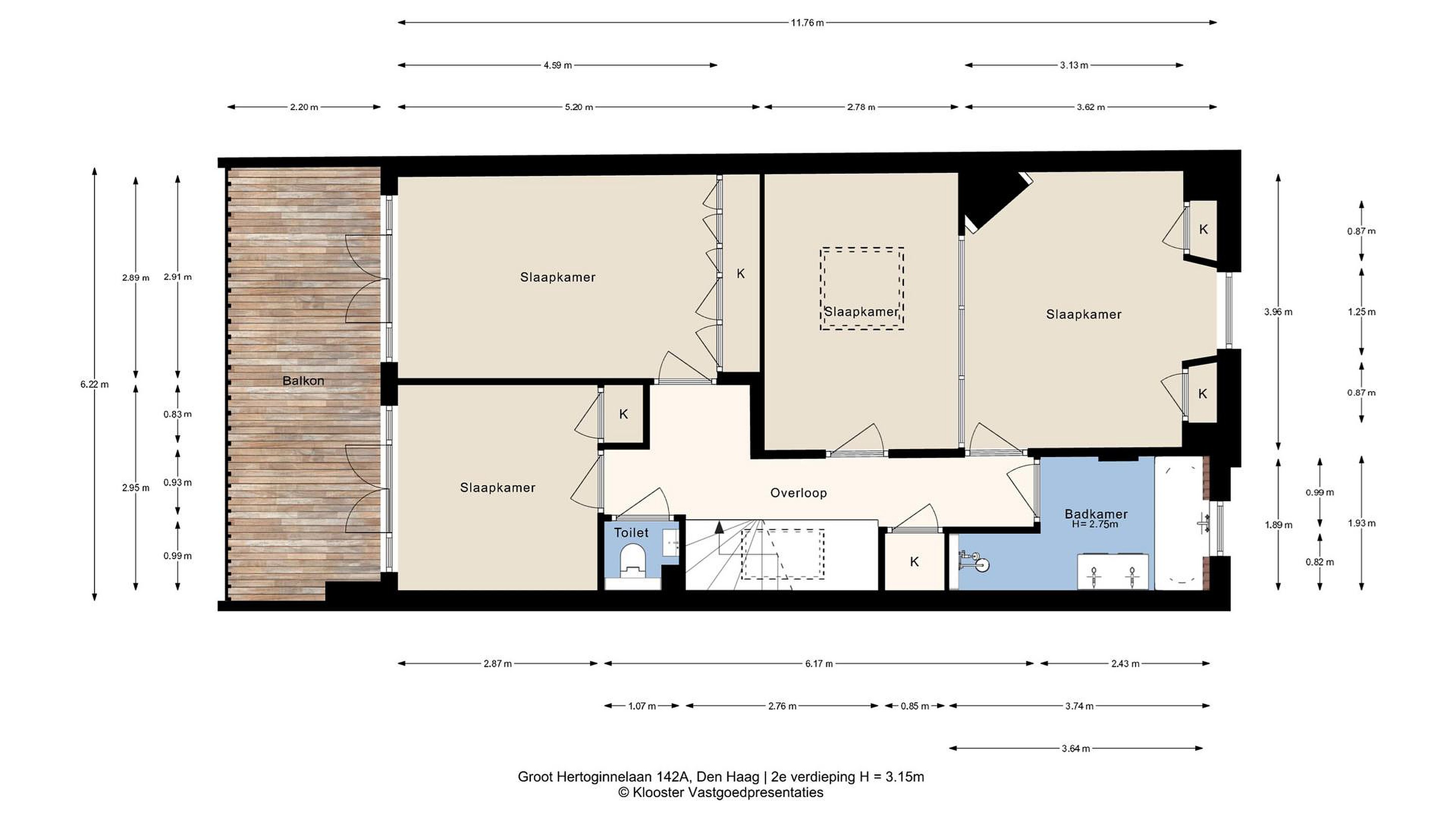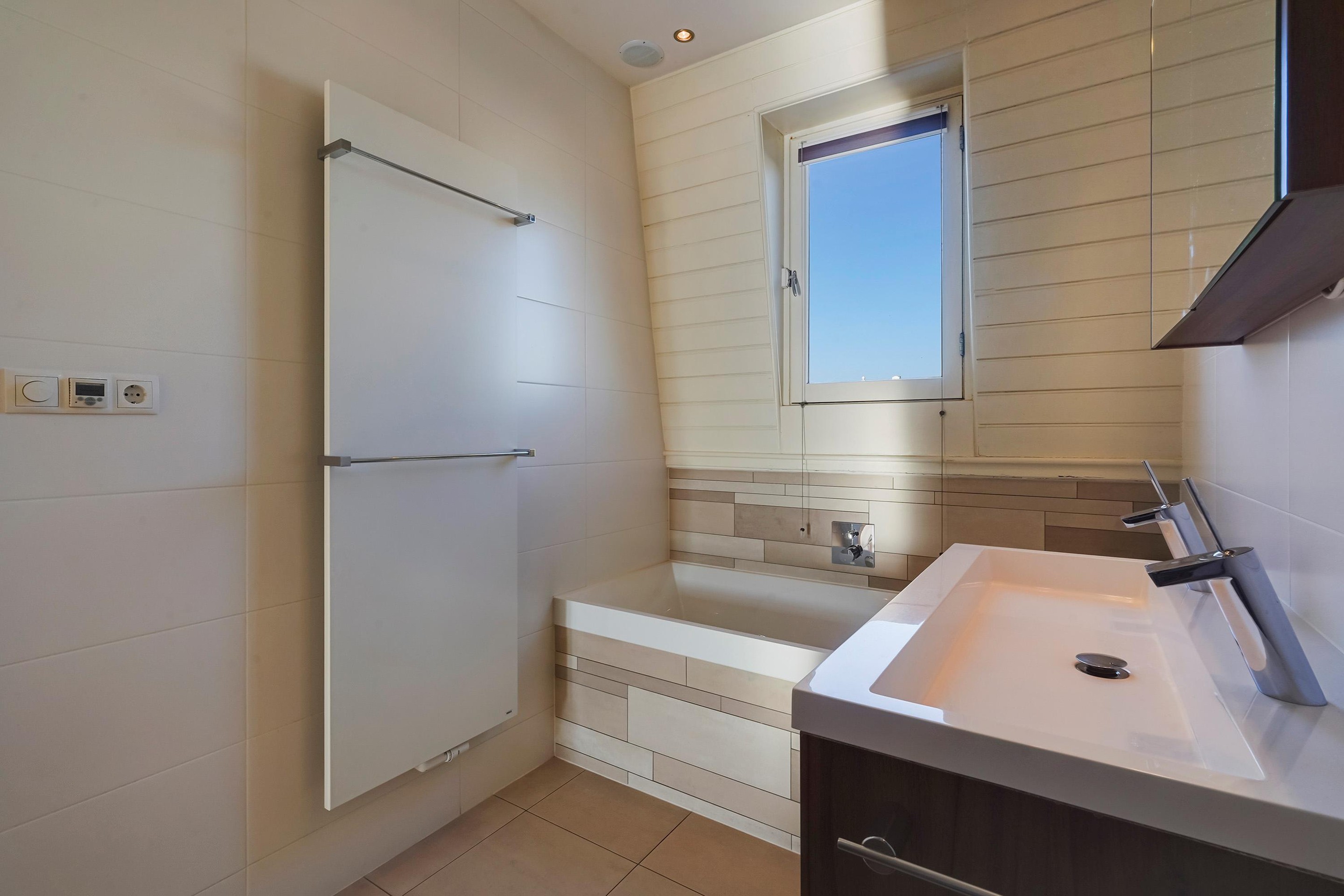 2e verdieping, ruime overloop met tweede toilet. De achterkamer is thans in gebruik als werkkamer en geeft toegang tot het grote terras welke fraai uitzicht heeft en een genot om op te vertoeven is. De tweede achter slaapkamer betreft de ouderslaapkamer en is voorzien van modern afgewerkte vaste kastenwand. Tussenruimte alwaar opstelplaats droger. Aan de voorzijde een ruime slaap-/logeerkamer en de naastgelegen badkamer is evenals de rest van de woning keurig verzorgd en voorzien van ligbad, inloopdouche, dubbel wastafelmeubel, handdoekradiator en inbouw speakers. De berging is voorzien van opstelplaats cv-combi ketel, wasmachine aansluiting en omvormer zonnepanelen.