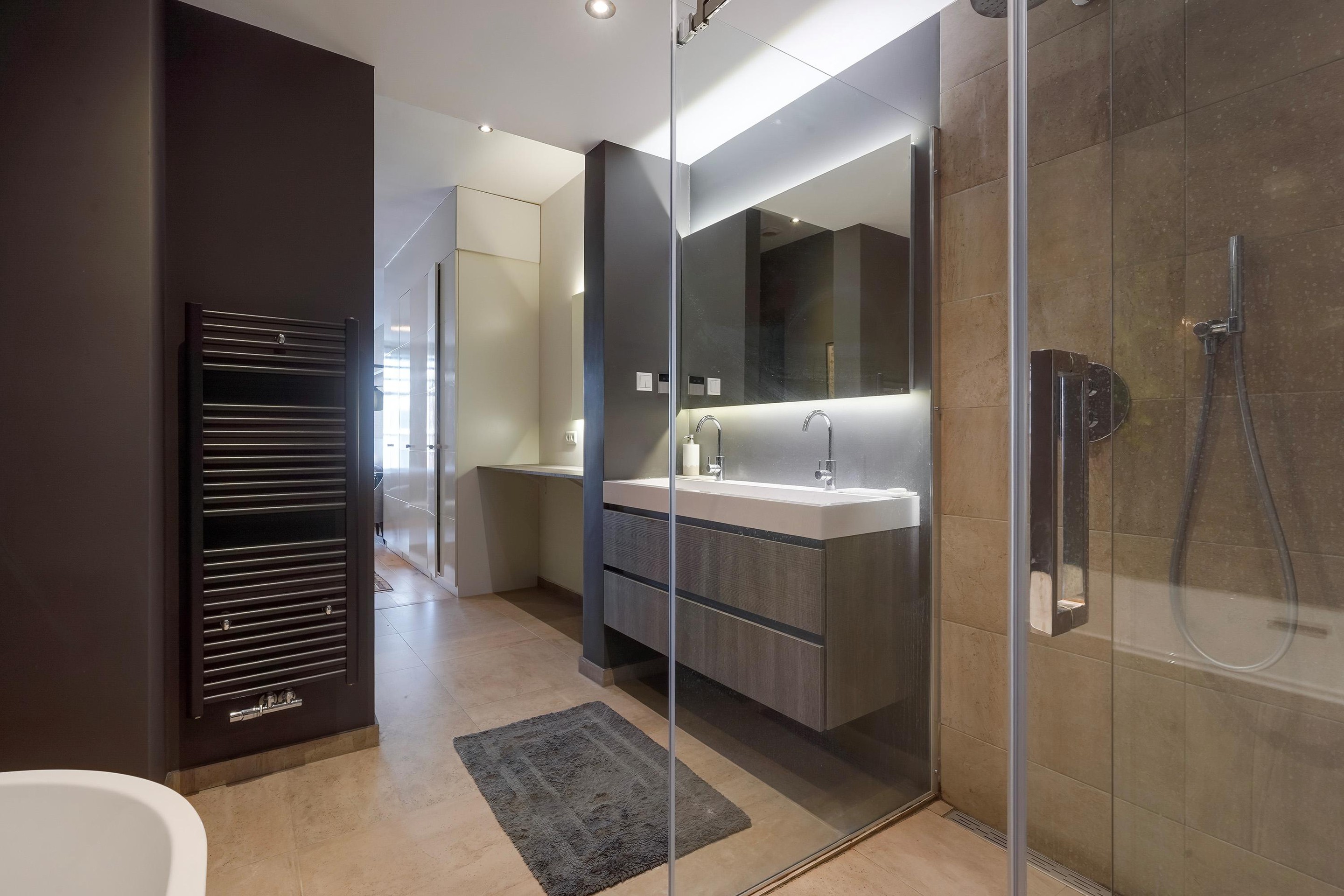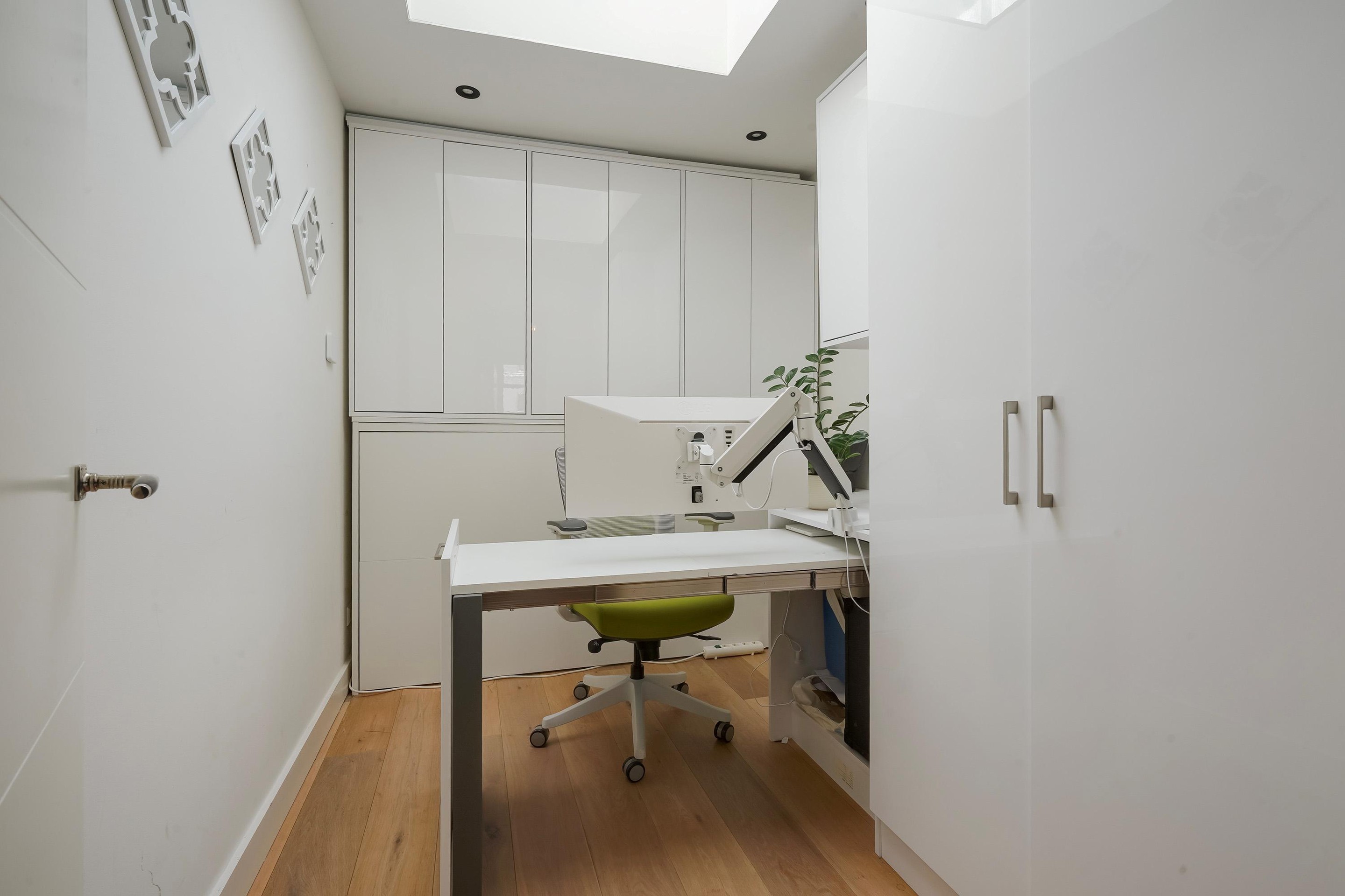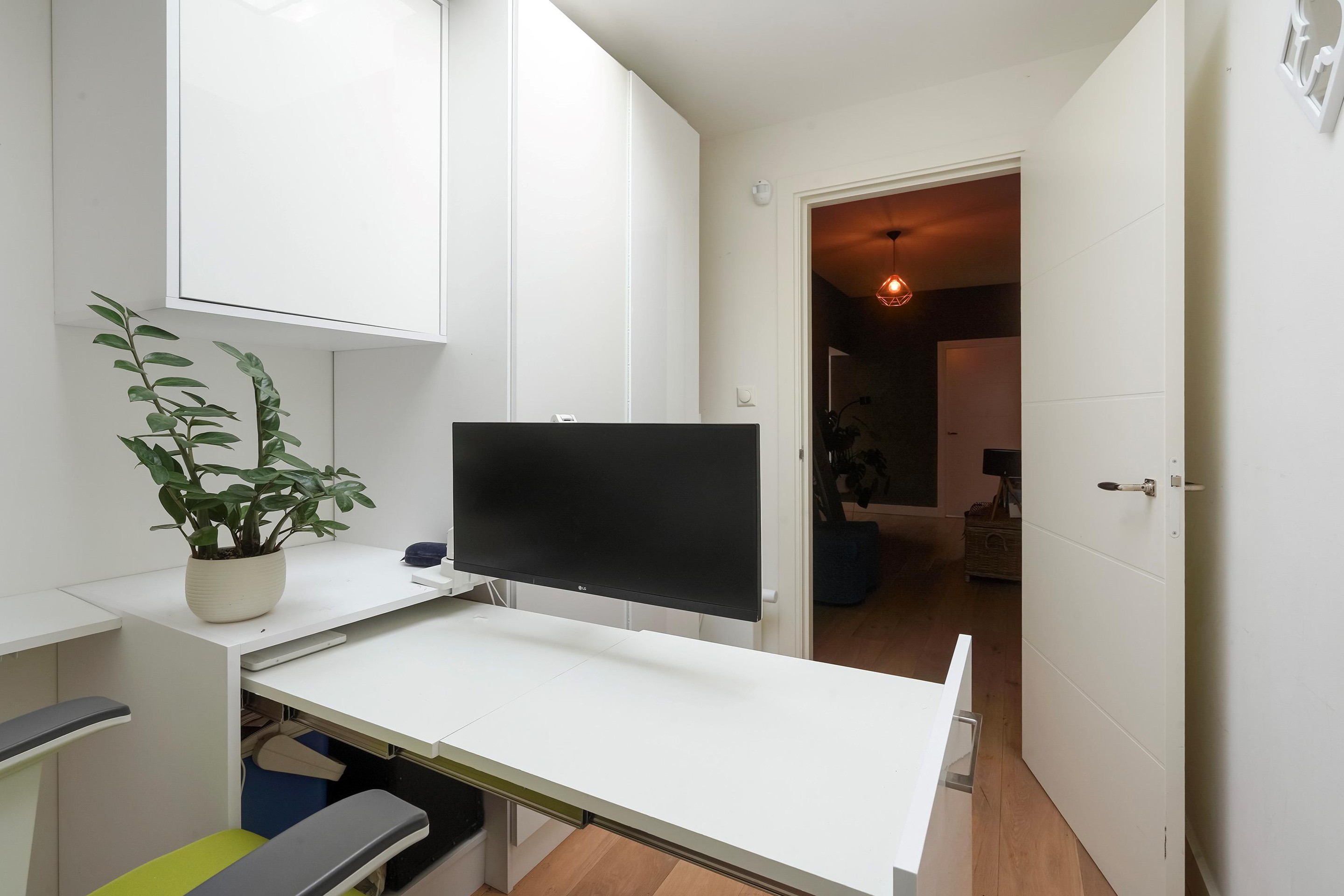The house is accessed via the ground floor, a hallway with the meter cupboard, and an internal staircase to the first floor. A spacious bedroom is located on the landing at the front of the house. The master bedroom is located at the rear of the house and is very spacious, with ample storage space, a walk-in closet, and an en-suite bathroom. It features a double shower, a bathtub, double sinks, and electric underfloor heating. The adjacent room is currently used as a study/office. The second bathroom is highly recommended for guests and includes a shower, sink, mechanical ventilation, a washing machine connection, and a central heating boiler. A spacious built-in wardrobe is located on the landing. A staircase leads to the second floor, which is currently used as a living/dining room with an open-plan kitchen, access to the spacious terrace, and a mezzanine. The living room is spacious, and the open-plan kitchen is equipped with a 4-burner induction cooktop, dishwasher, oven and refrigerator/freezer. The living/dining room also provides access to the spacious and sunny terrace, which has a new composite floor and a jacuzzi. The mezzanine is a welcome additional space. Details:
