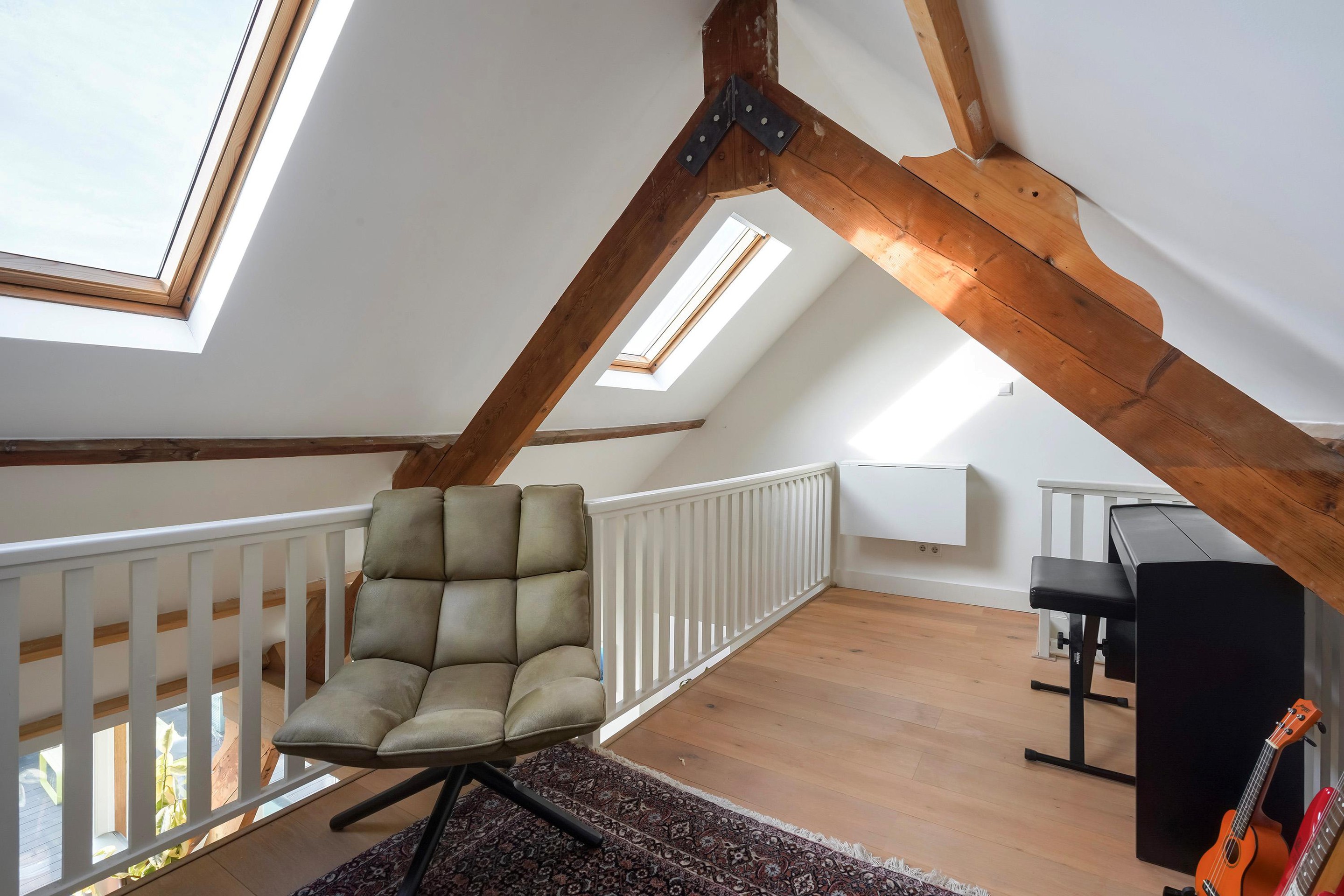 It all begins upon entering. As soon as you step over the threshold, you'll immediately sense the history of the 1850 building—without compromising on contemporary comfort or luxury. Built in an era when craftsmanship and attention to detail were paramount, this house has been equipped with all the modern conveniences. The upper house has retained its authentic features, including the beautiful wooden beams in the living room, which not only add to the ambiance but also make a stunning style statement.