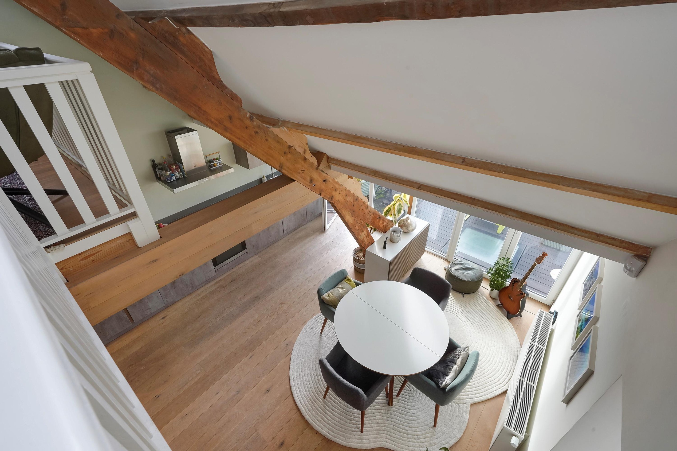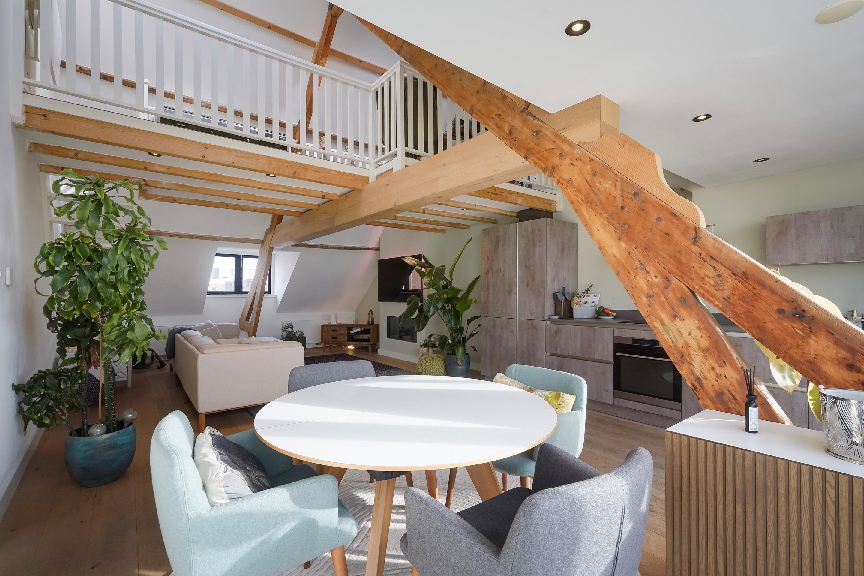 Het begint al bij binnenkomst. Zodra je de eerste stap over de drempel zet, proef je direct de historie van het pand uit 1850 – zonder in te leveren op hedendaags comfort of luxe. Ooit gebouwd in een tijd waarin vakmanschap en detaillering hoog in het vaandel stonden, is dit huis inmiddels voorzien van alle gemakken van nu. Zo heeft de bovenwoning zijn authentieke elementen behouden, waaronder de schitterende houten balken in de woonkamer, die niet alleen voor sfeer zorgen, maar ook een prachtig stijlstatement maken.