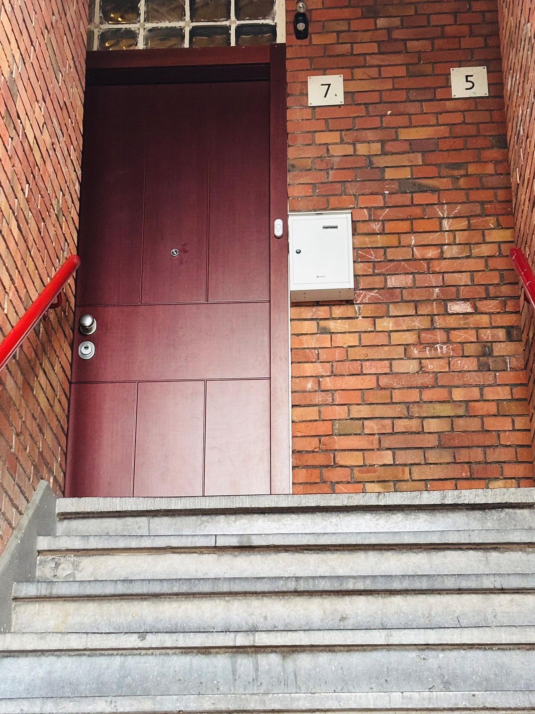 Begane grond Haagse open portiek: entree appartement hal, meterkast, binnen trap tweede verdieping, overloop.