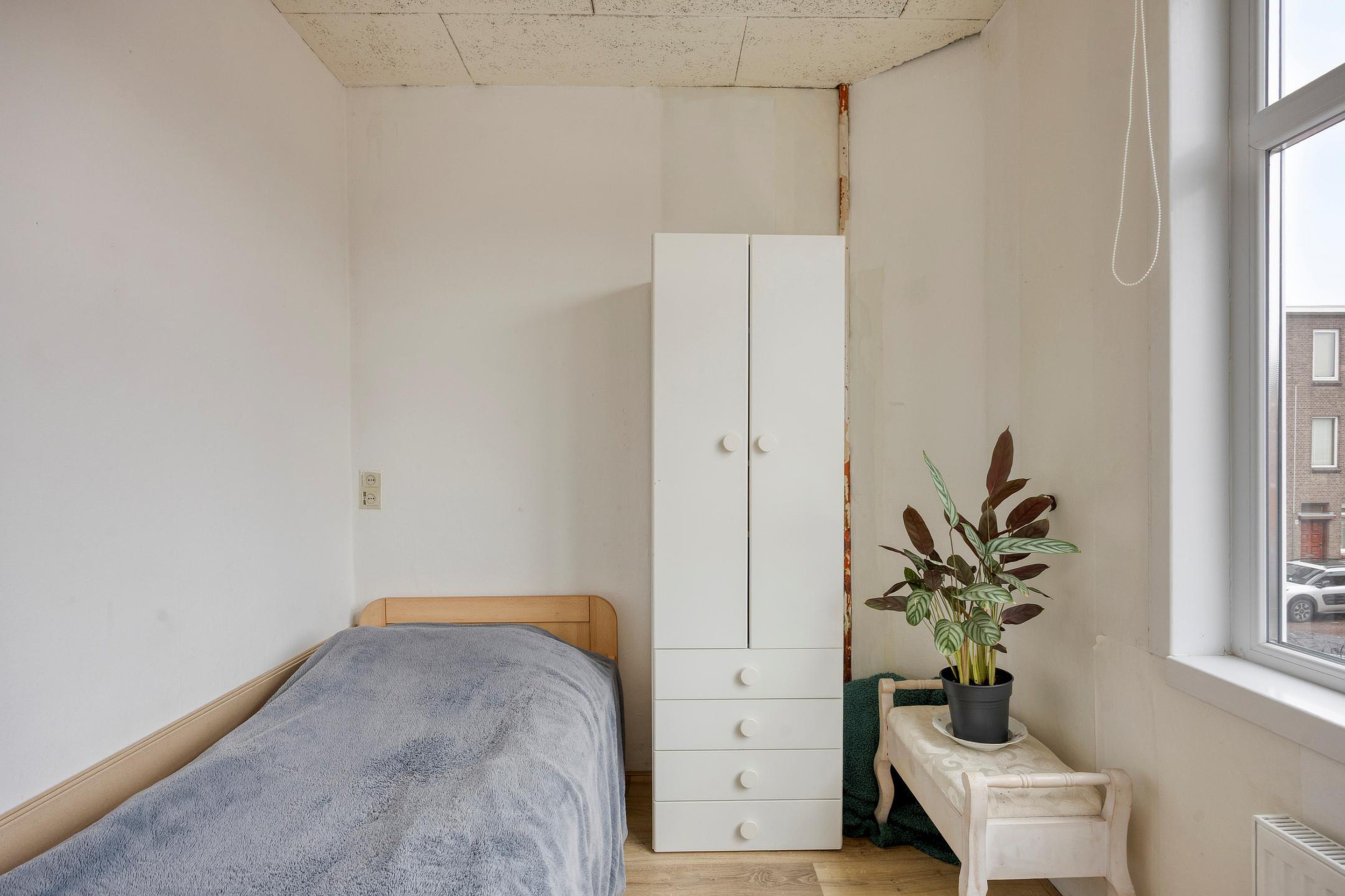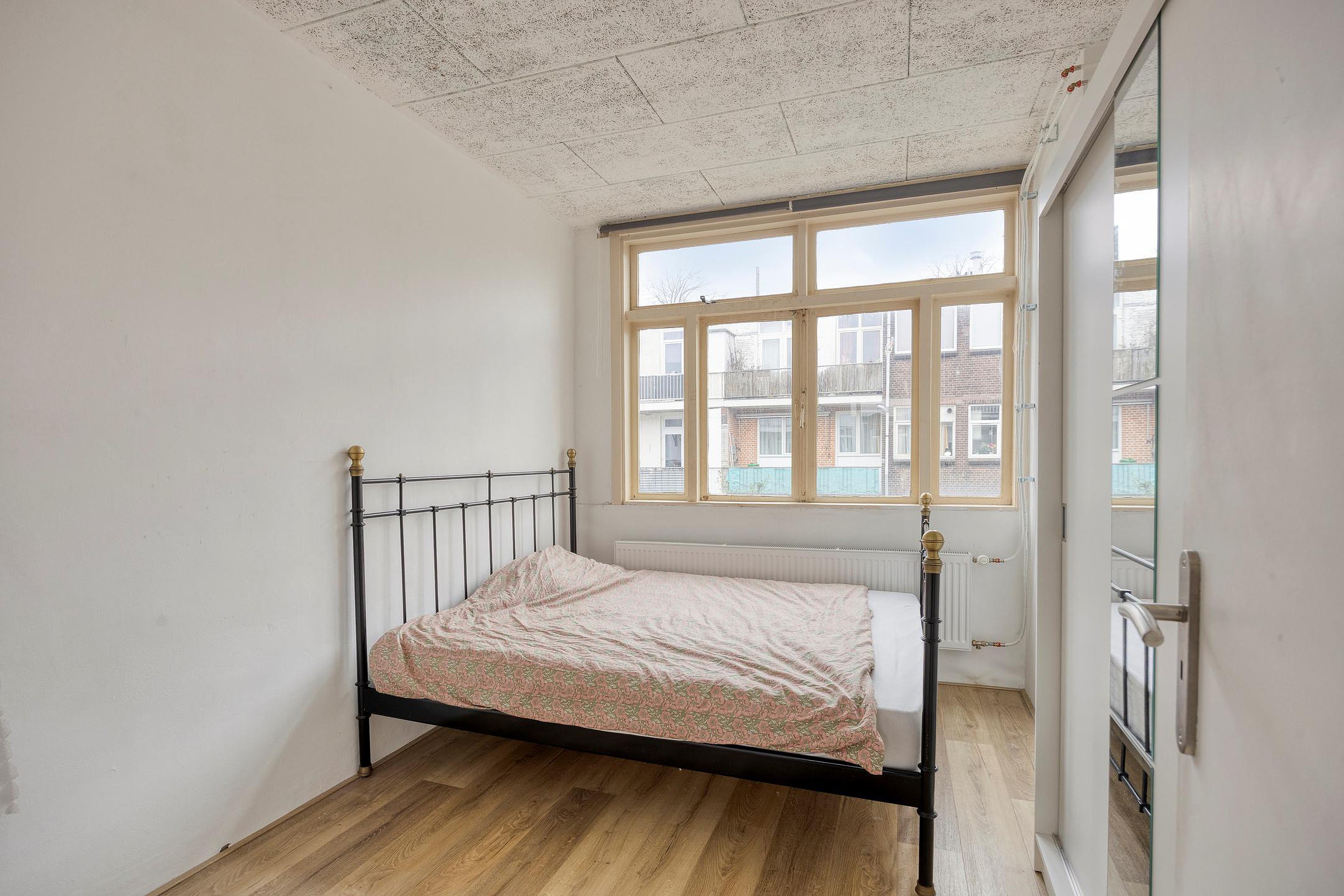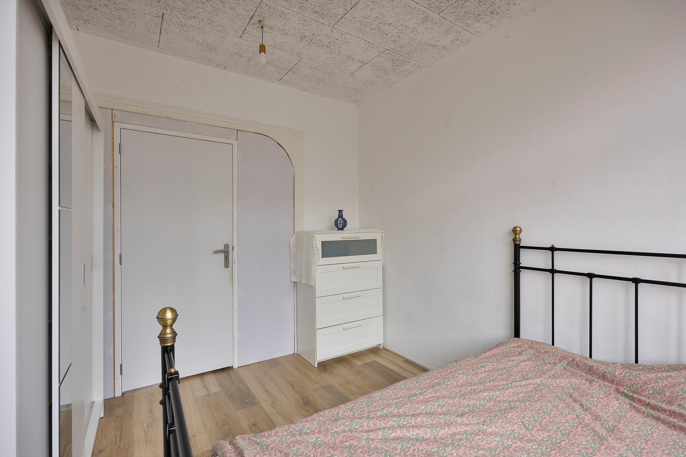 De woning beschikt over twee slaapkamers. De hoofdslaapkamer biedt voldoende ruimte voor een tweepersoonsbed en kastruimte. De tweede kamer is ideaal te gebruiken als werk-, logeer- of hobbykamer.
