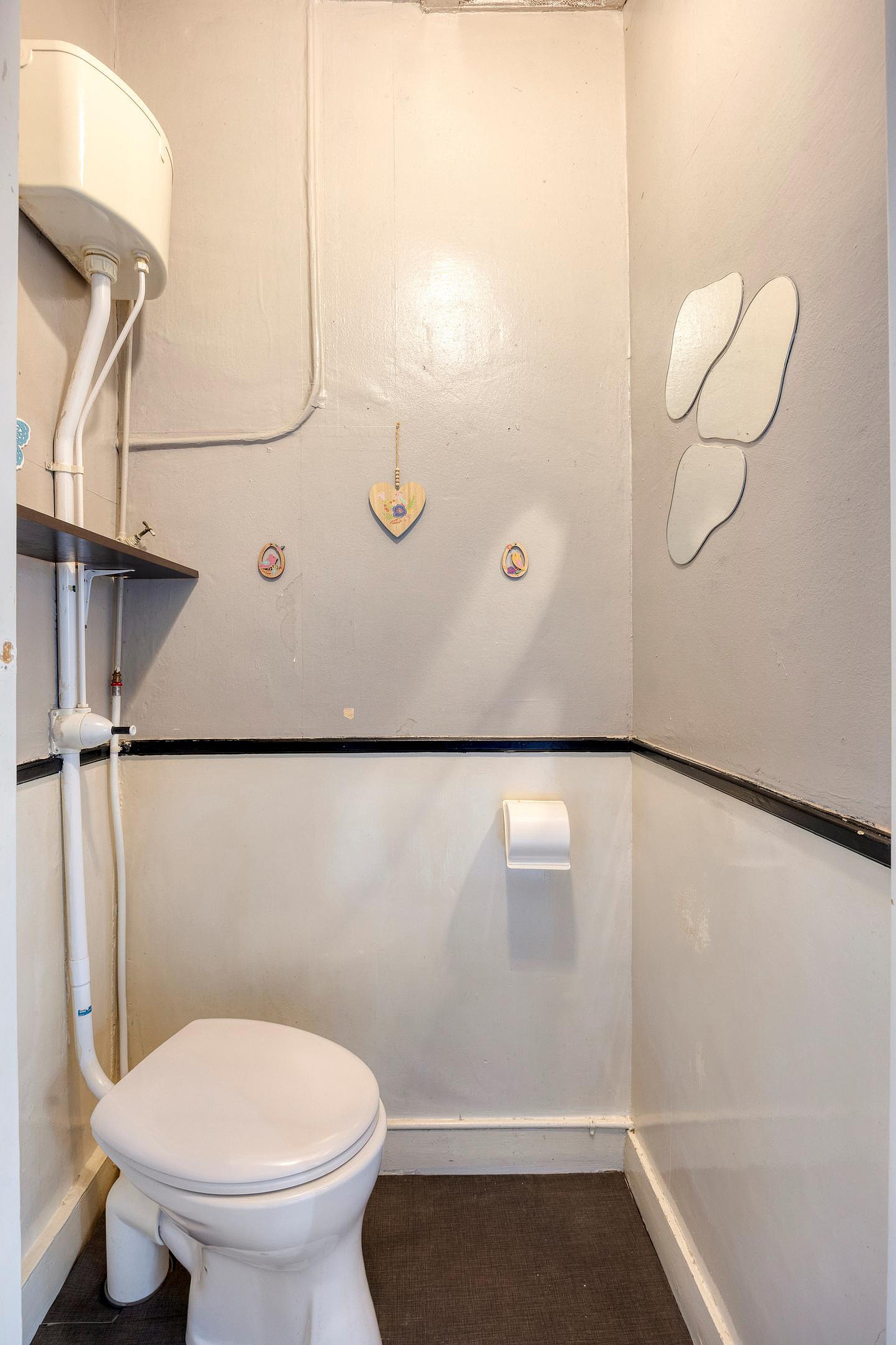 De badkamer is functioneel ingericht en in de woning bevindt zich daarnaast een apart toilet, wat zorgt voor extra comfort.