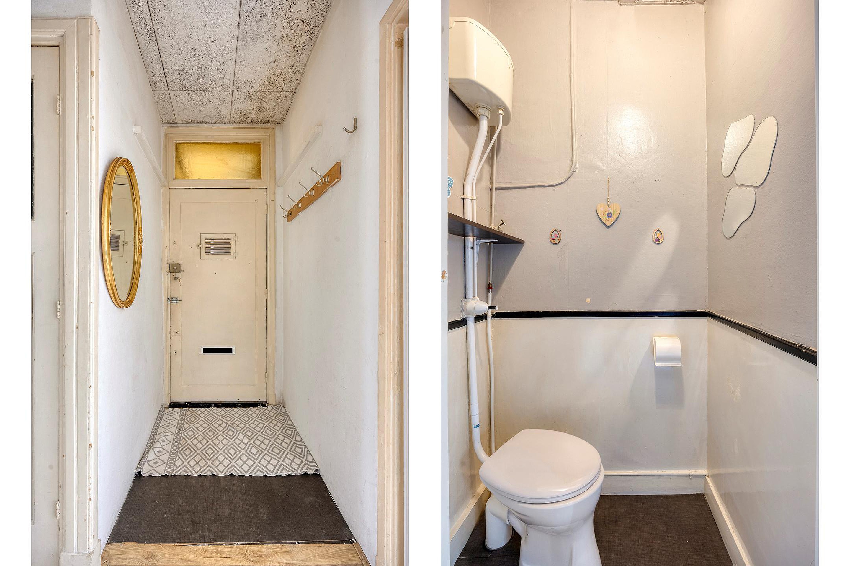 Via het portiek bereik je de woning en kom je binnen in de hal, die toegang geeft tot de verschillende vertrekken. De woonkamer is een prettige en lichte ruimte waar je eenvoudig een gezellige zit- en eethoek kunt creëren. Dankzij de praktische indeling voelt het appartement ruim en comfortabel aan.