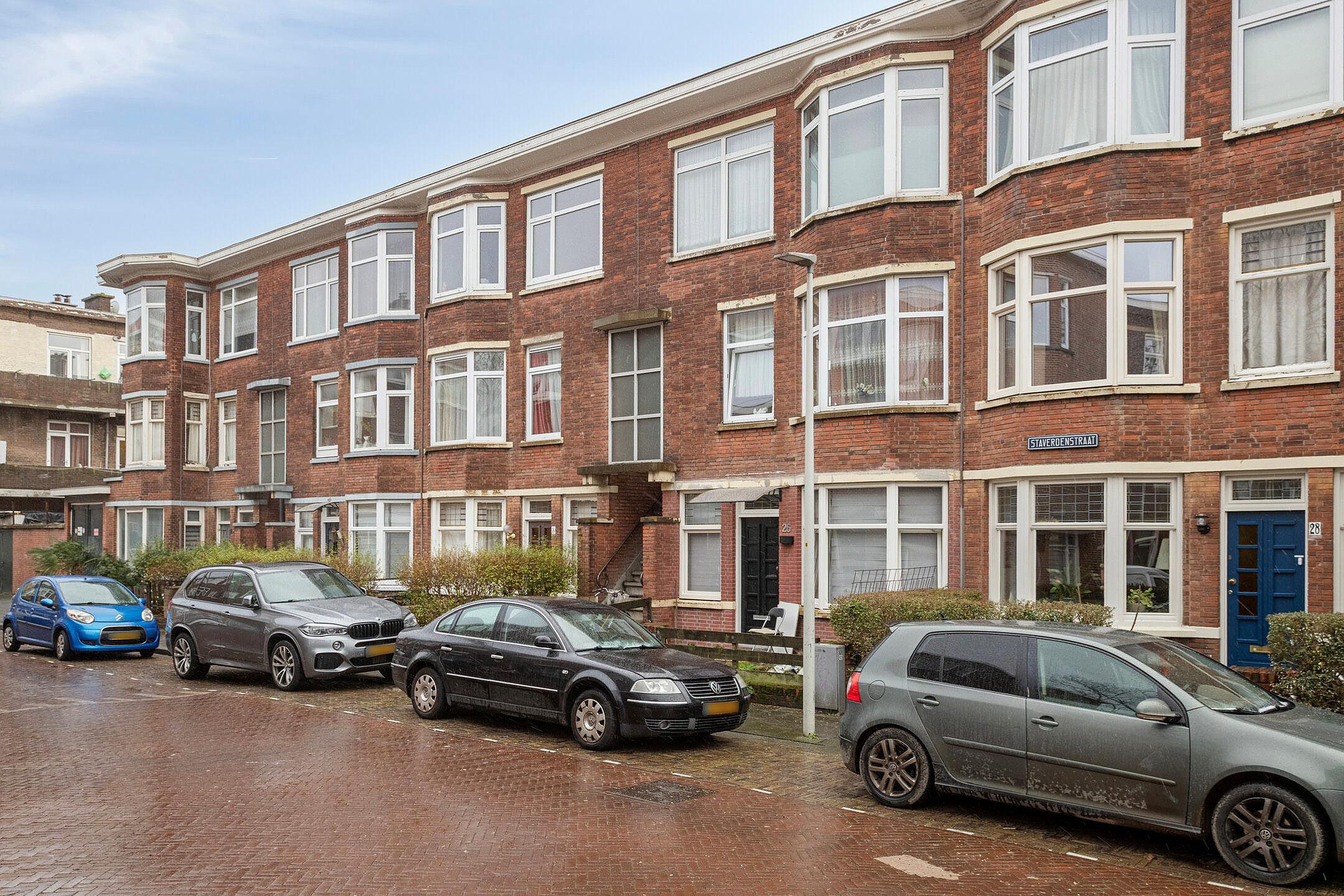 - het appartementsrecht dat recht geeft op het uitsluitend gebruik van de woning gelegen op de eerste verdieping met balkon en verder toebehoren, plaatselijk bekend 2573 DD 's-Gravenhage, Staverdenstraat 24, kadastraal bekend gemeente 's-Gravenhage sectie AL complexaanduiding 5625 A, appartementsindex 5, uitmakende het één/zesde (1/6) onverdeelde aandeel in de gemeenschap bestaande uit het portiekpand omvattende twee benedenwoningen, elk met twee afzonderlijke bovenwoningen, erf en grond aan de Staverdenstraat nummers 16 tot en met 26 (even nummers) te 's-Gravenhage, ten tijde van de splitsing in appartementsrechten kadastraal bekend gemeente ‘s-Gravenhage sectie AL nummers 3950 en 3951, respectievelijk groot één are en vijftig centiare (1 a 50 ca) en één are en éénenvijftig centiare (1 a 51 ca).