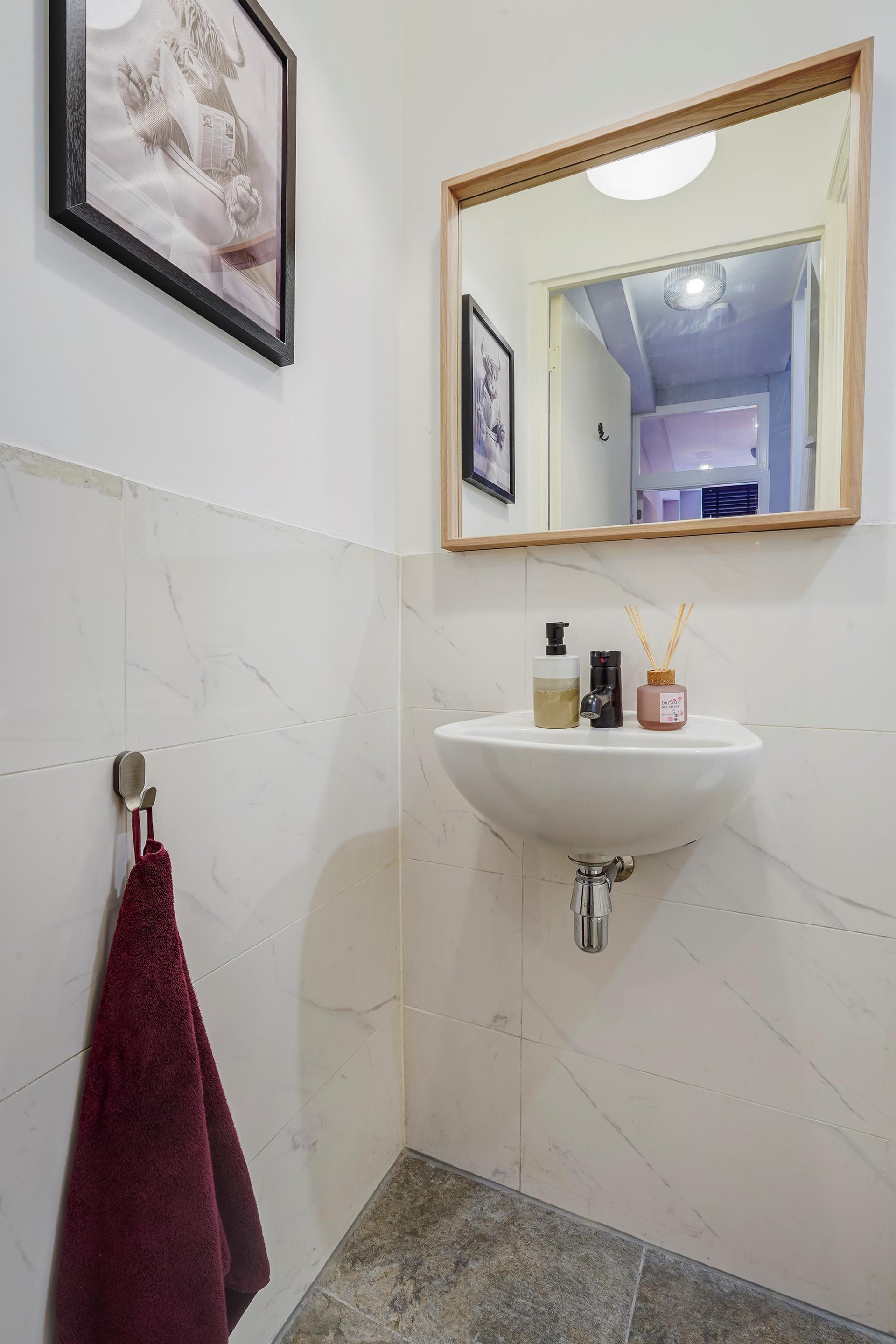 With the exception of the bathroom, beautiful PVC herringbone flooring has also been laid on the second floor.