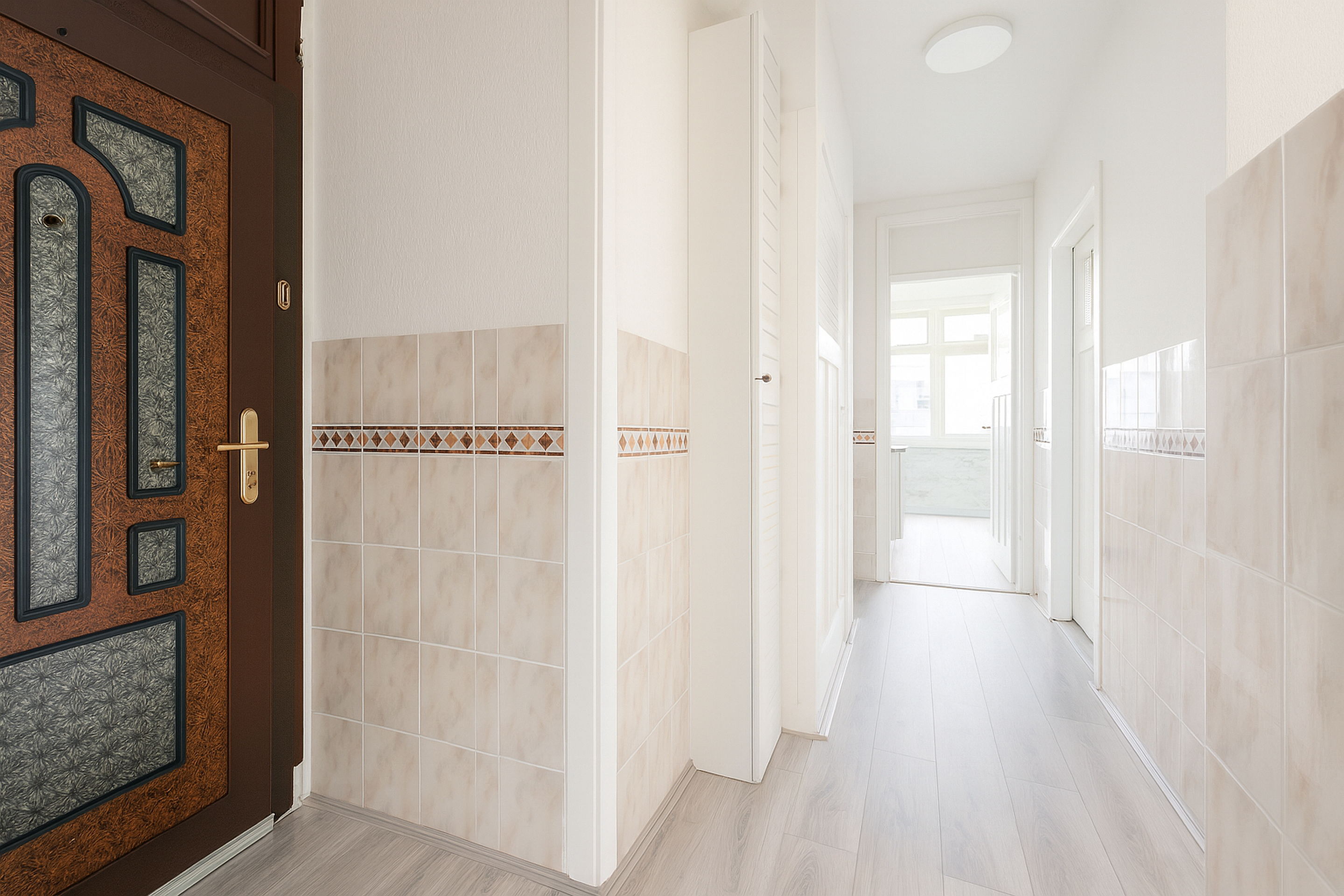 Via het portiek betreed je deze lichte en ruime woning op de eerste verdieping. De centrale hal verbindt op natuurlijke wijze alle kamers en geeft direct een gevoel van ruimte en mogelijkheden.