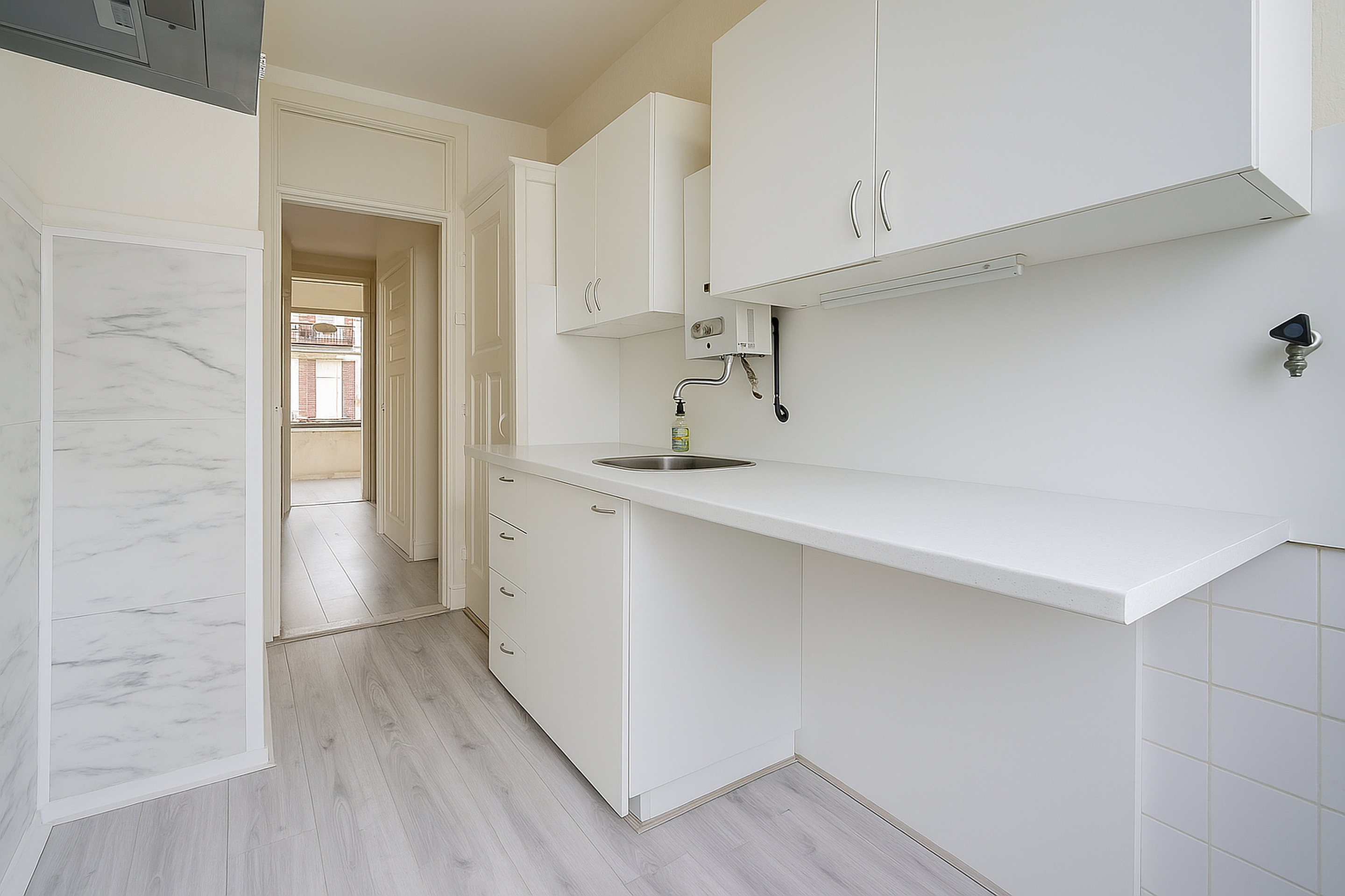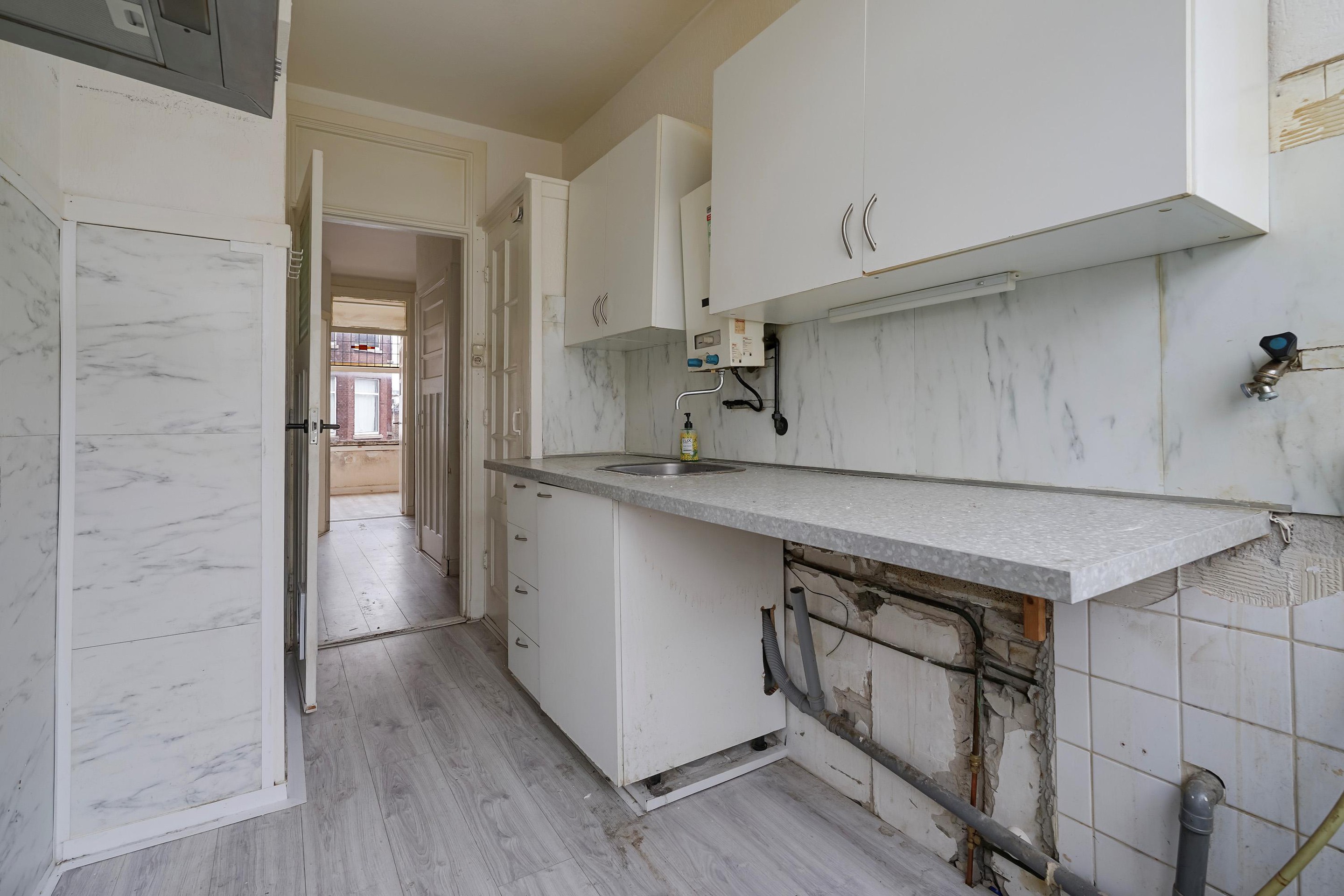 De keuken ligt centraal in de woning en vormt een ideale plek om een complete renovatie of een eigentijdse woonkeuken te creëren. Via de naastgelegen slaapkamer heb je toegang tot het balkon, een fijne plek om rustig van de buitenlucht te genieten.