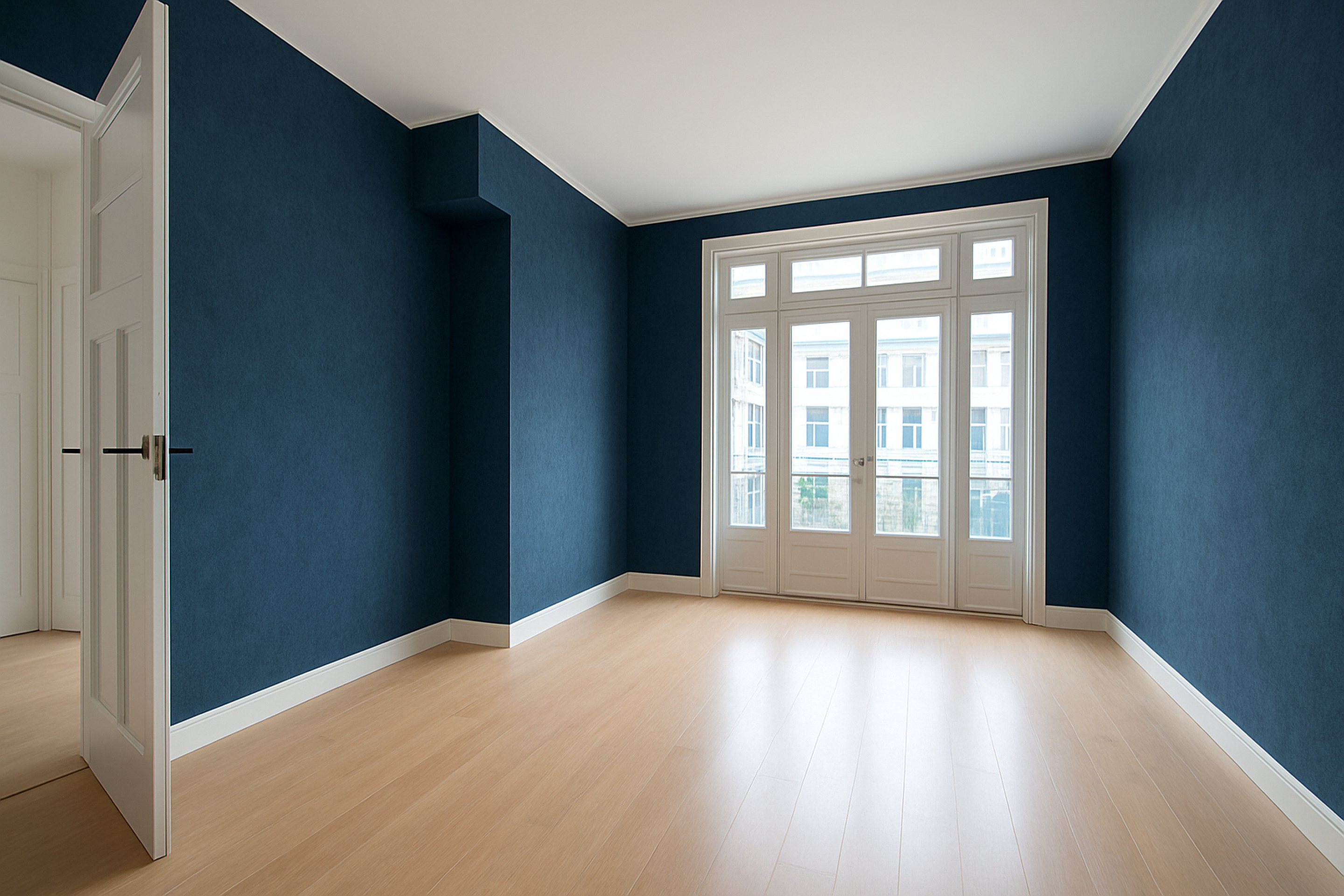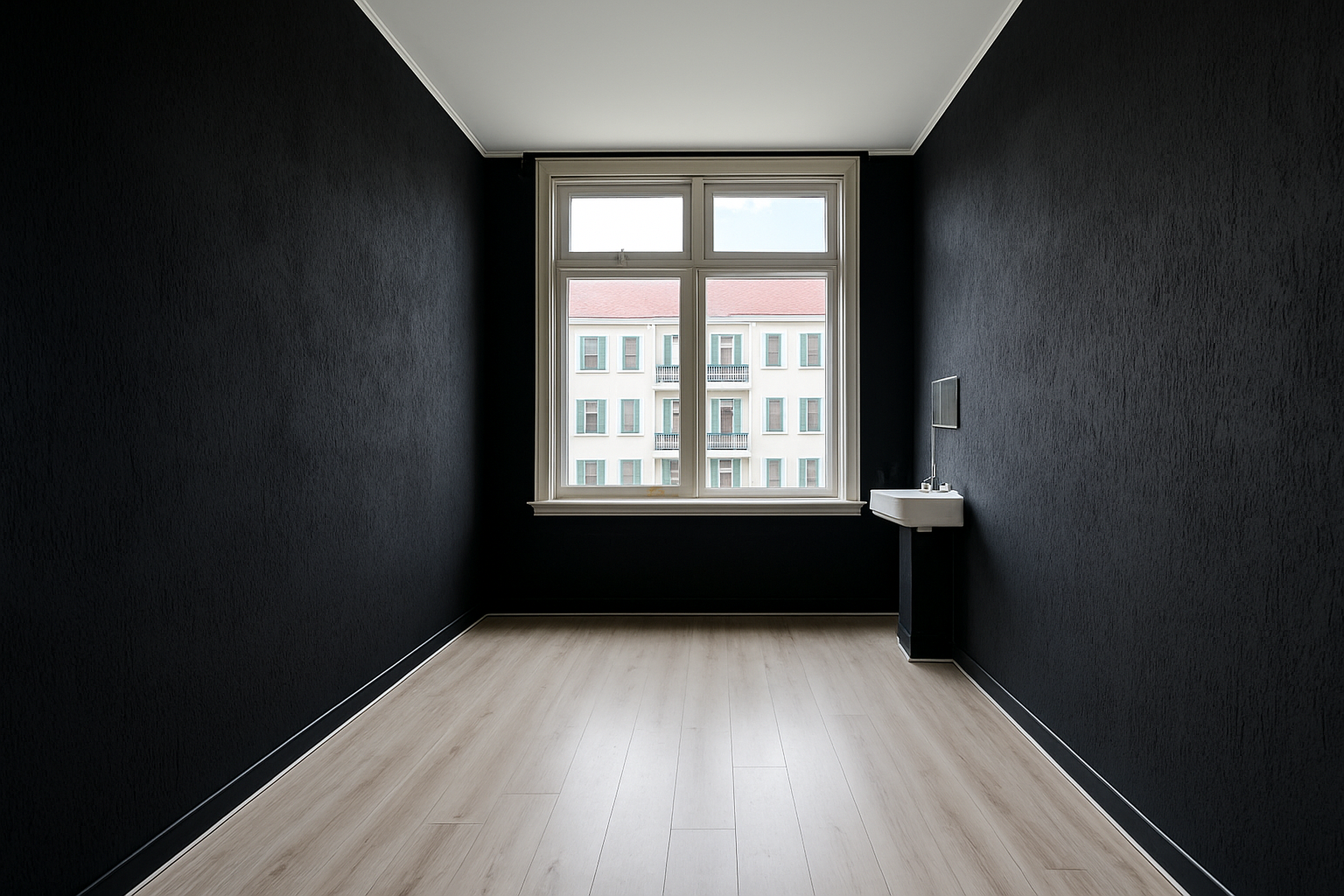 Aan de rechterzijde bevindt zich de eerste slaapkamer, een lichte en ruime kamer die je volledig naar eigen smaak kunt inrichten. Rechtdoor kom je in de brede woonkamer, die dankzij de grote raampartijen bijzonder licht en uitnodigend is. Hier zijn volop mogelijkheden om een moderne en persoonlijke indeling te realiseren.